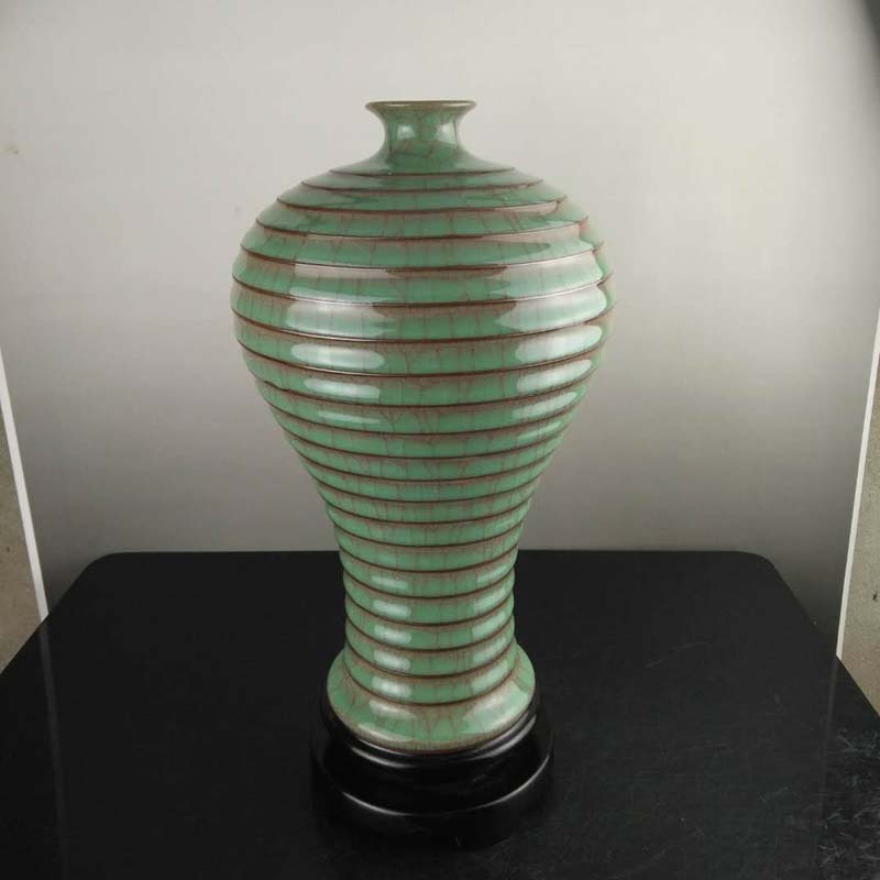 【詳細說明】:此花瓶是龍泉窯青瓷,作為辦公、酒店、家居書房博古架擺件都很不錯。采用龍泉最高山 峰土質(高嶺土)作為生產原料,使用傳統的