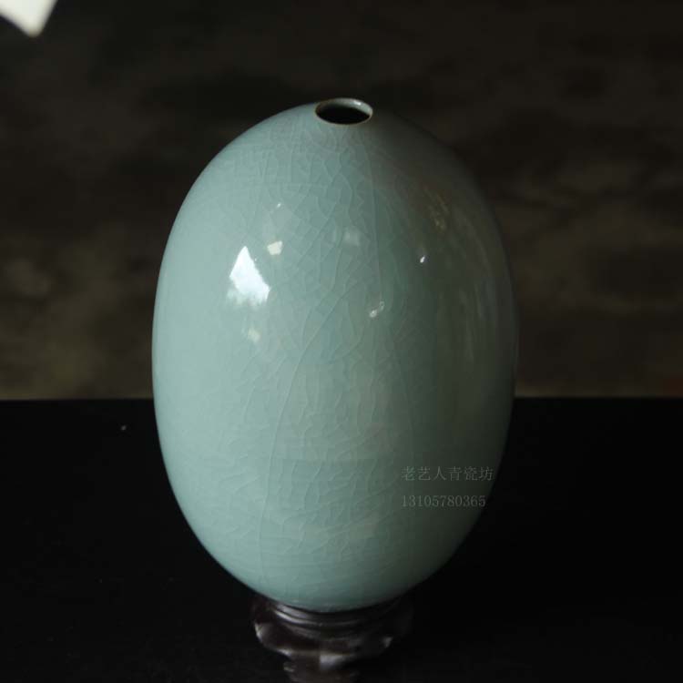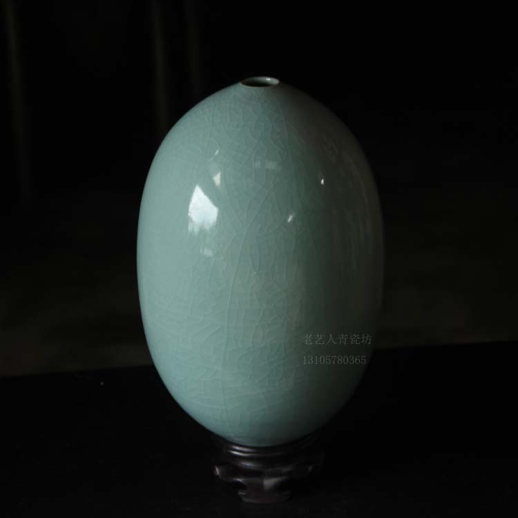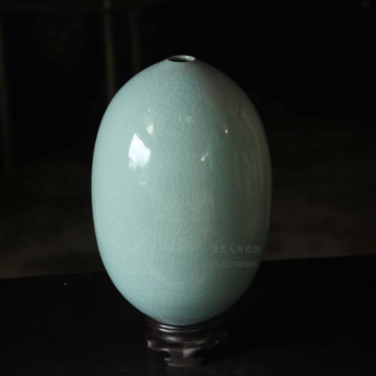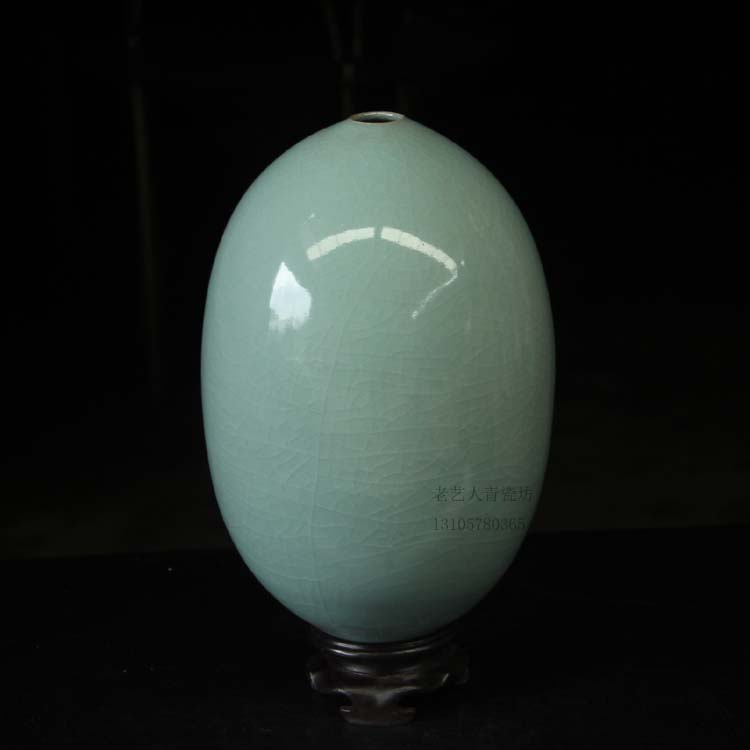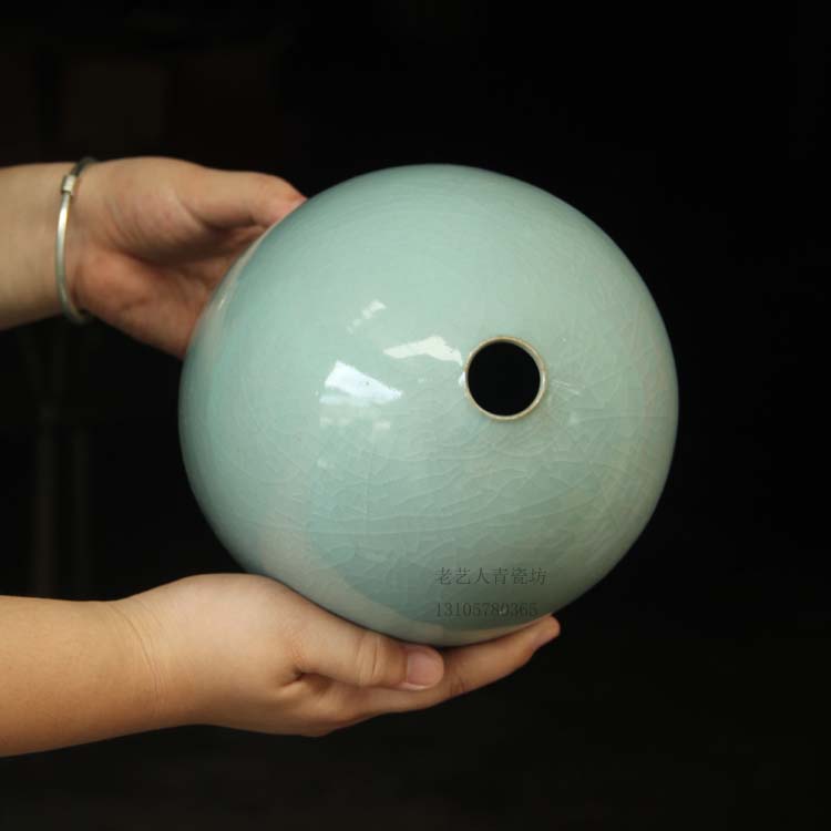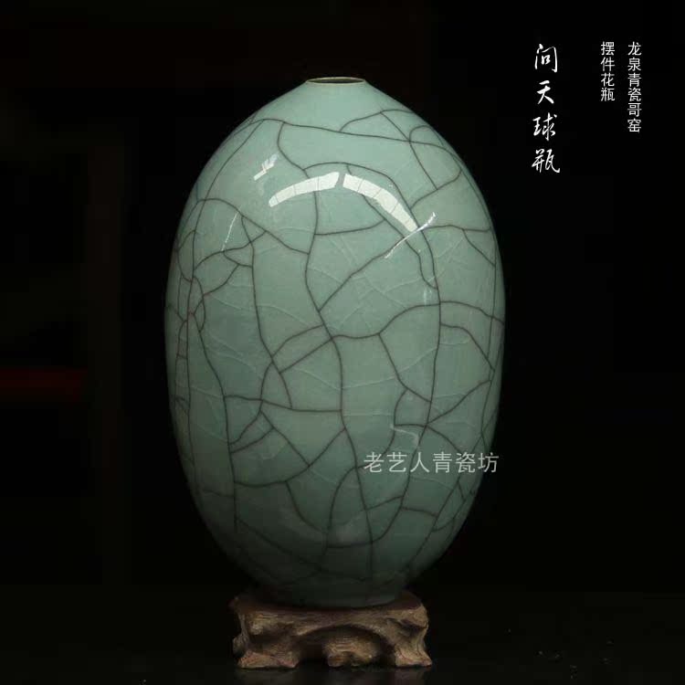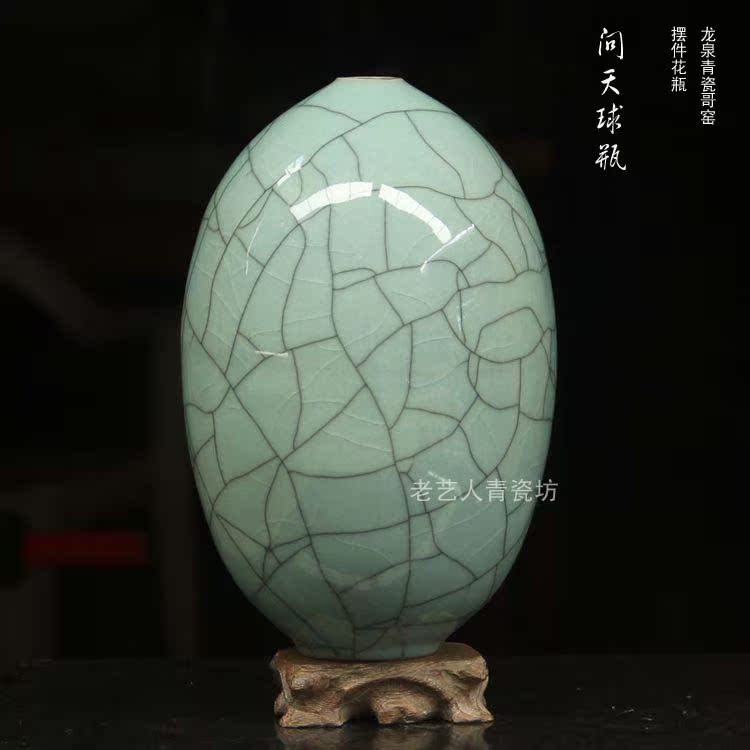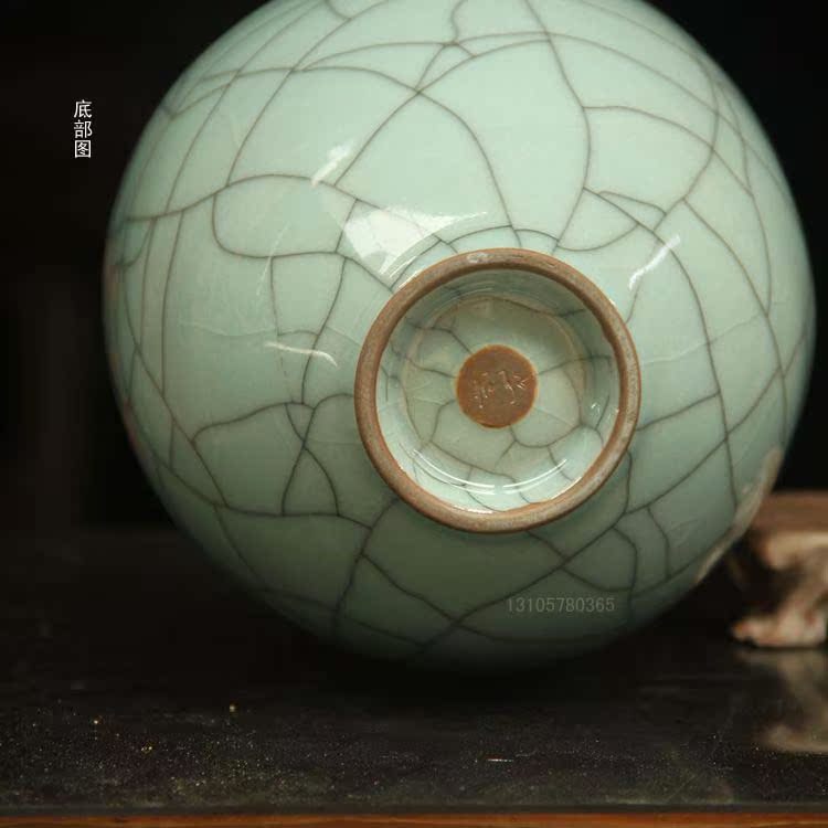 【詳細說明】:中號問天球瓶,釉色屬于龍泉哥窯粉青顏色,釉色古樸,具有哥窯獨特龜裂