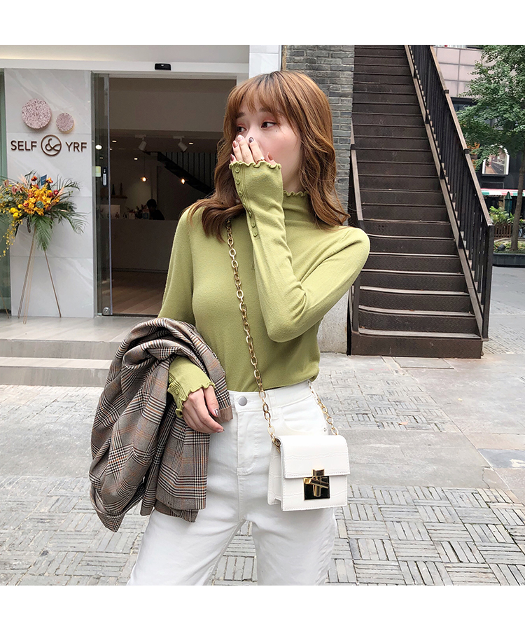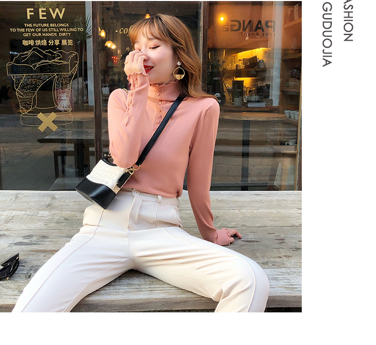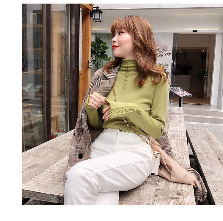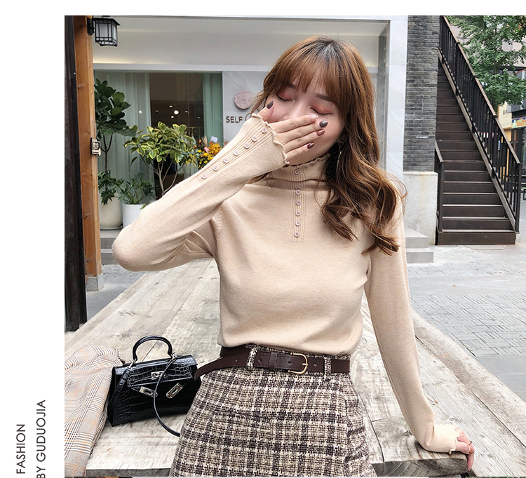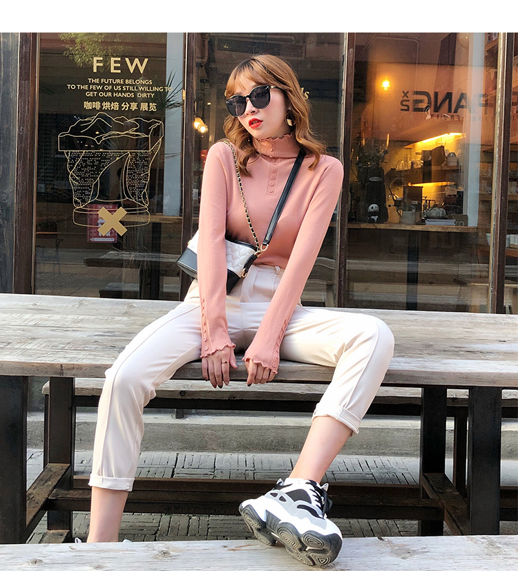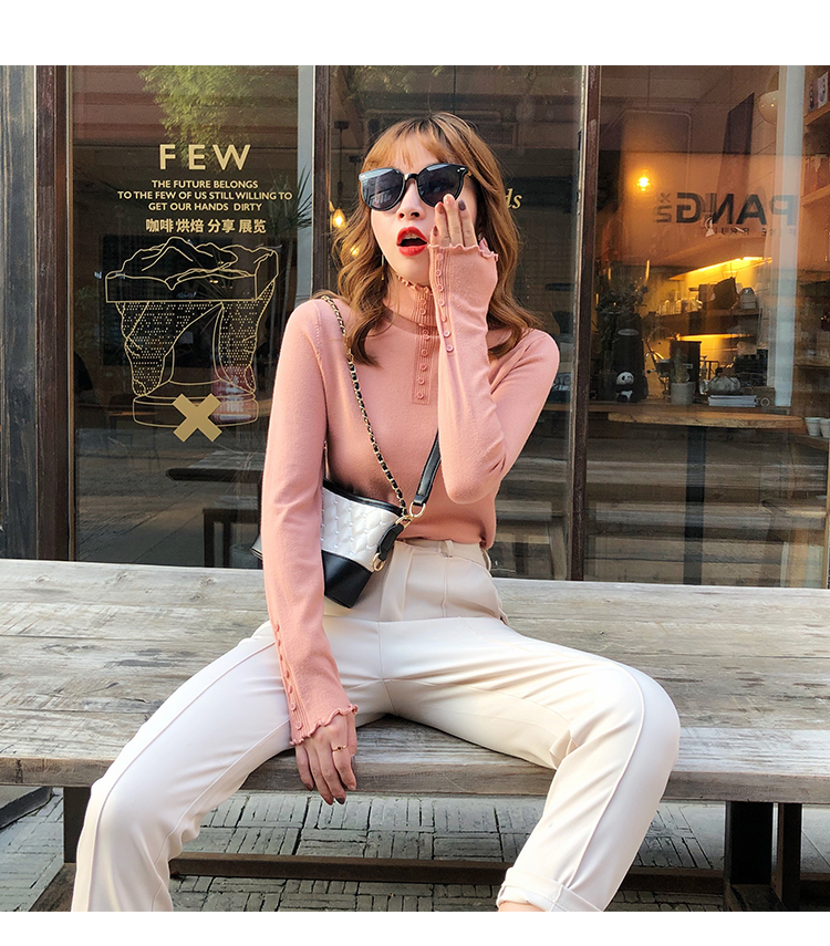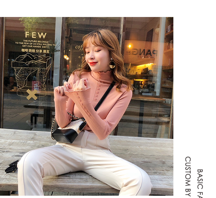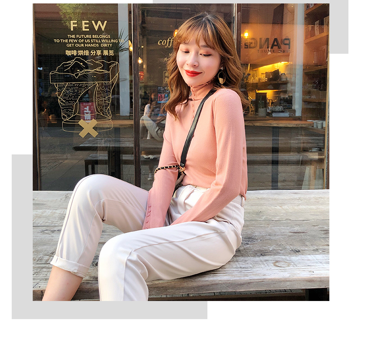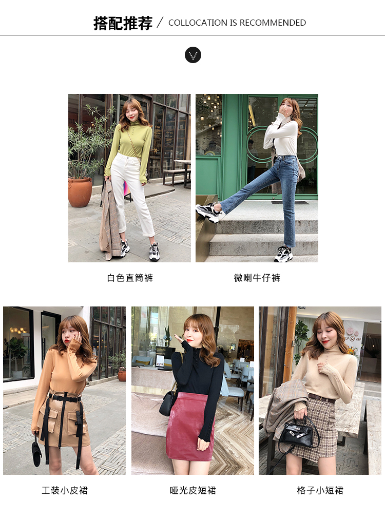 2019秋季新款半高領針織衫女韓版修身薄款套頭毛衣心機打底衫上衣1入
