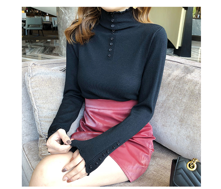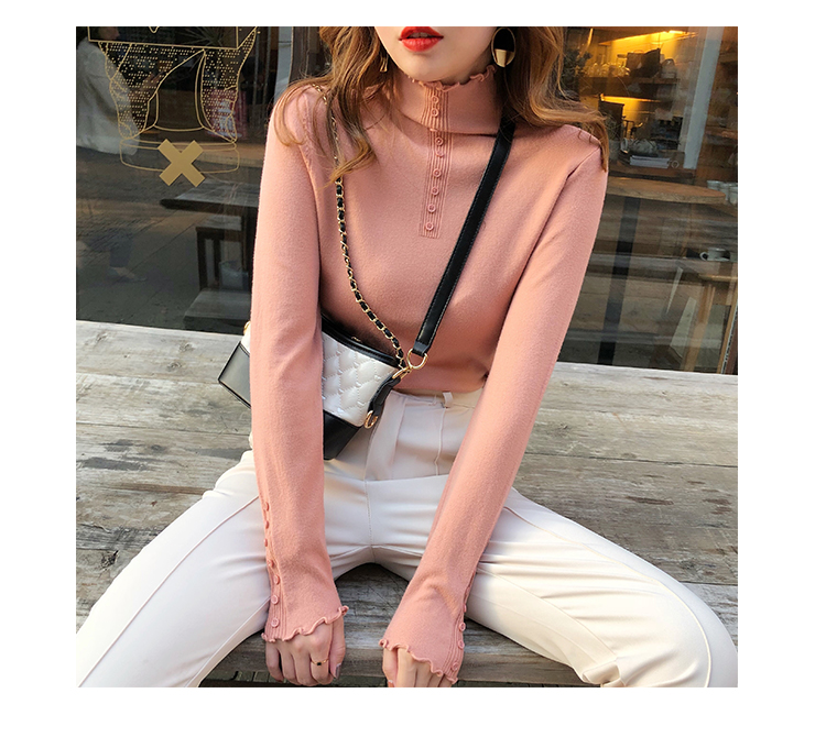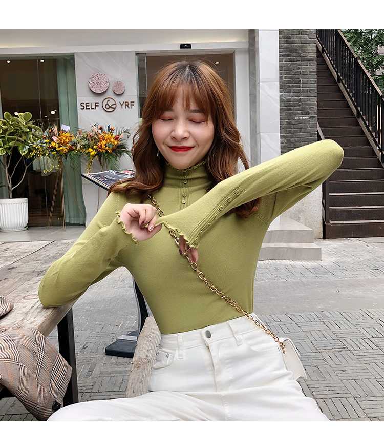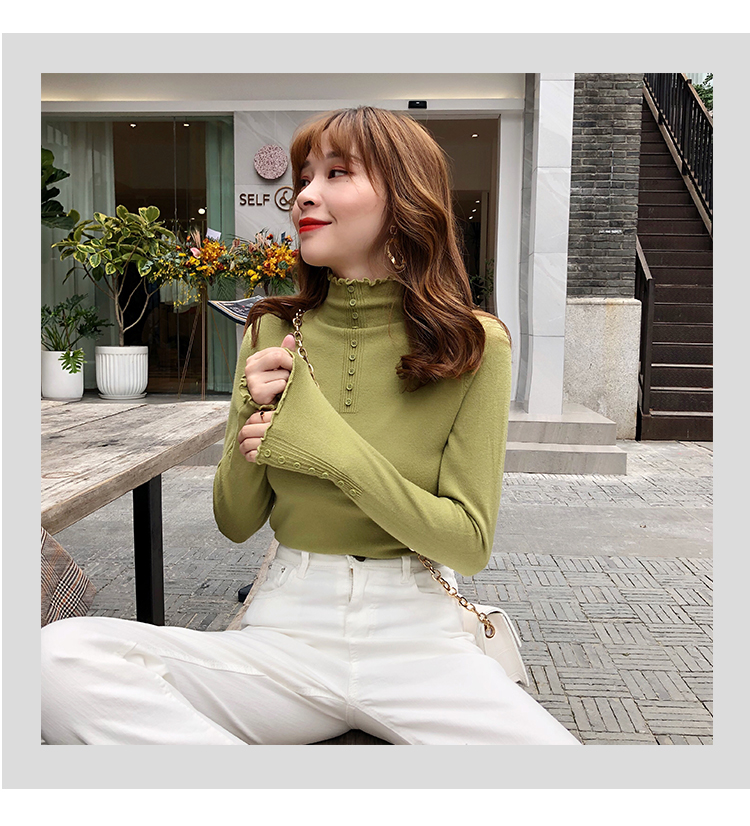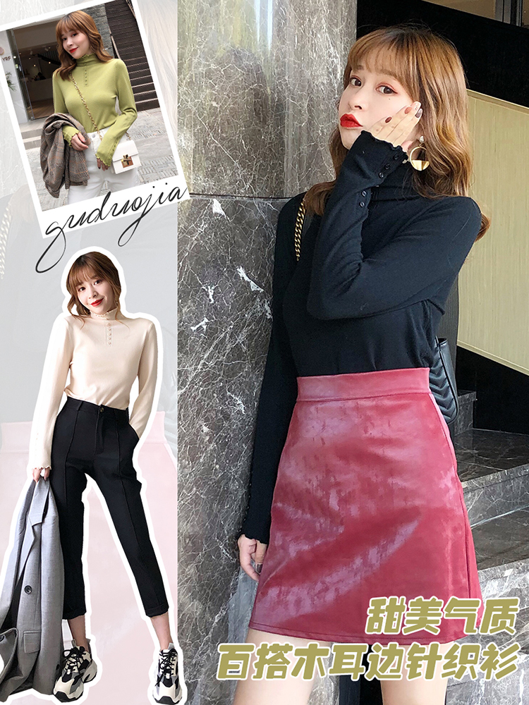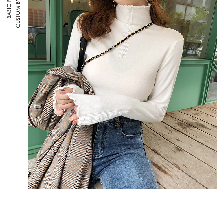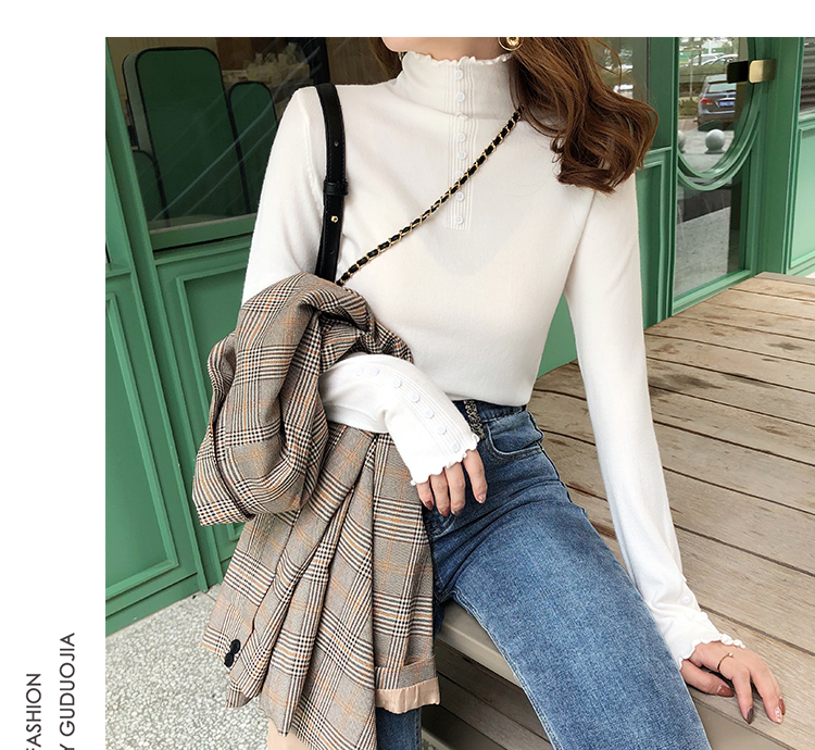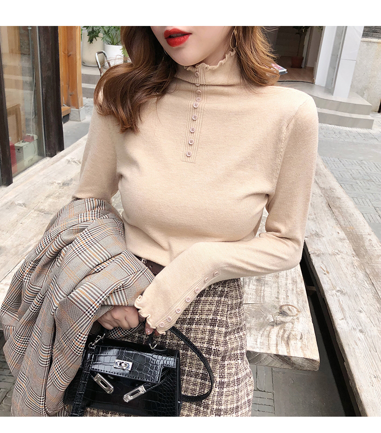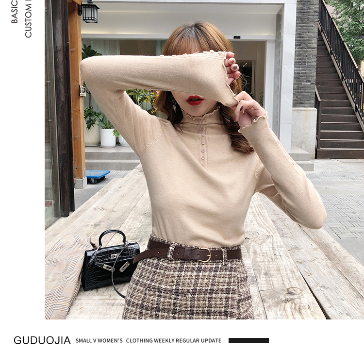 2019秋季新款半高領針織衫女韓版修身薄款套頭毛衣心機打底衫上衣1入