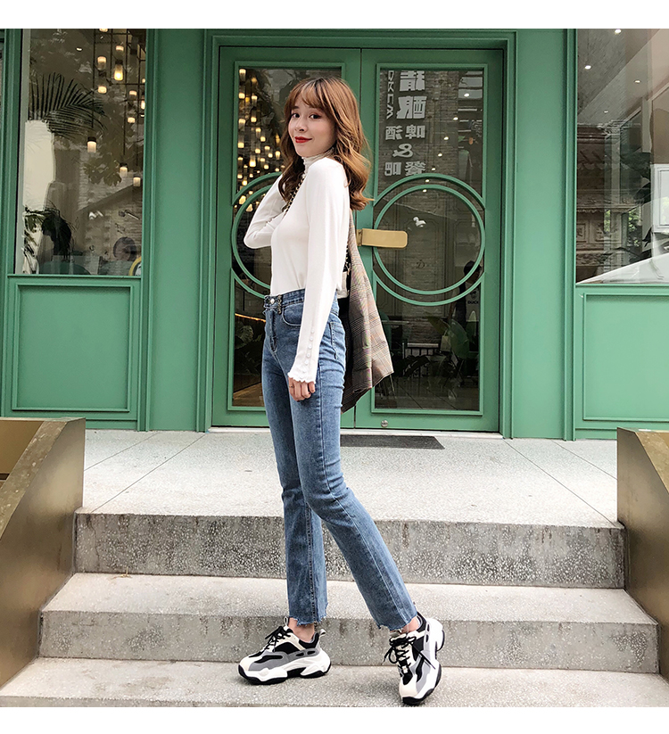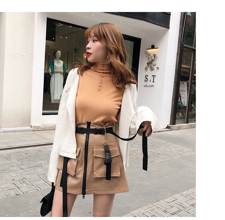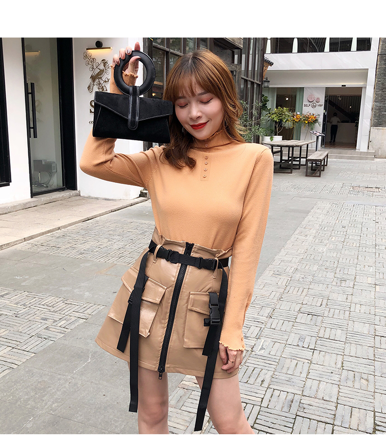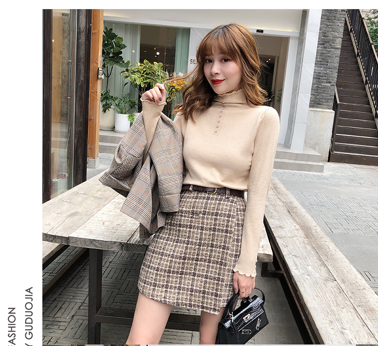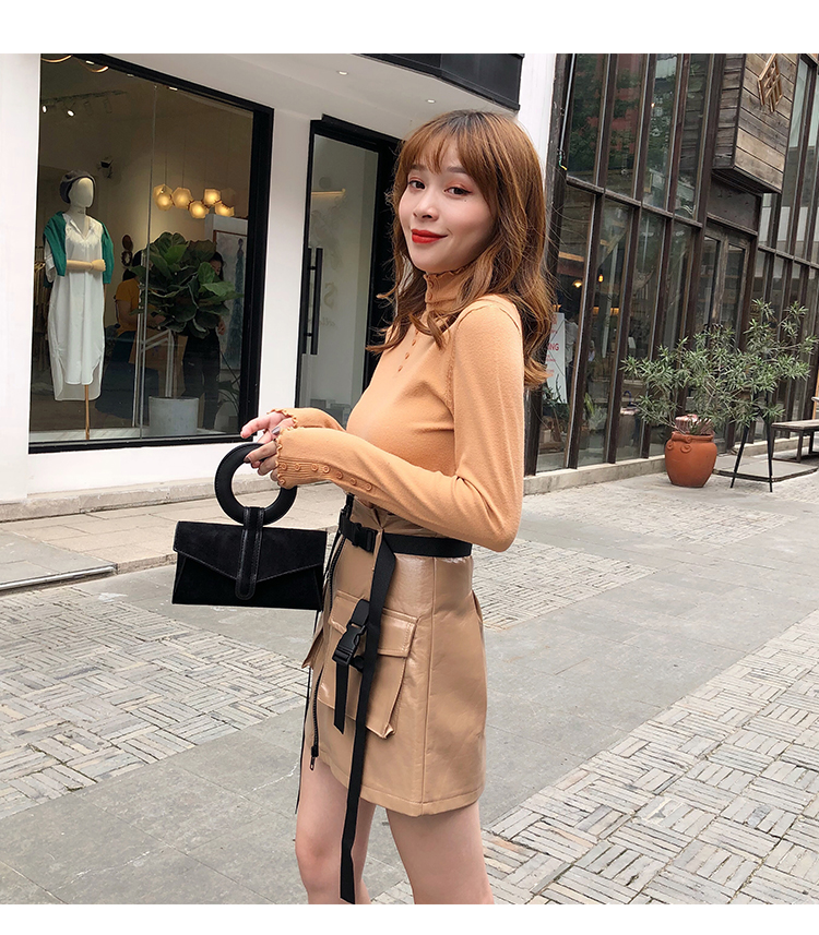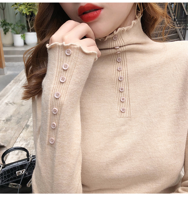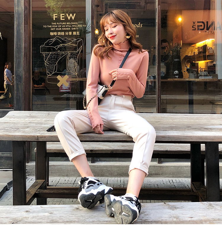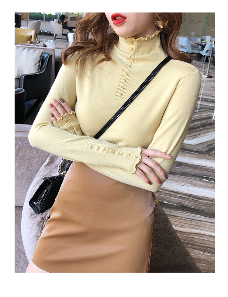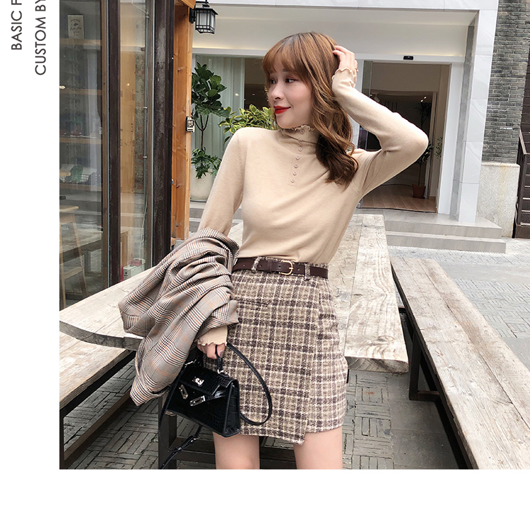 2019秋季新款半高領針織衫女韓版修身薄款套頭毛衣心機打底衫上衣1入