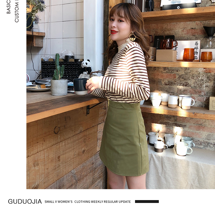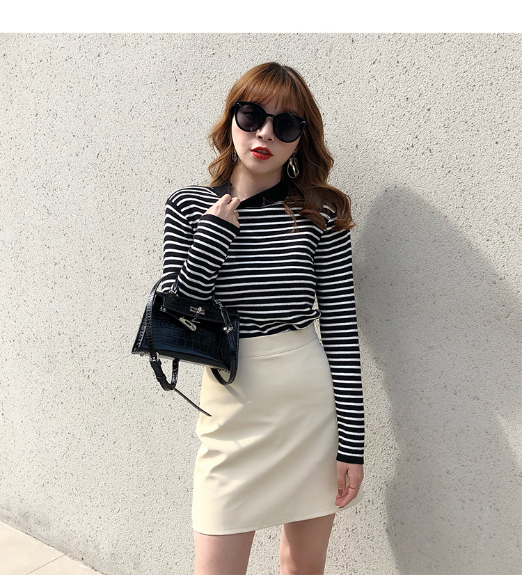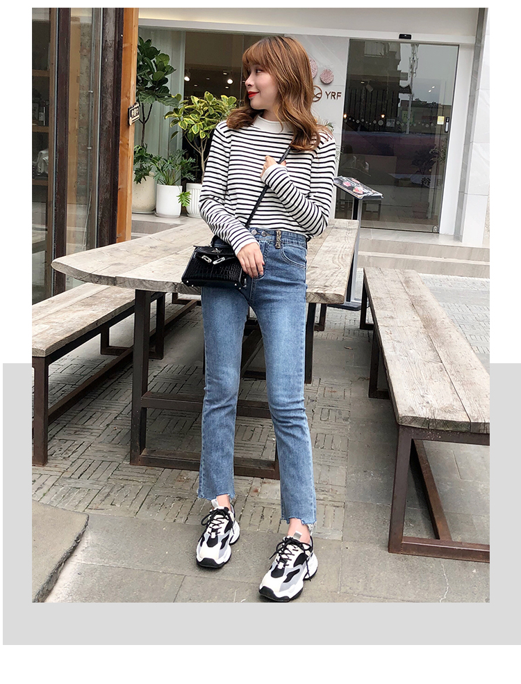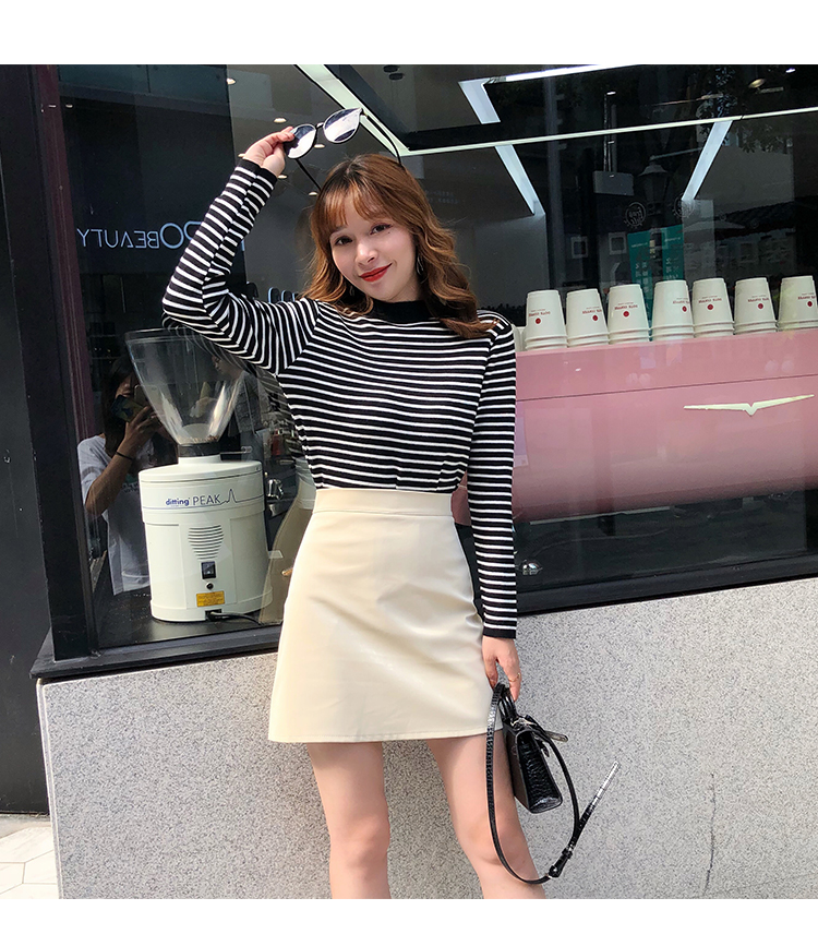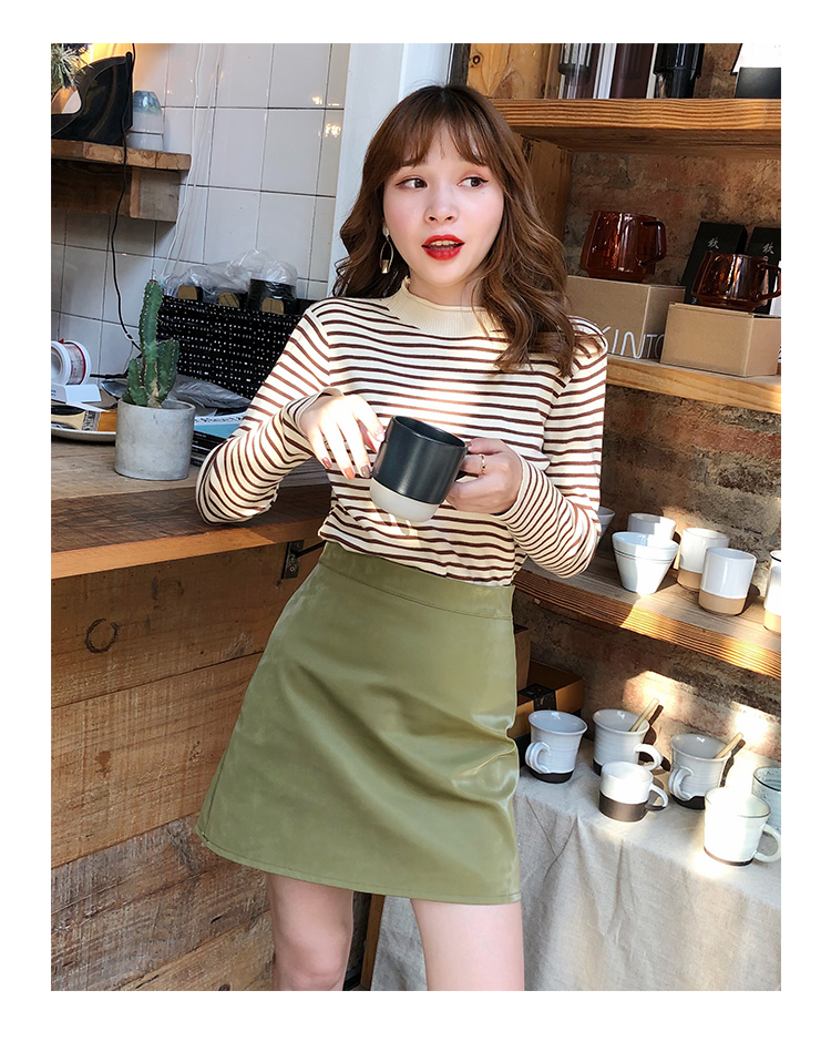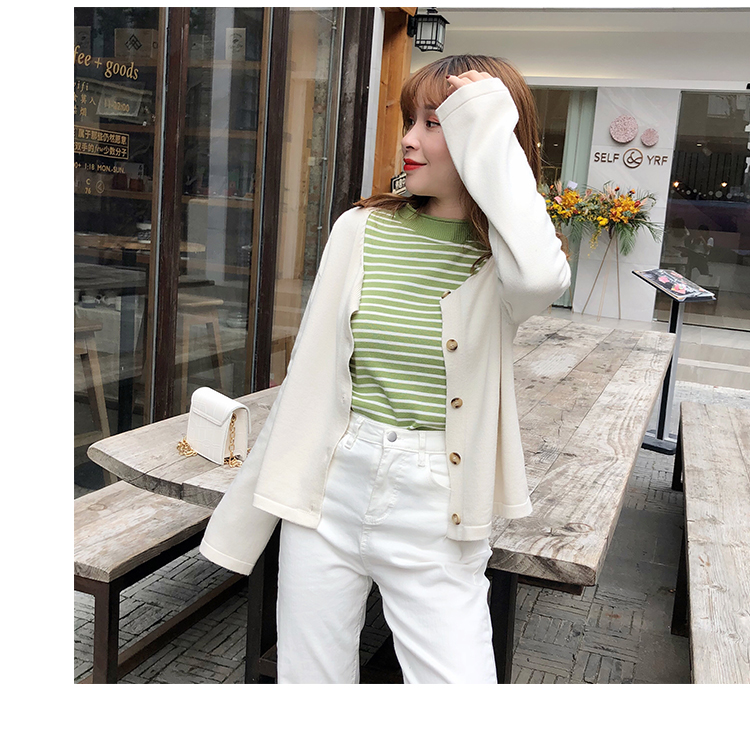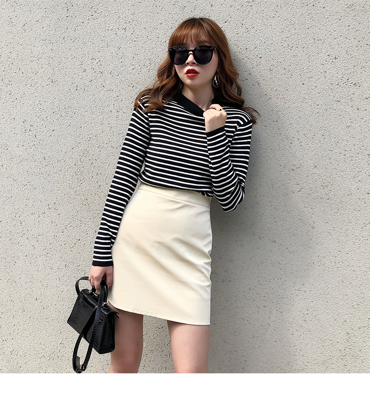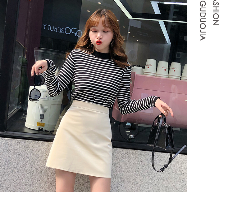 2019秋季新款半高領條紋針織衫女寬松套頭毛衣百搭韓版打底衫上衣1入