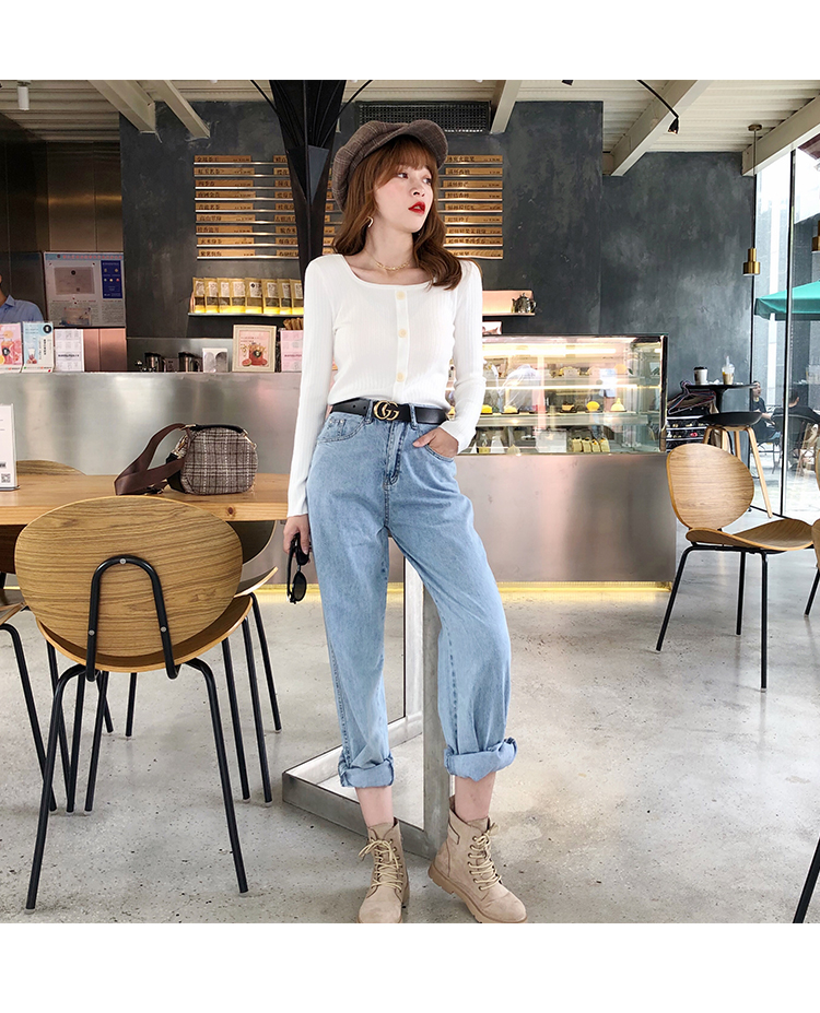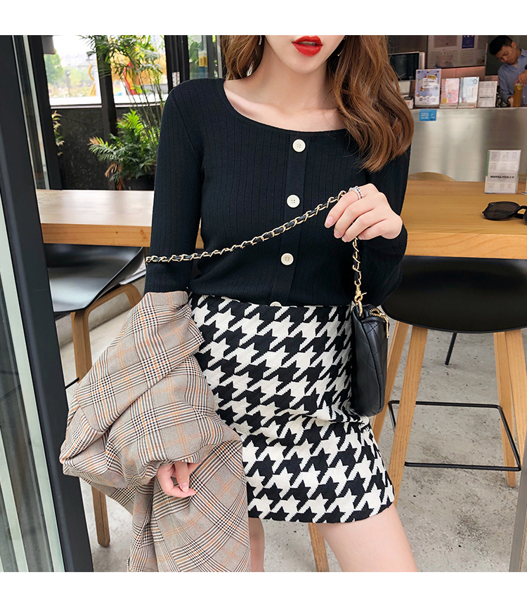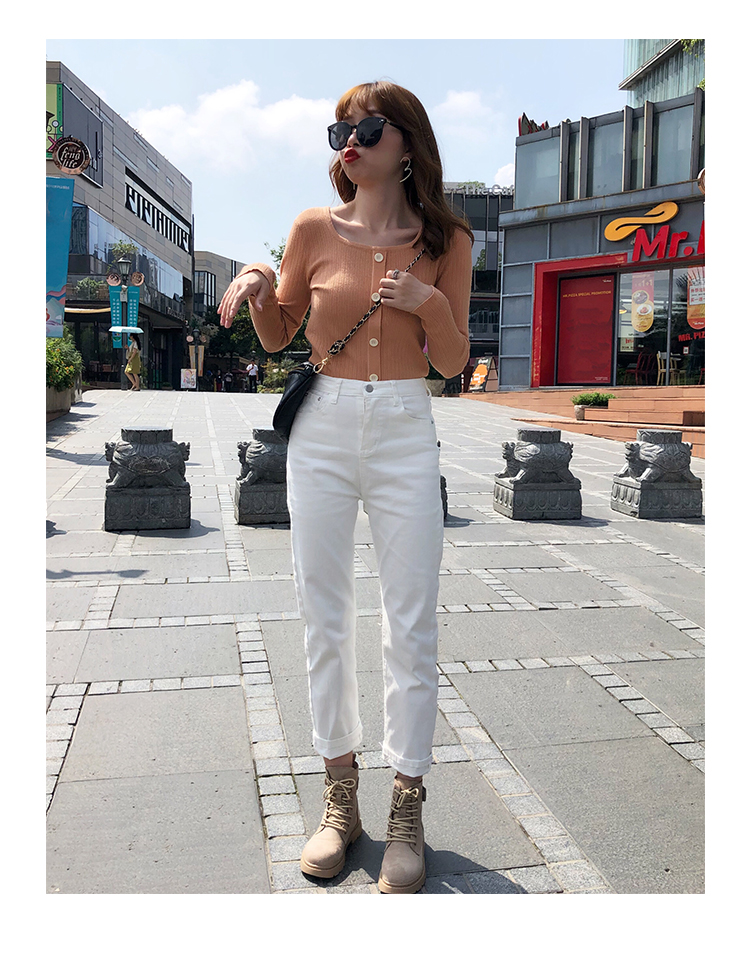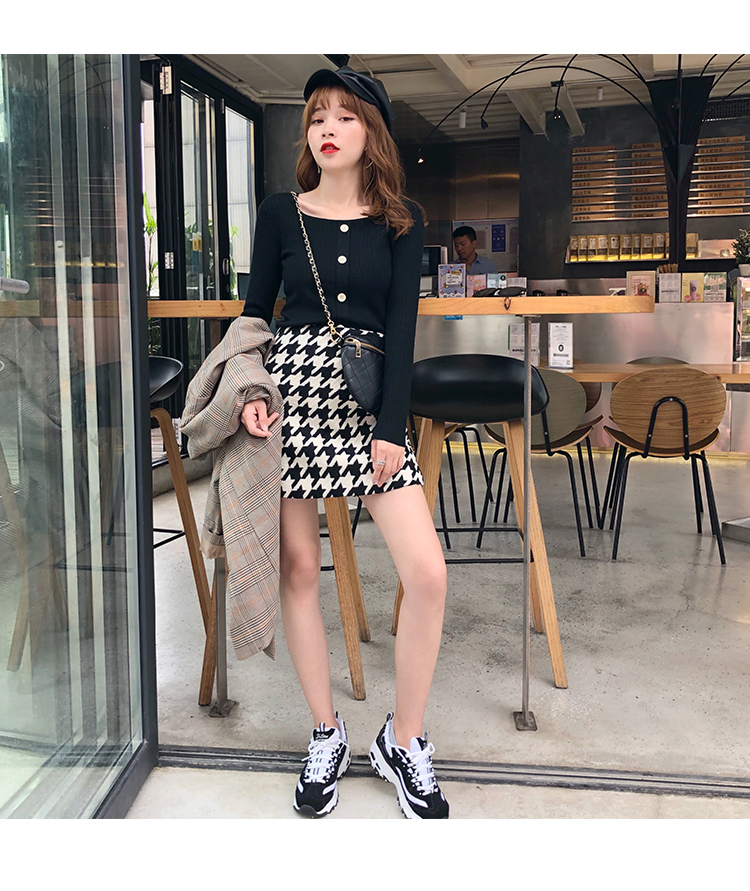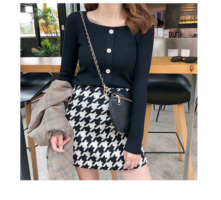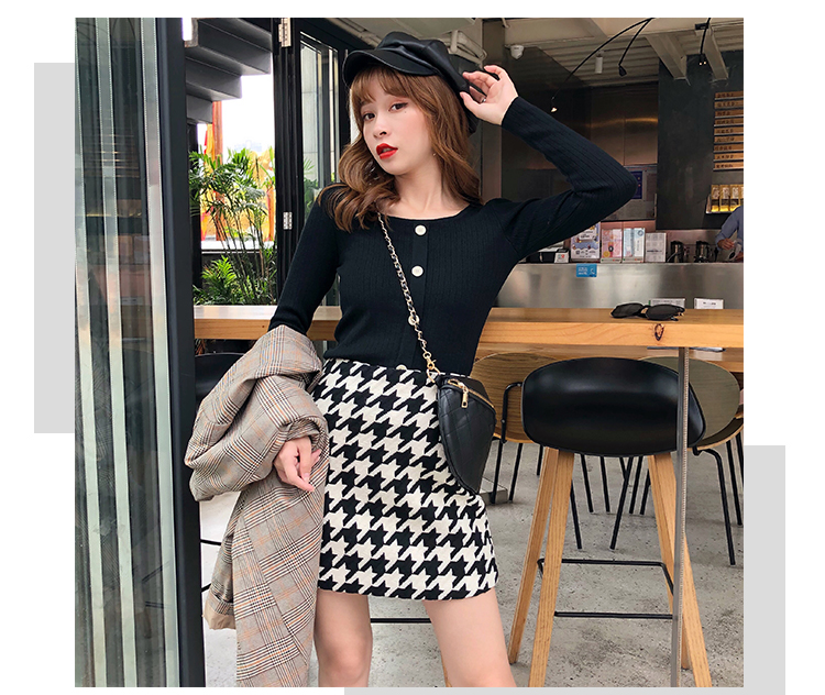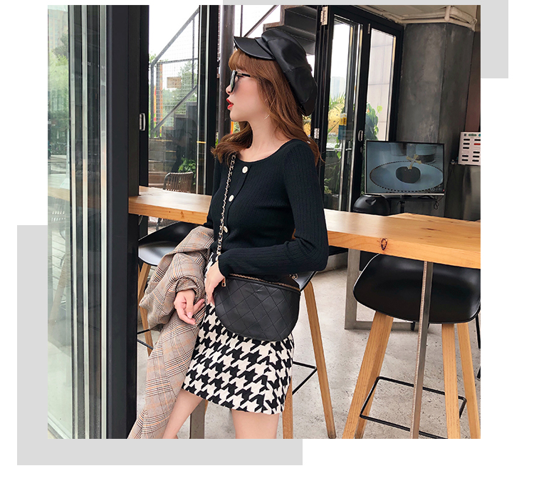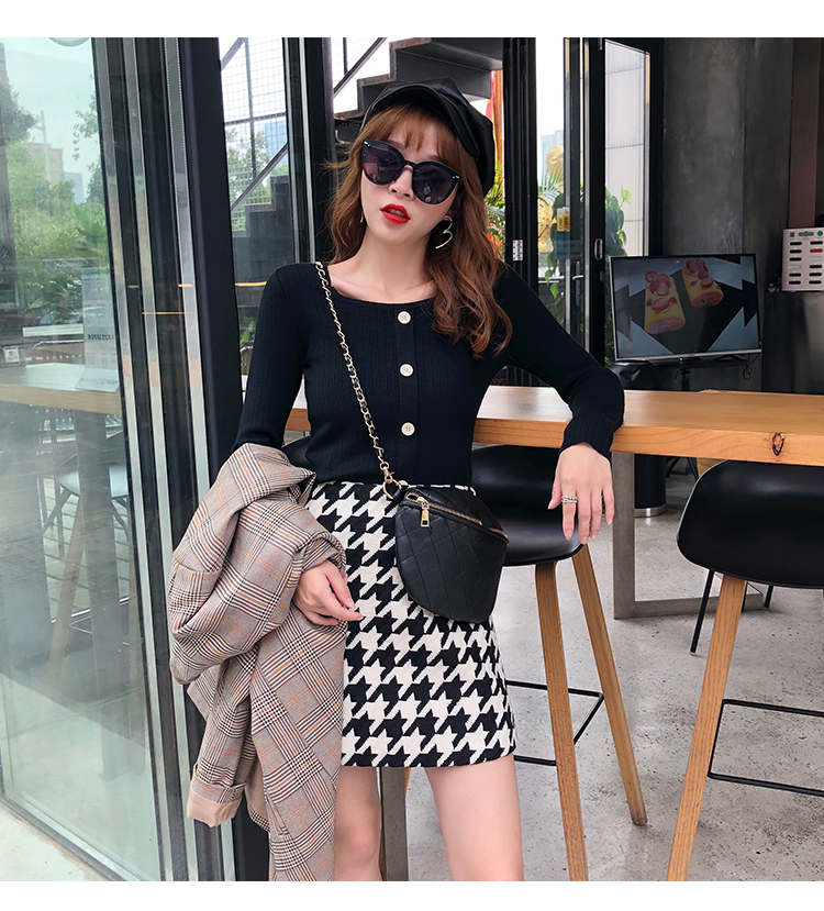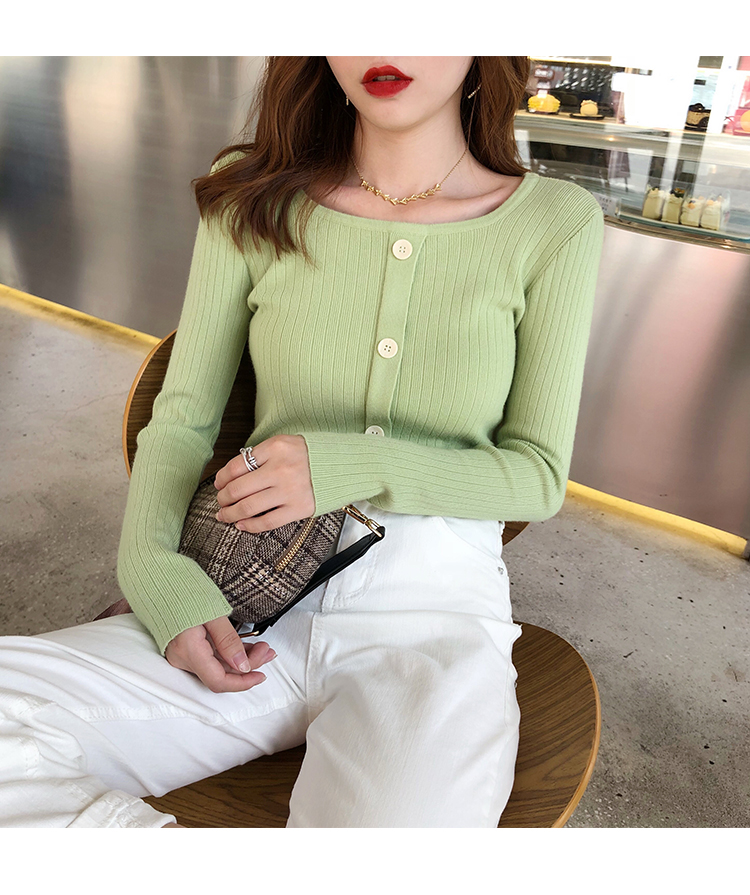 2019早秋季新款復古方領針織衫緊身短款打底衫長袖T恤百搭上衣潮1入
