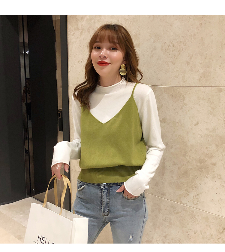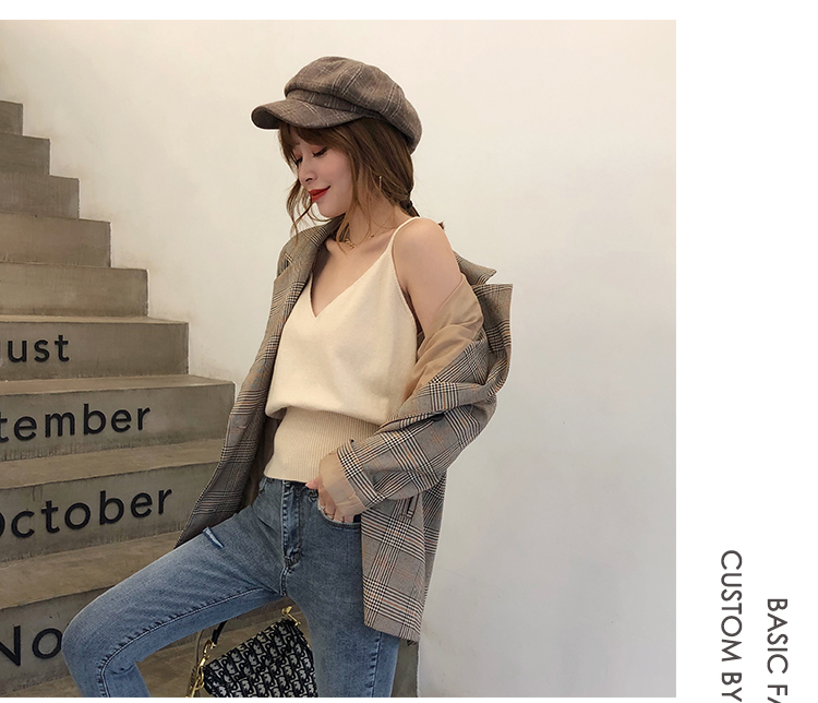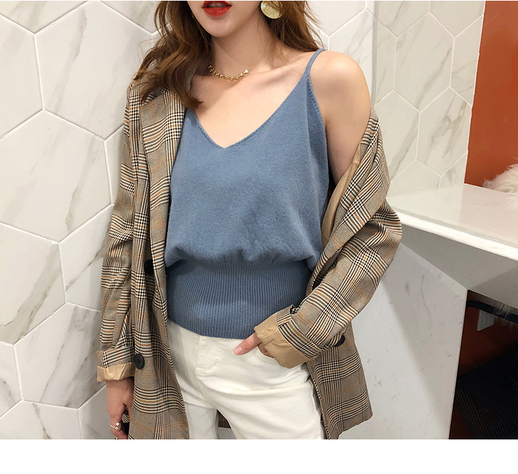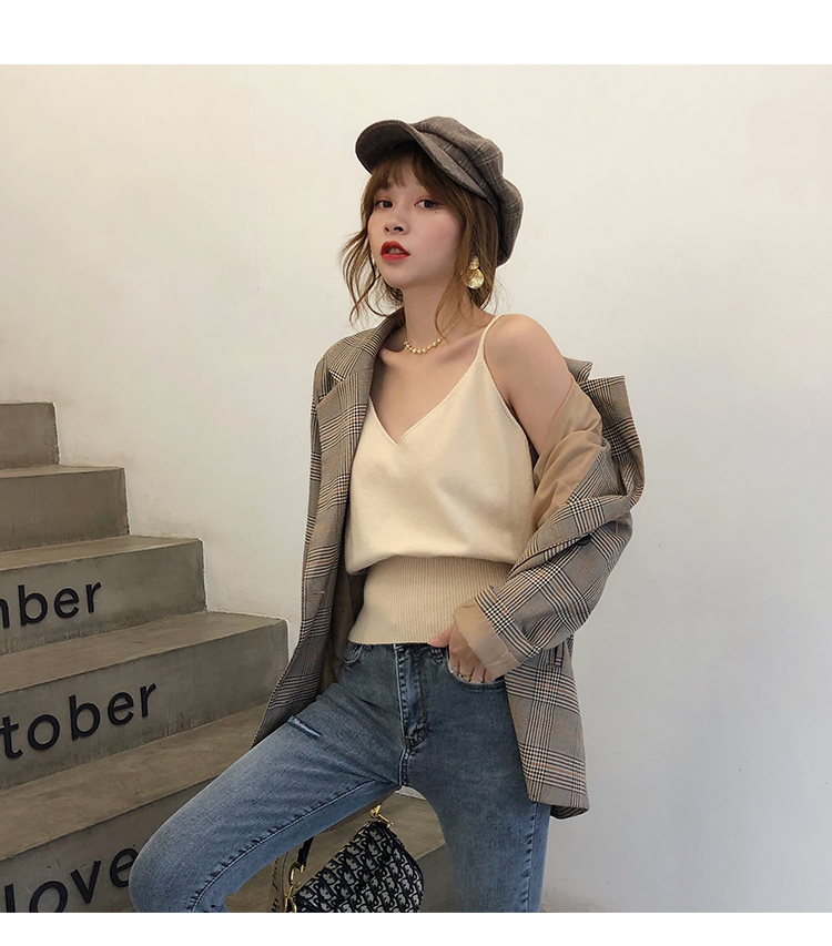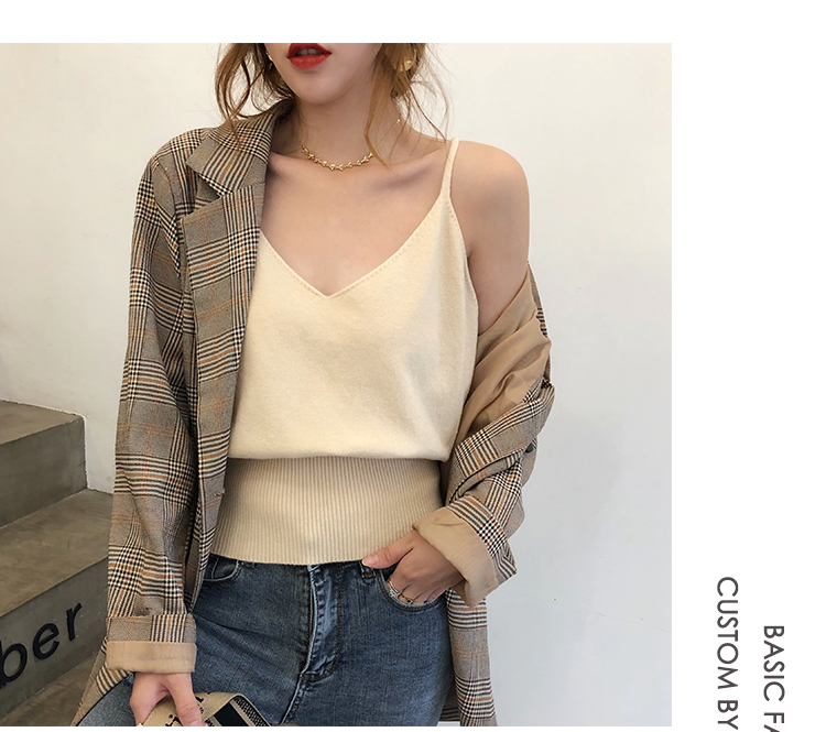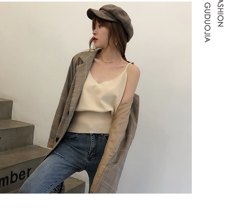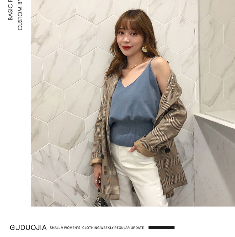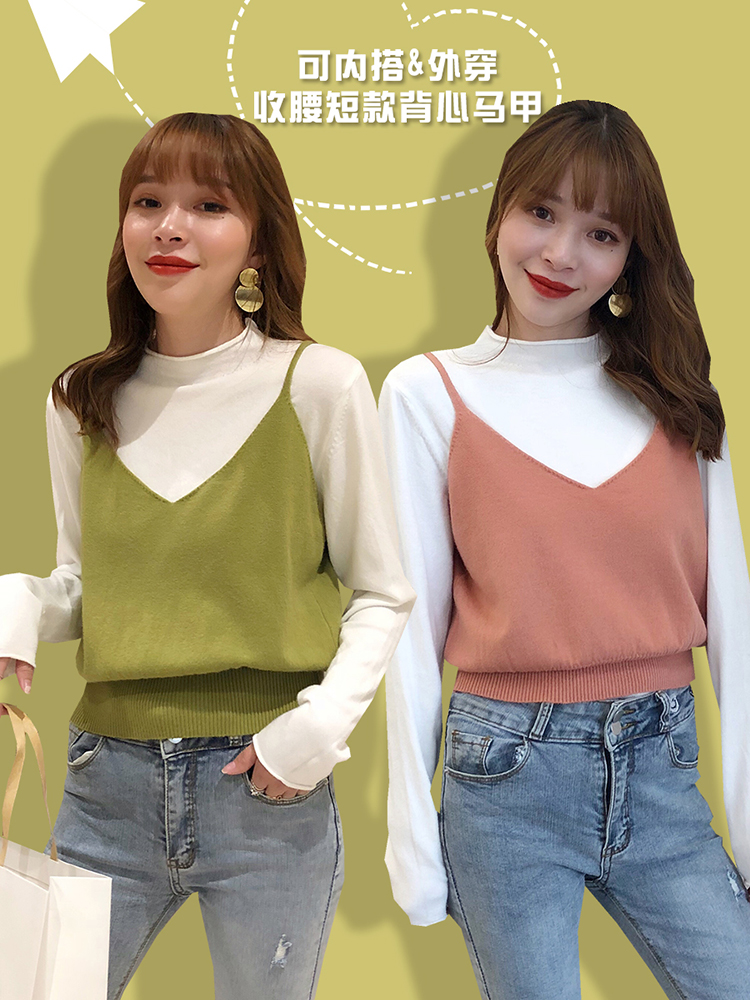 馬夾女2019秋裝新款針織吊帶小背心chic外穿韓版高腰短款無袖上衣1入
