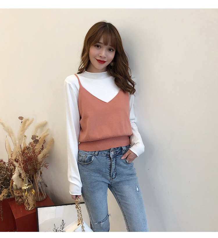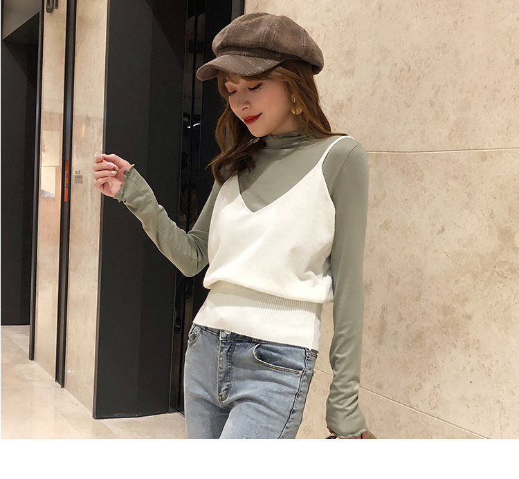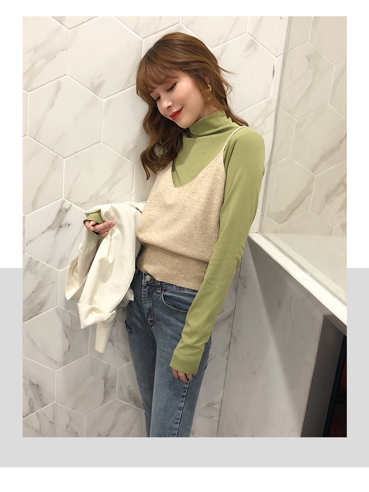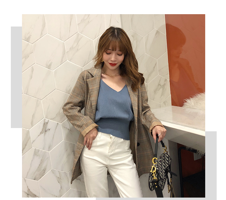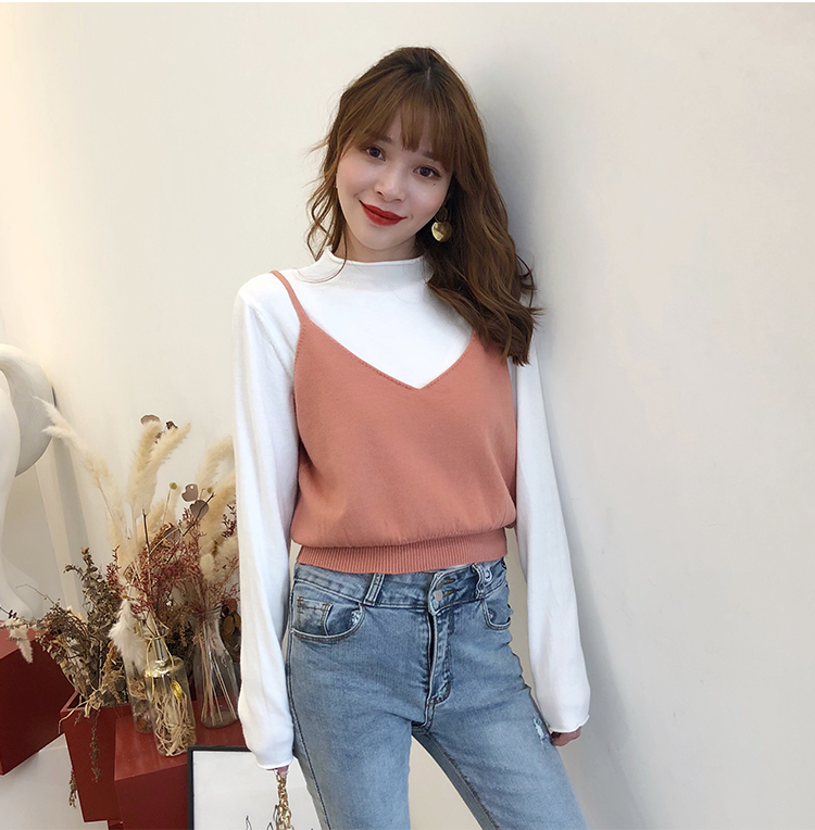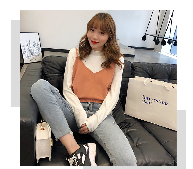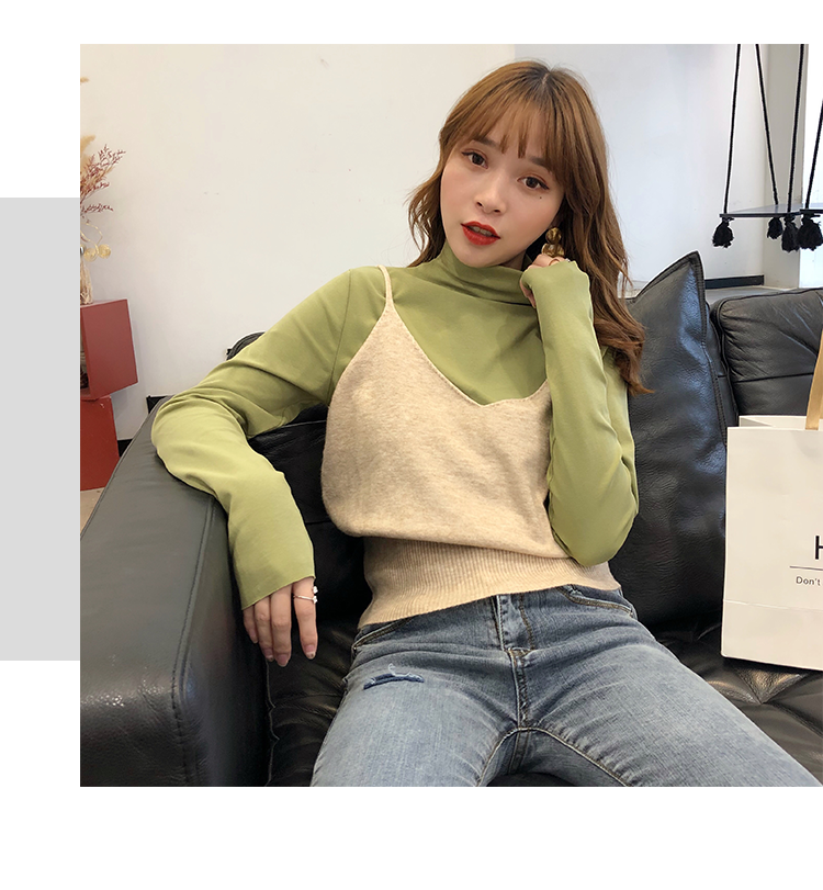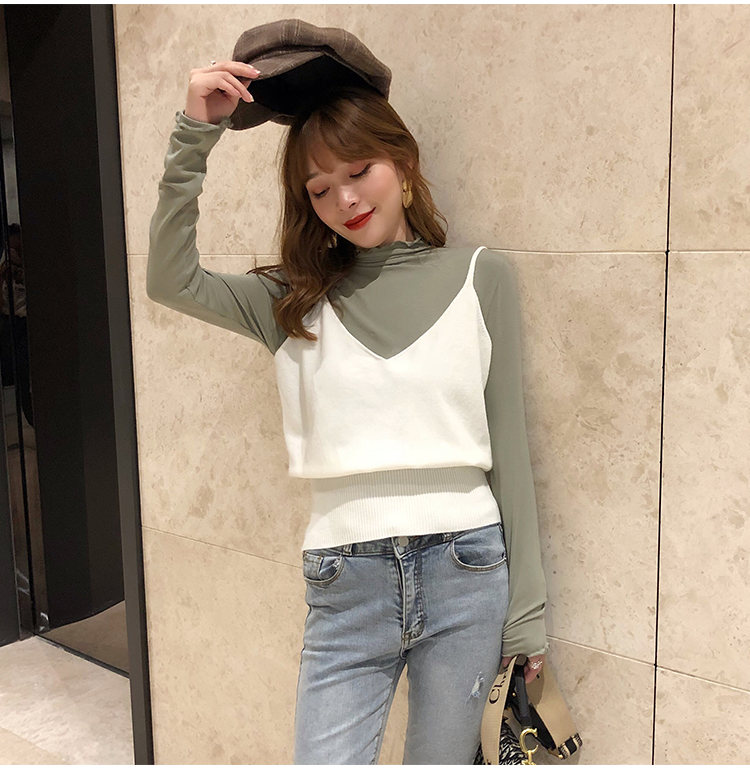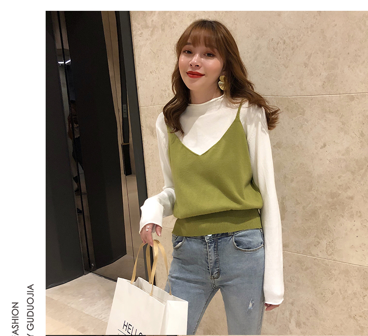 馬夾女2019秋裝新款針織吊帶小背心chic外穿韓版高腰短款無袖上衣1入