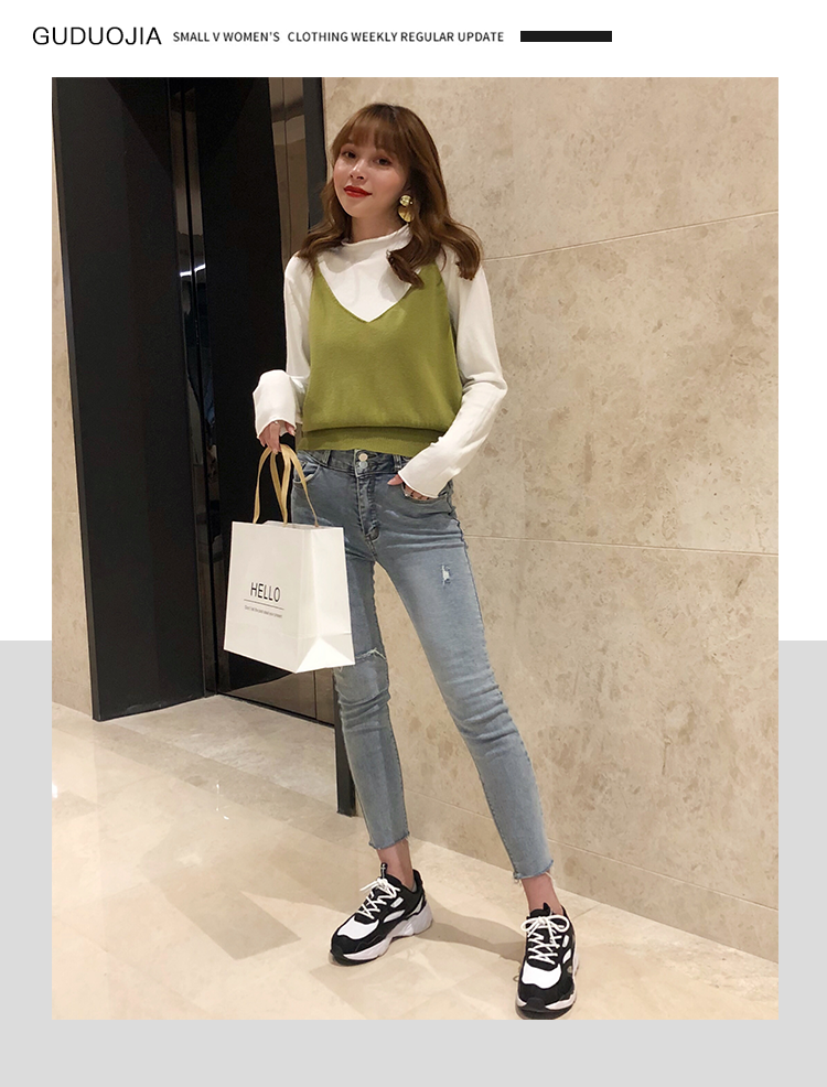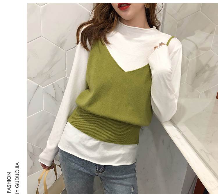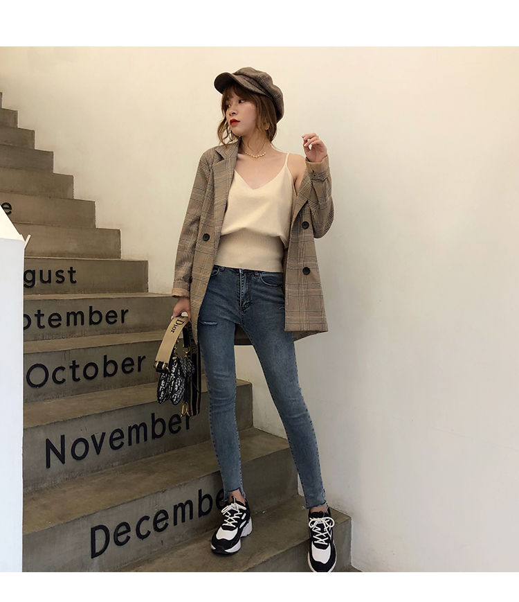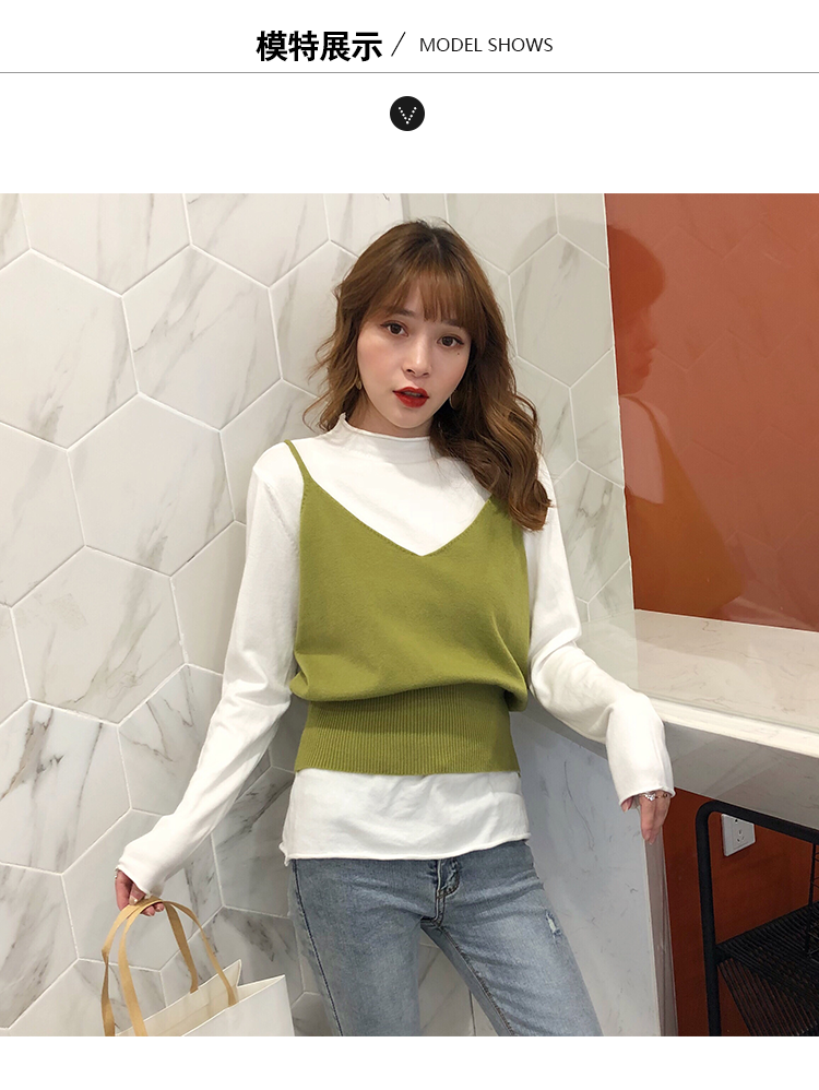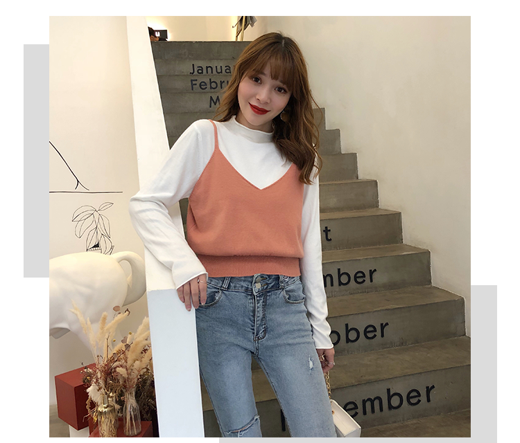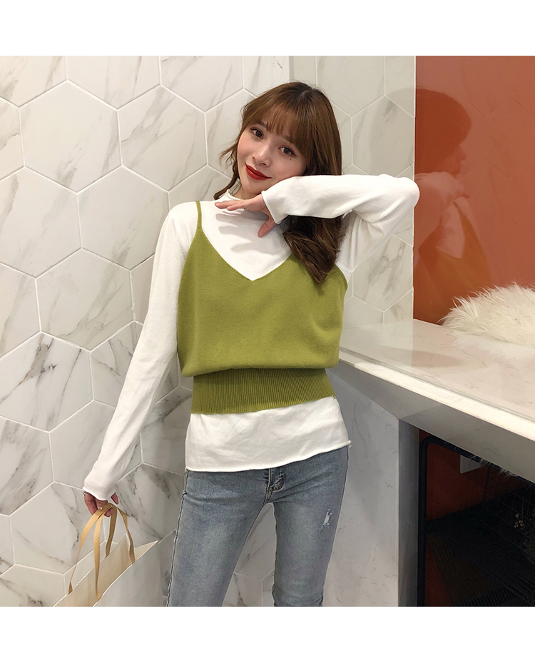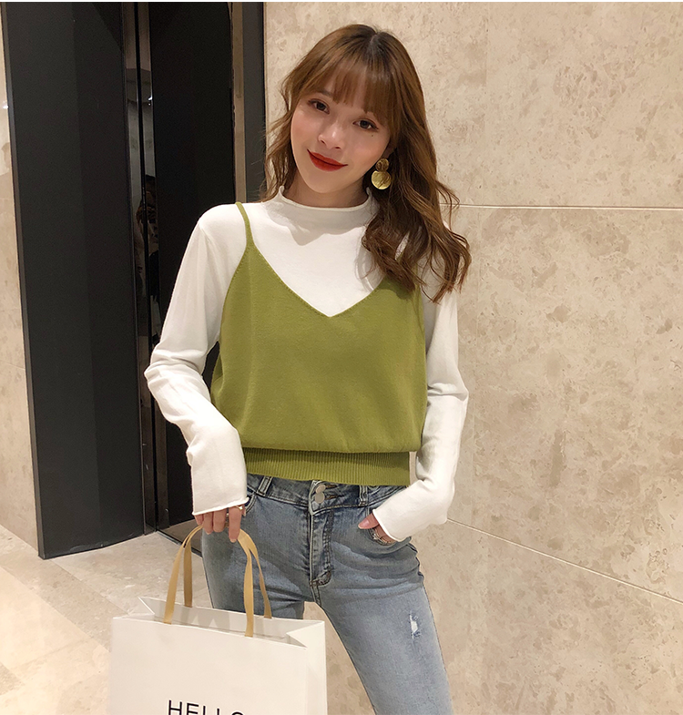 馬夾女2019秋裝新款針織吊帶小背心chic外穿韓版高腰短款無袖上衣1入
