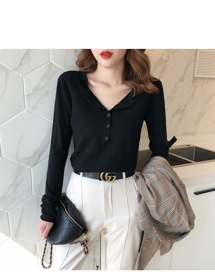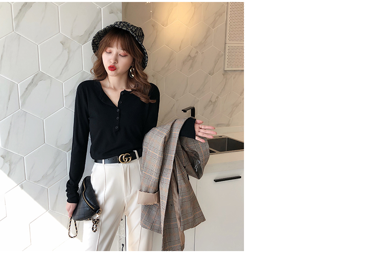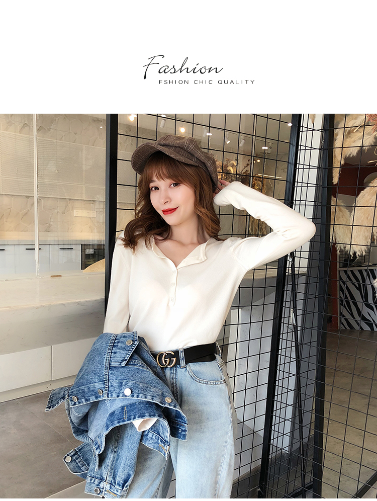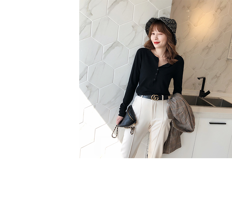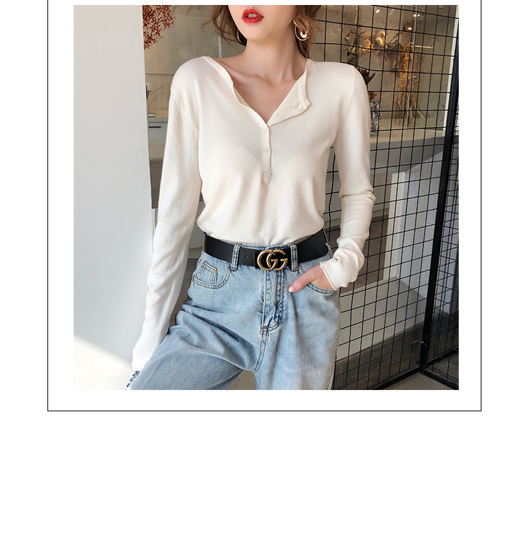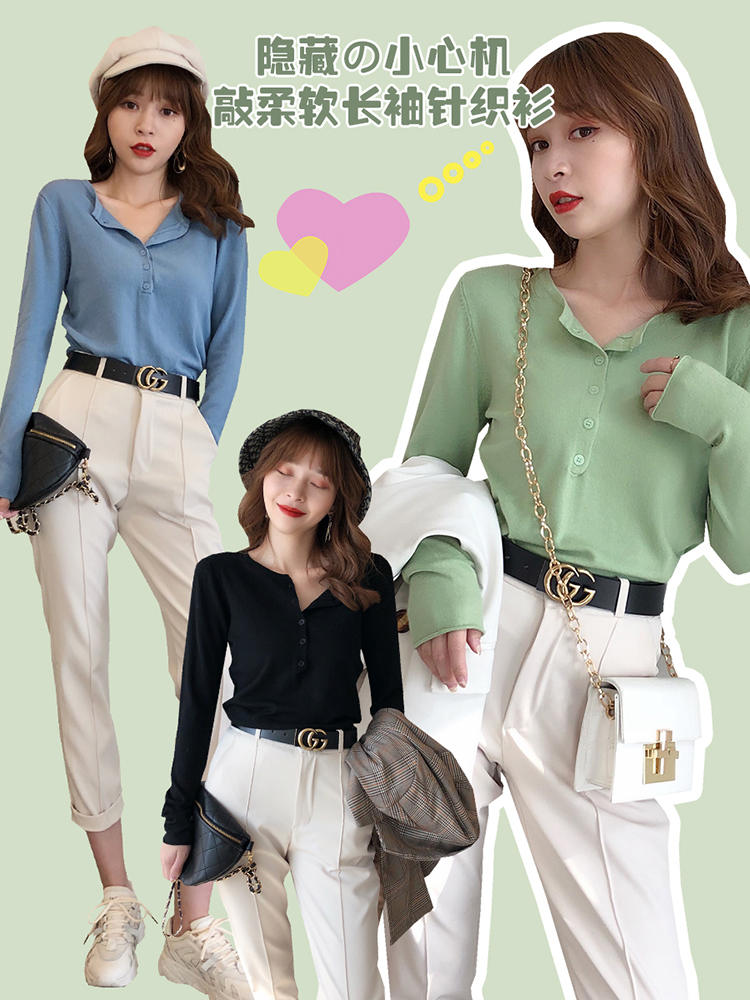 2019秋季新款套頭毛衣女外穿寬松薄款心機上衣百搭長袖打底針織衫1入