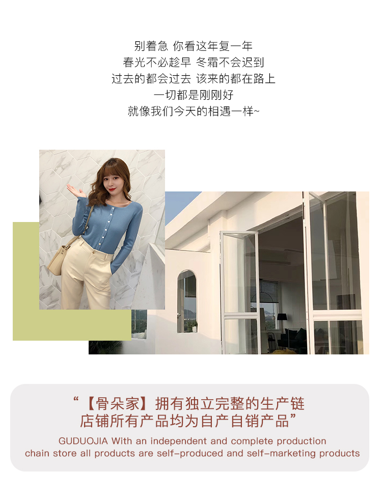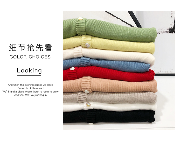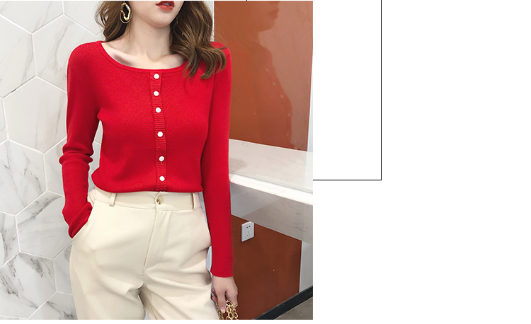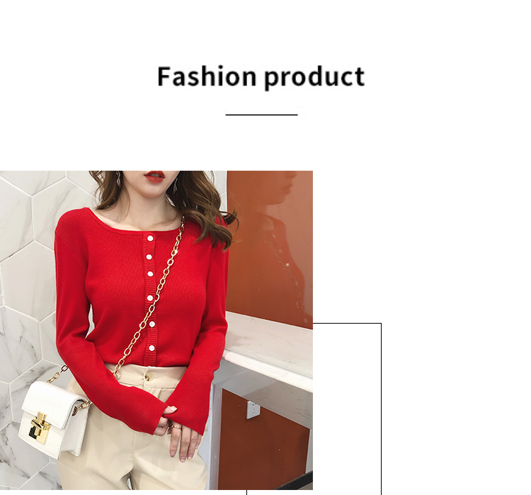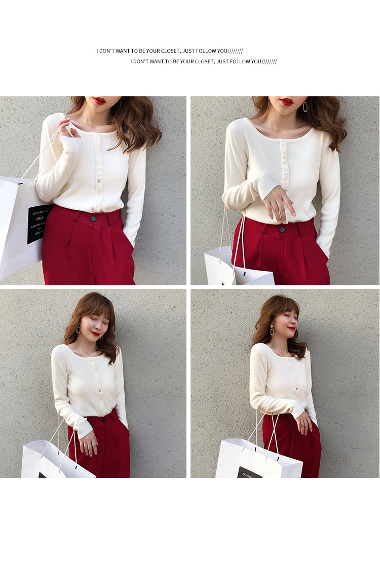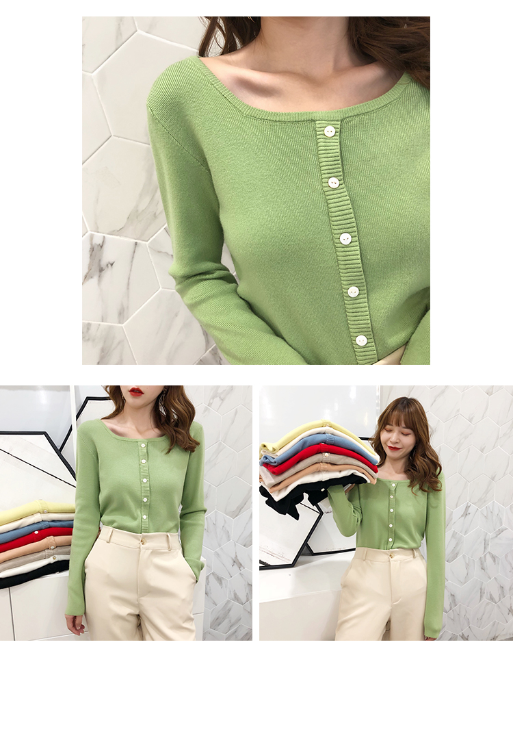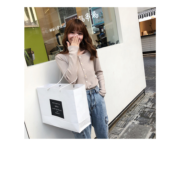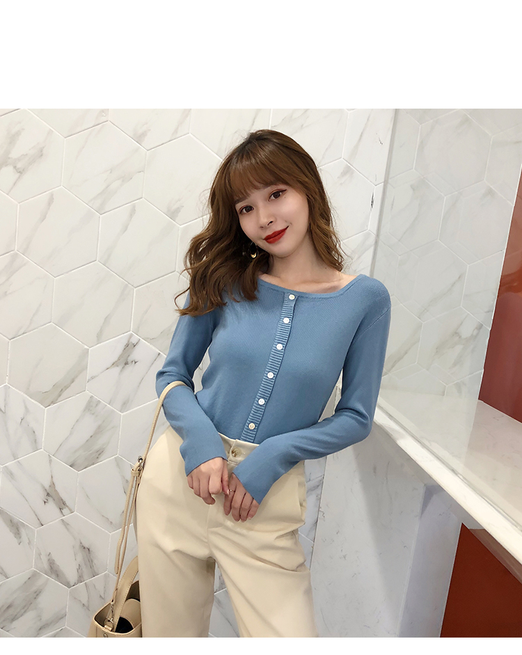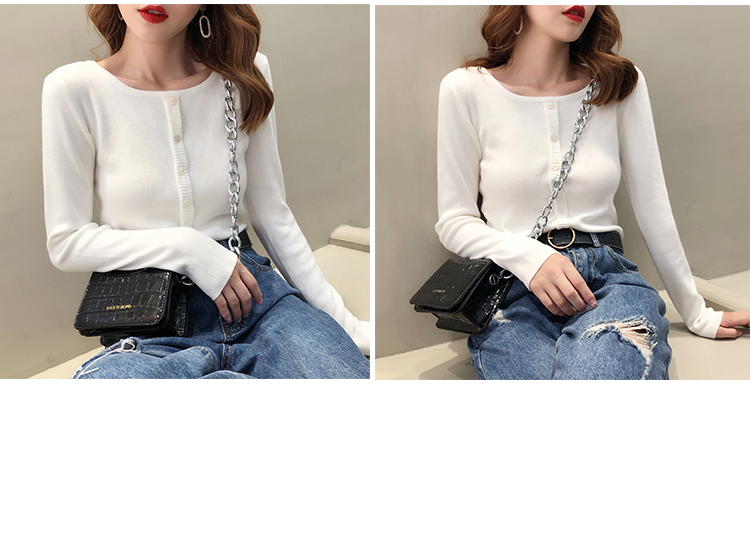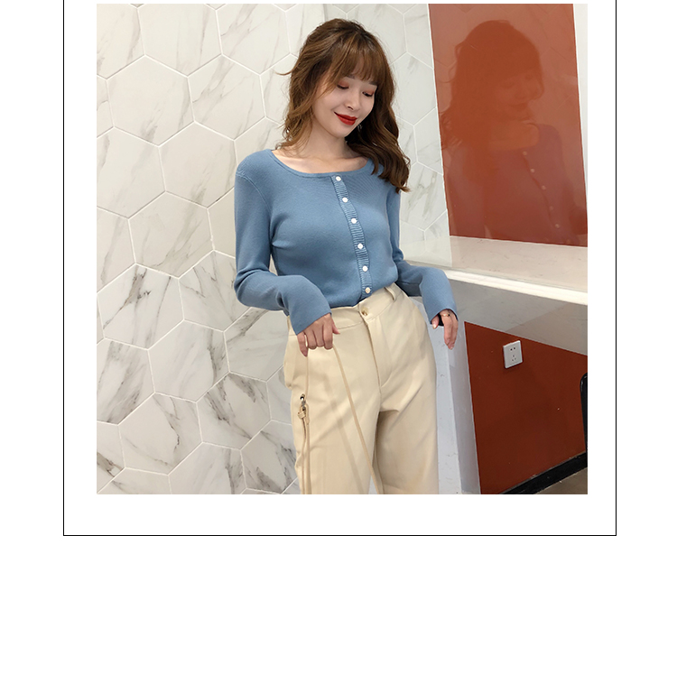 2019秋冬新款復古方領顯瘦上衣女長袖T恤寬松短款針織衫打底毛衣1入
