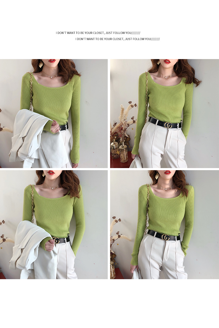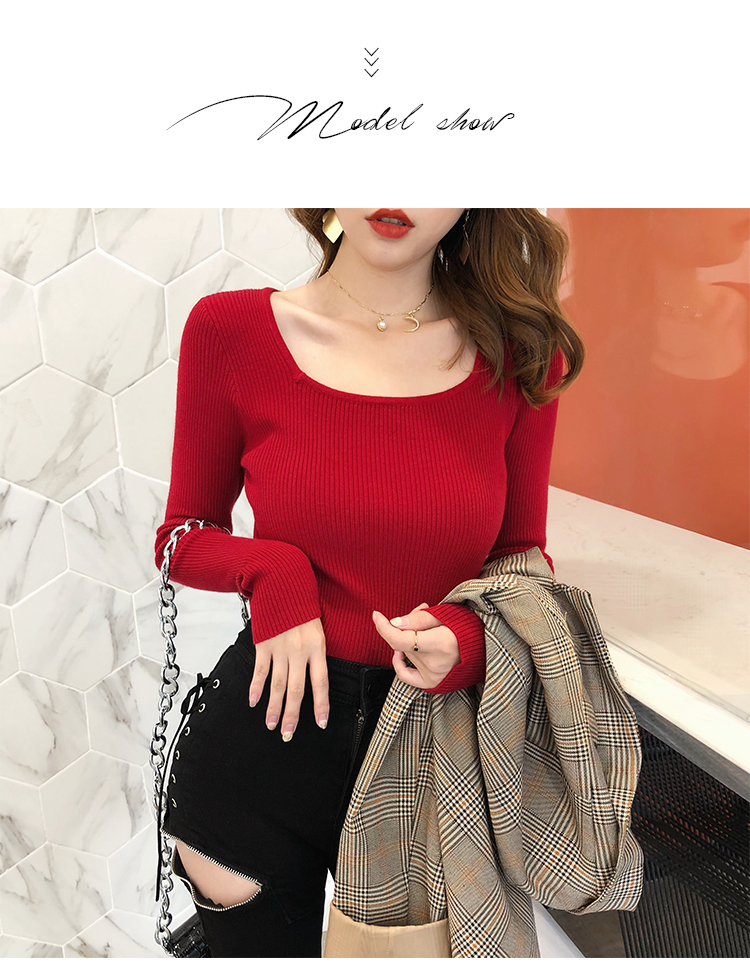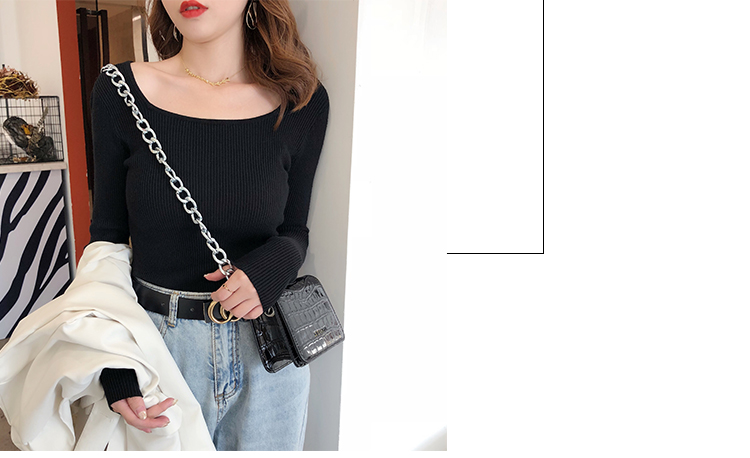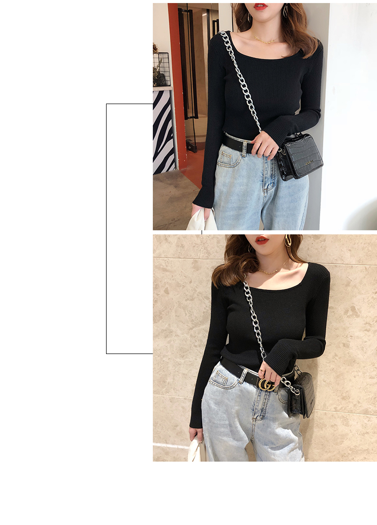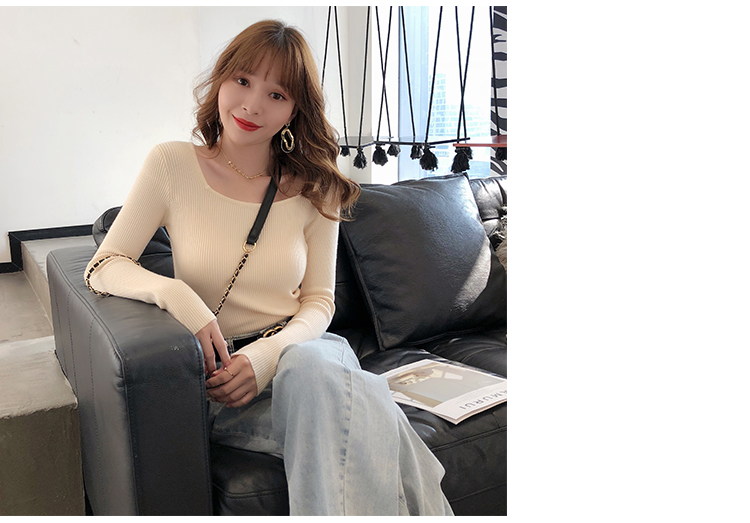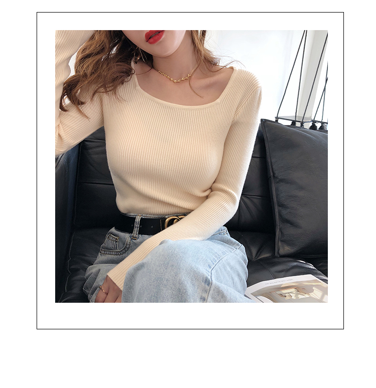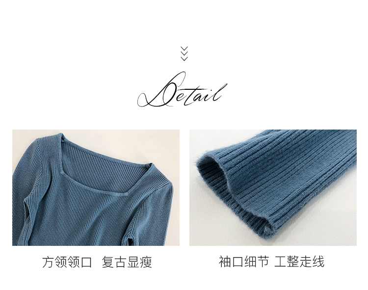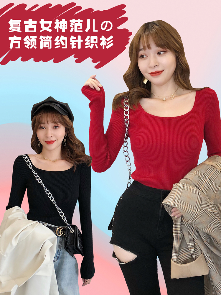 2019秋季新款復古方領套頭毛衣女內搭打底衫緊身長袖毛針織衫上衣1入