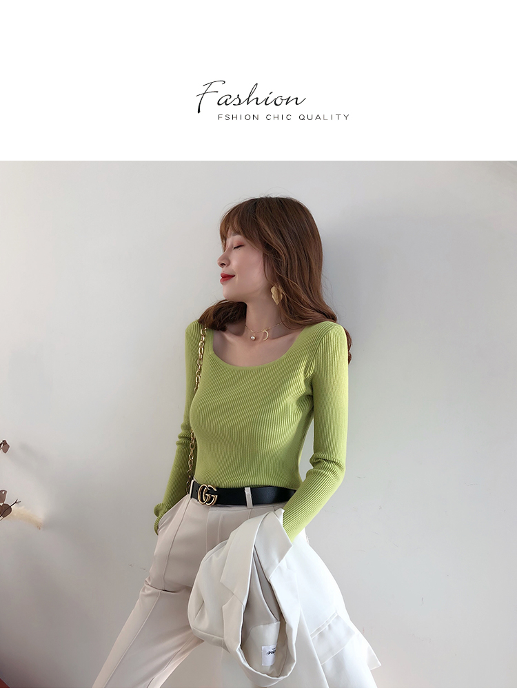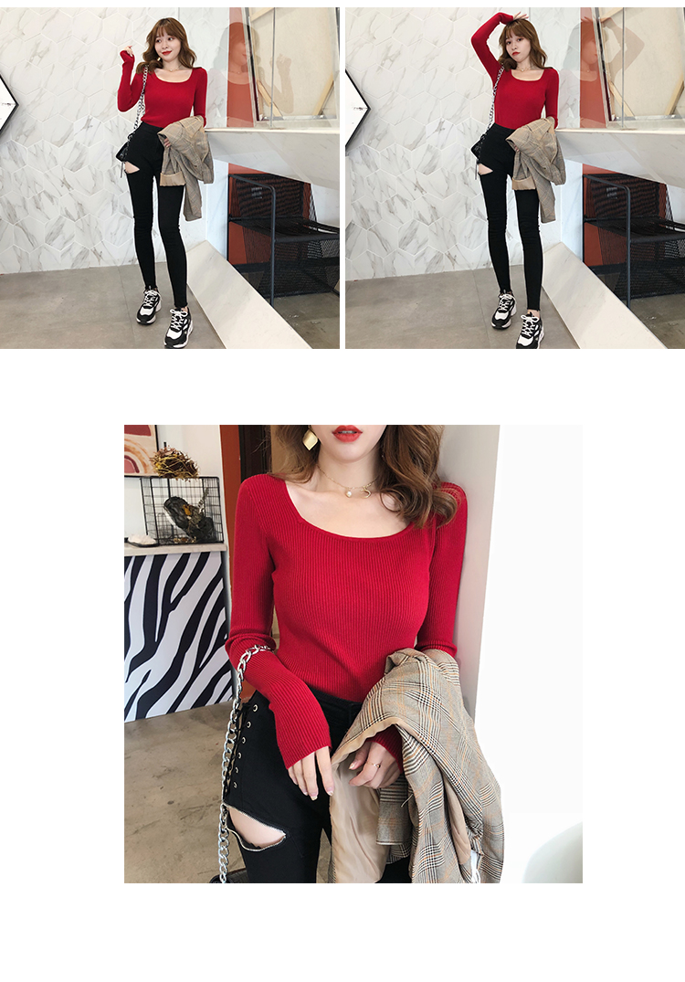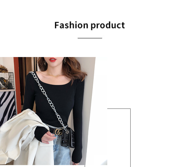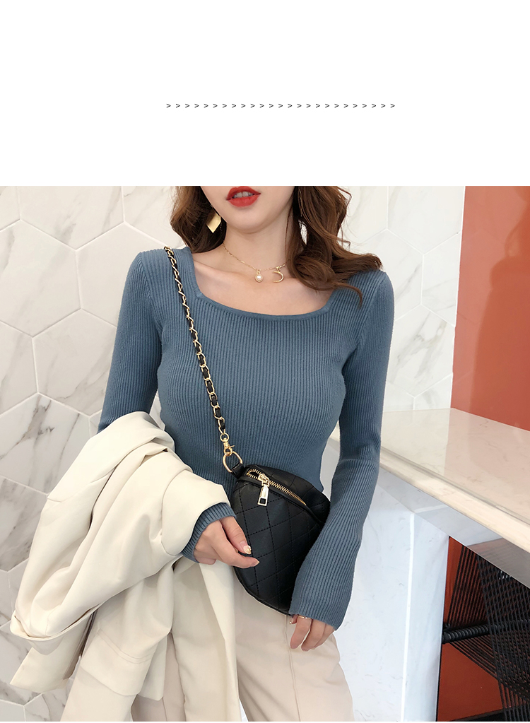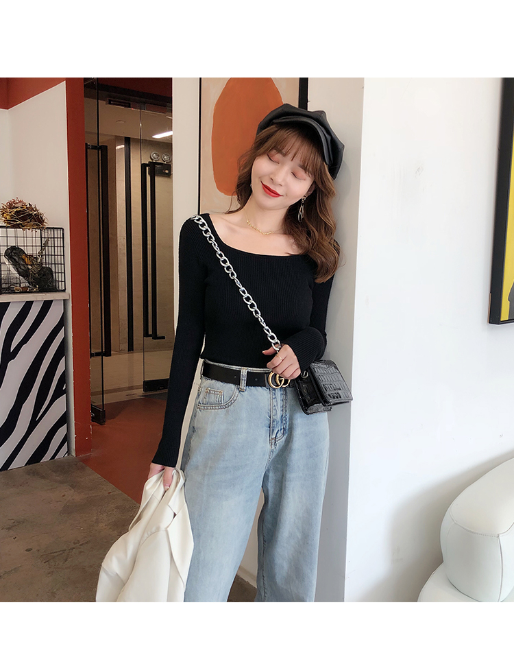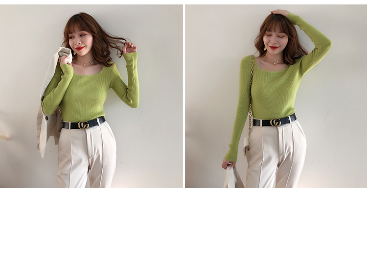 2019秋季新款復古方領套頭毛衣女內搭打底衫緊身長袖毛針織衫上衣1入