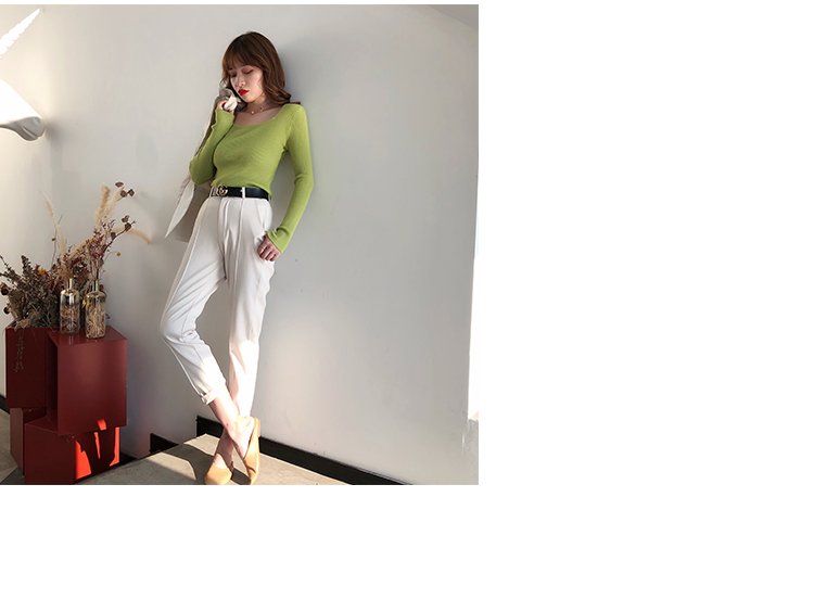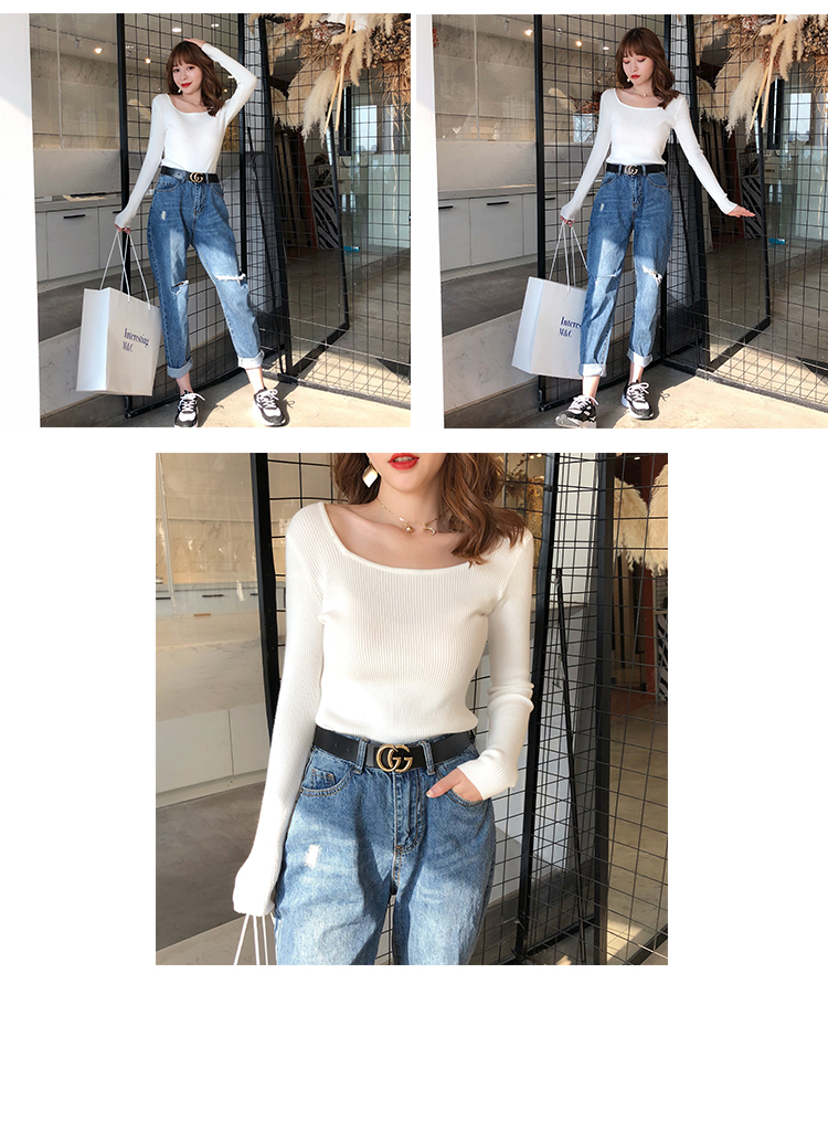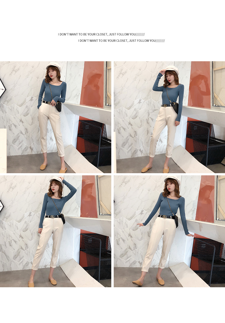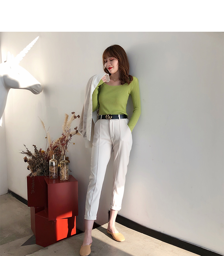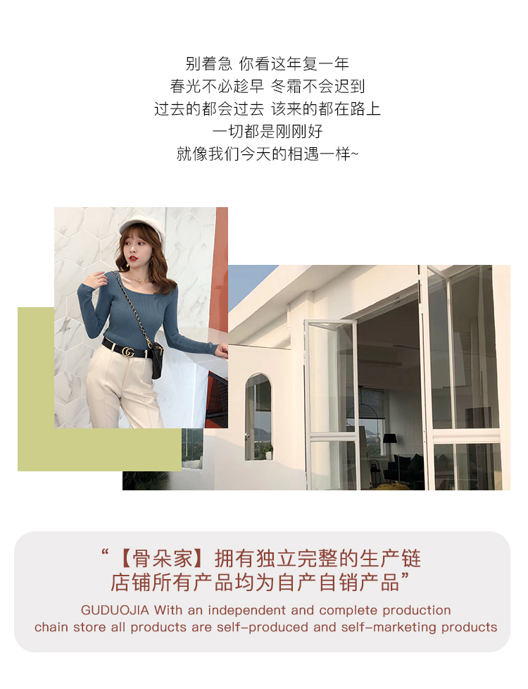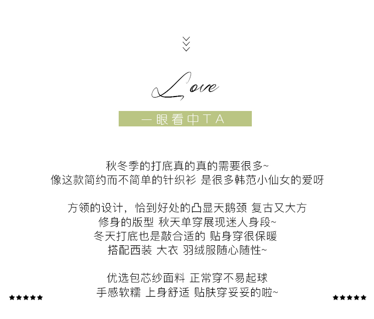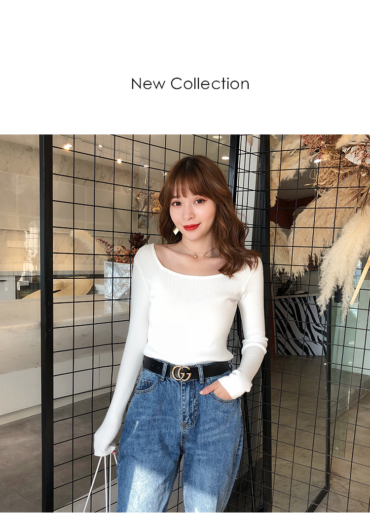 2019秋季新款復古方領套頭毛衣女內搭打底衫緊身長袖毛針織衫上衣1入