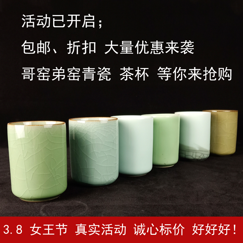 青瓷茶杯辦公無把口茶杯子創意簡約青瓷小清新直杯水杯耐熱特價1入