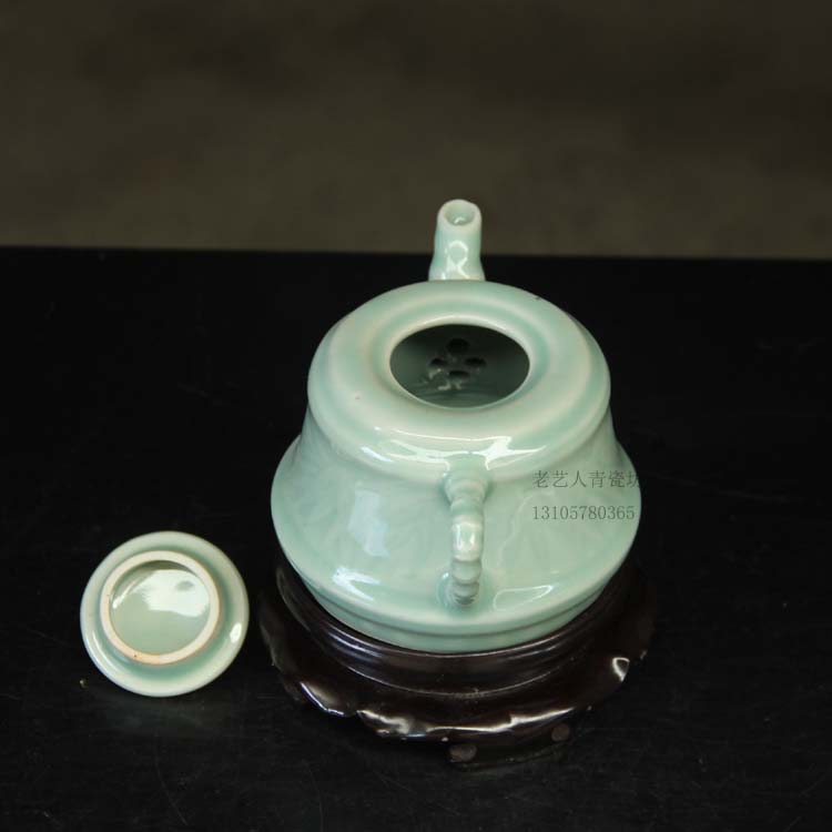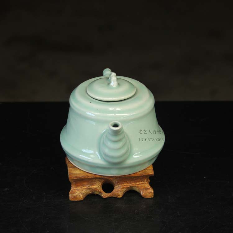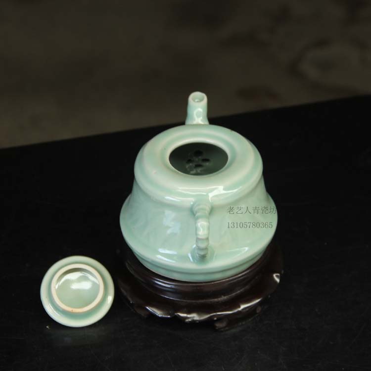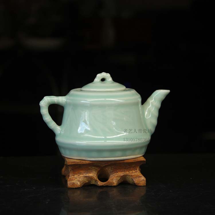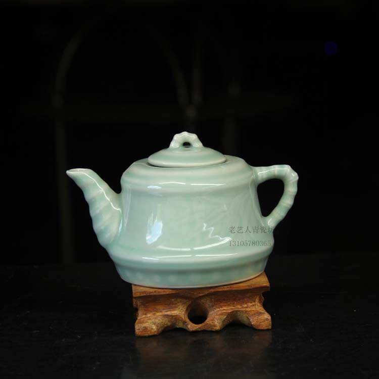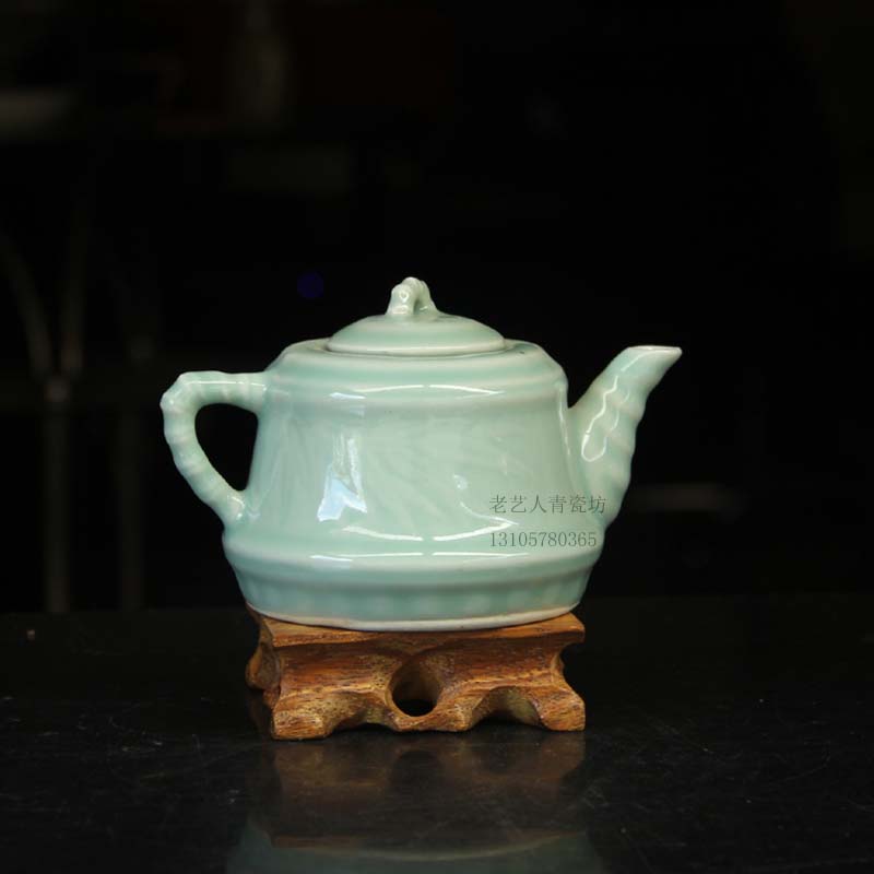 【詳細說明】:80年代柴窯燒制產品,屬于當時的出口精品。此壺是80年代龍泉瓷器總廠(上垟瓷廠)燒制的產品,壺型屬于老一輩瓷器制作人精心設計,器型比例恰到好處,美觀大方實用。是當年批量生產的產品。本店現在所售的竹節壺品相是當年選瓷標準的一級品。因受成型生產環境、設備工具等簡陋;及龍窯燒制時:窯內裝窯環境復雜(此壺需要放入特制的?內燒制,才能使此壺在燒制過程中均勻受溫),加上人工觀火控溫難度高等因素的影響,形成的成品率極低。當年的一級品產品比起現在瓷器來粗糙,還略帶小瑕疵。其工藝復雜性與難度是現在制瓷工藝無法比擬的,它永遠成為一個歷史的見證,見證當年一個時期青瓷制作工藝水平的高難度。