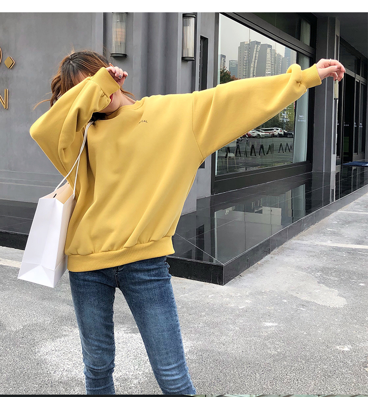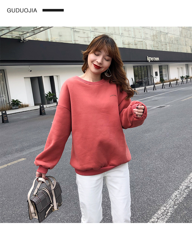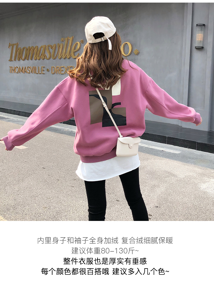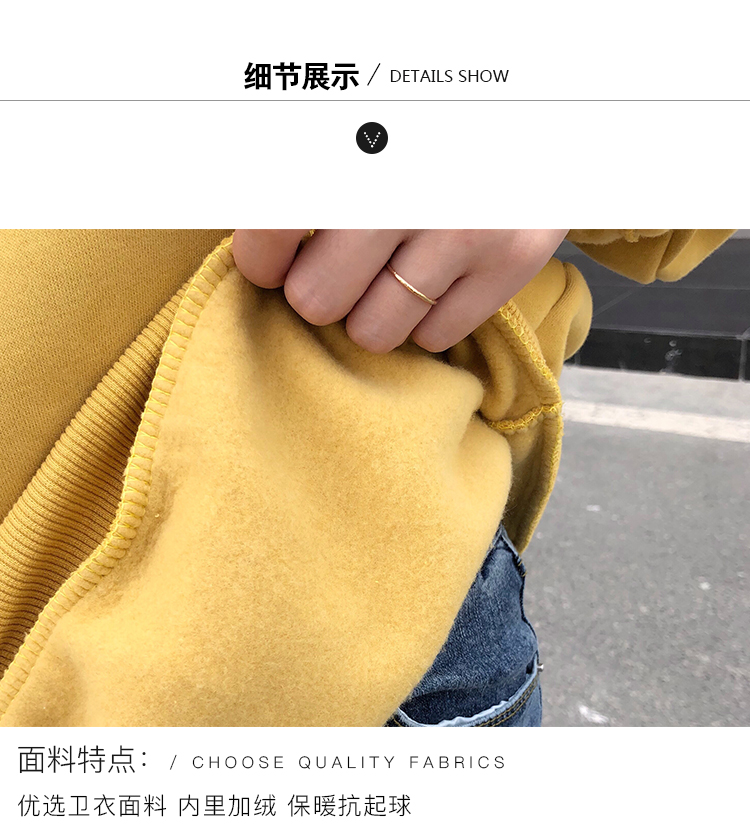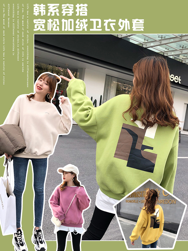 2019秋冬新款寬松韓版加絨加厚衛衣女ins潮短款學生百搭衛衣外套1入
