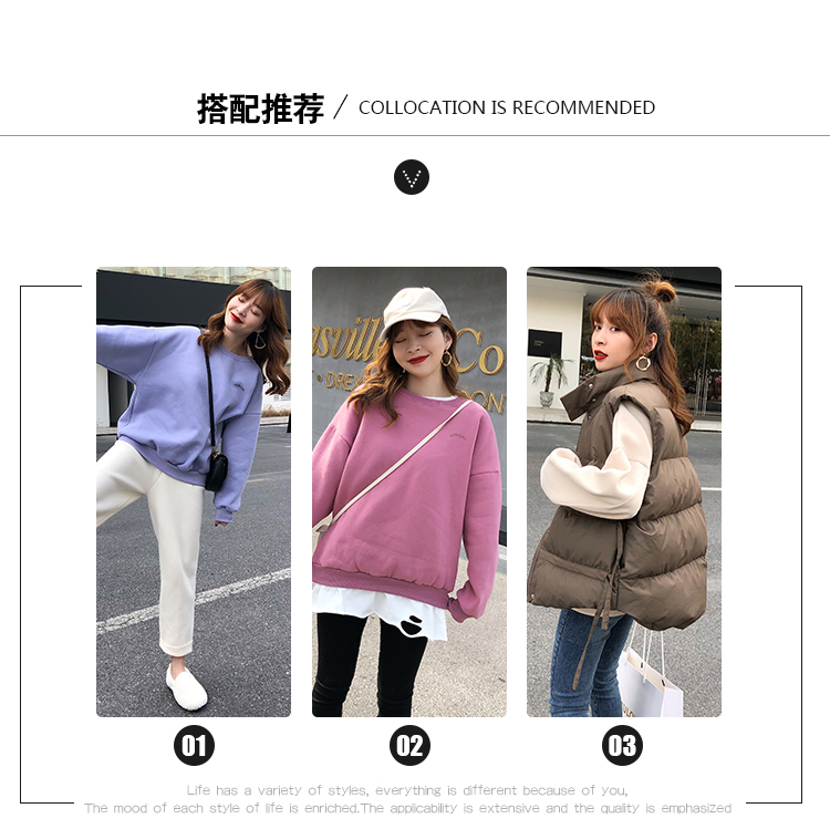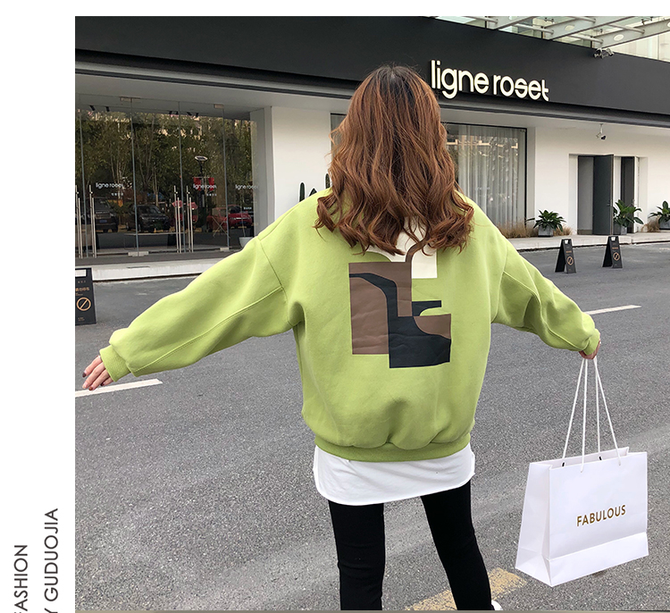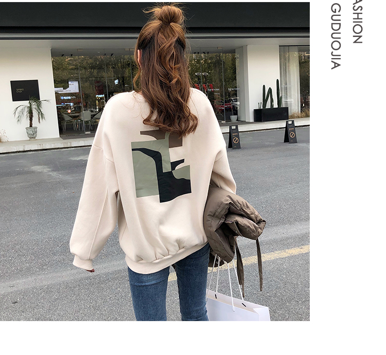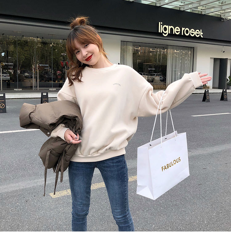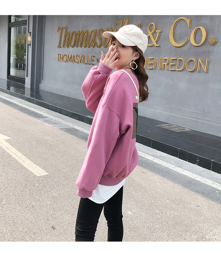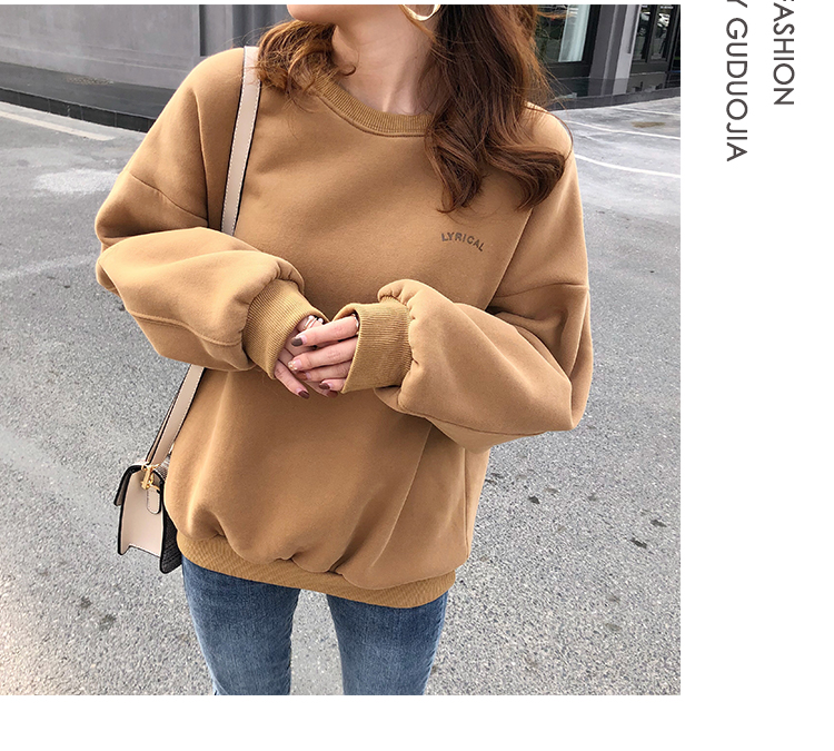 2019秋冬新款寬松韓版加絨加厚衛衣女ins潮短款學生百搭衛衣外套1入