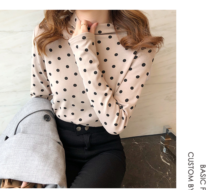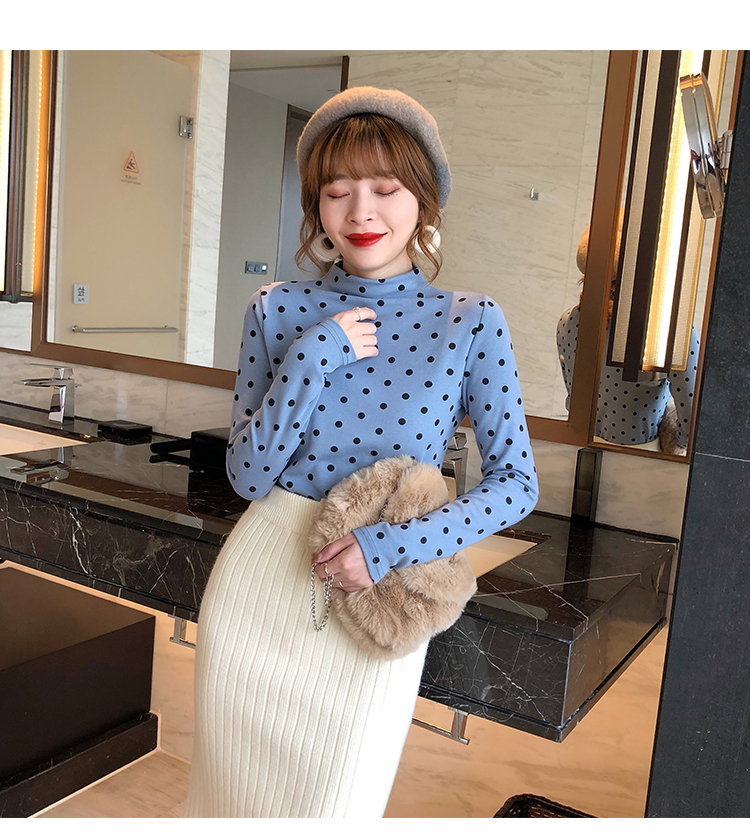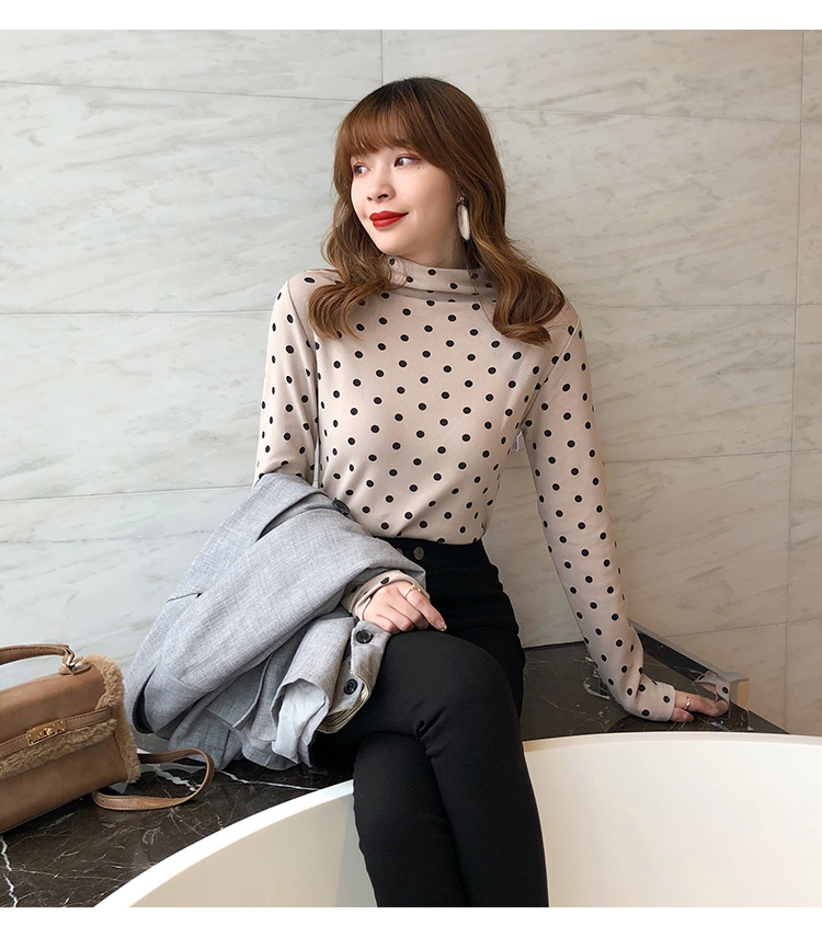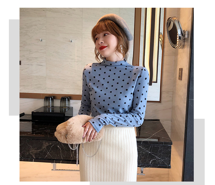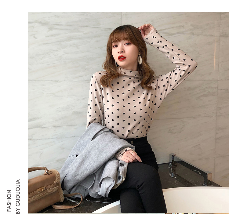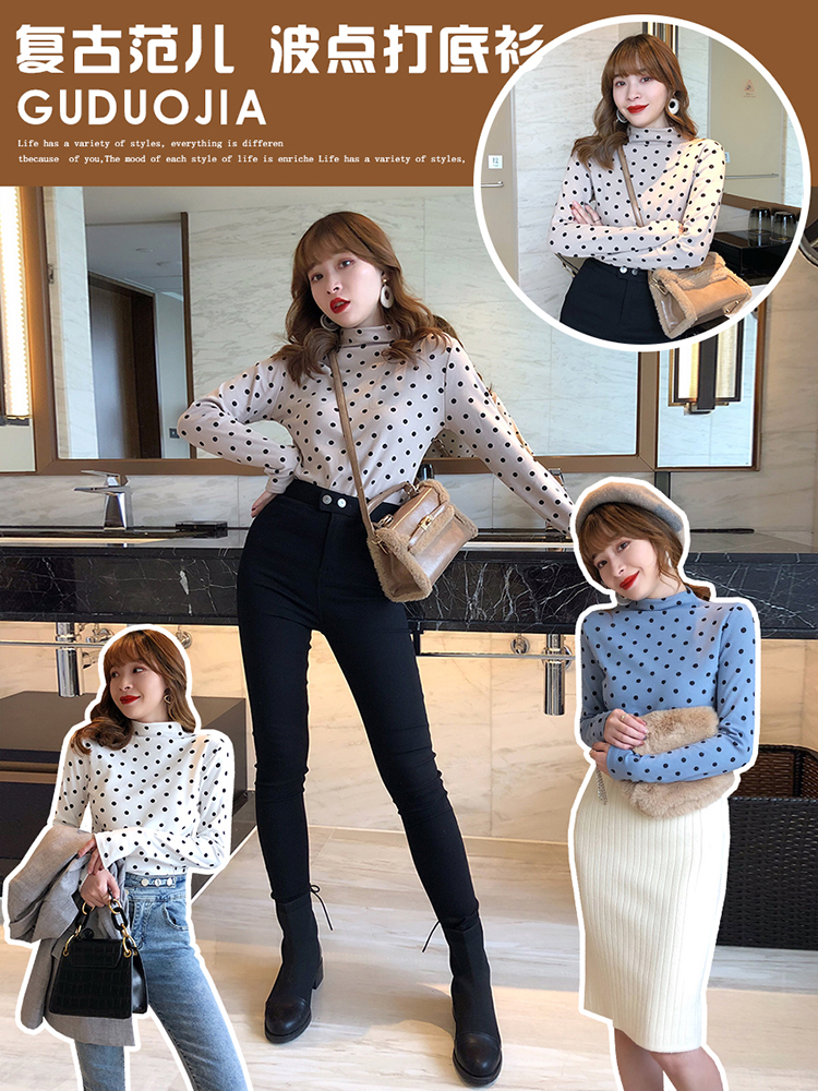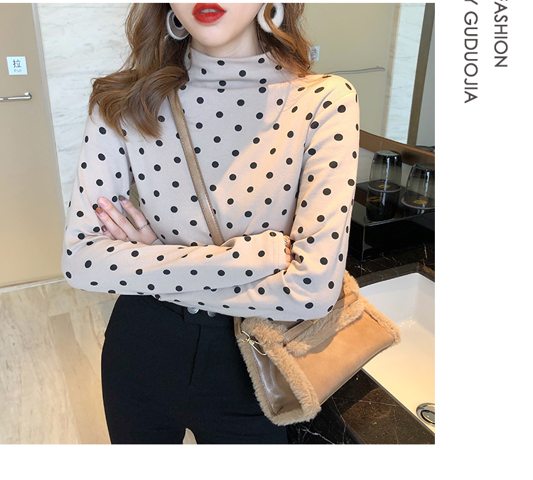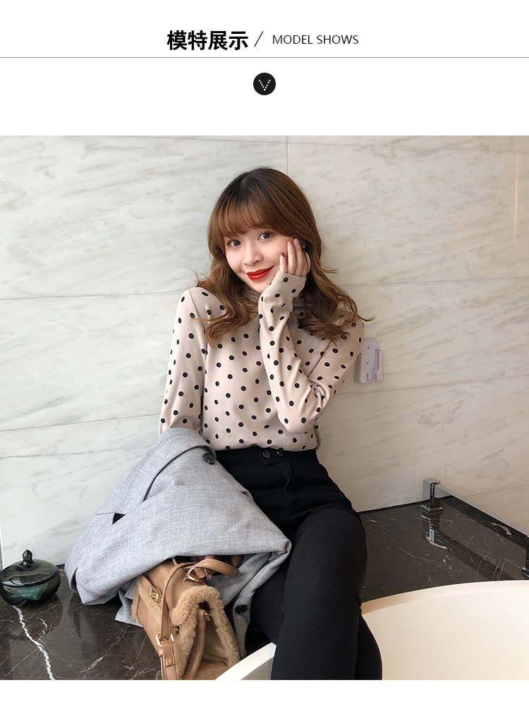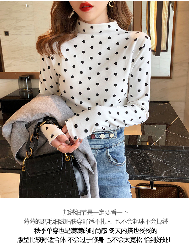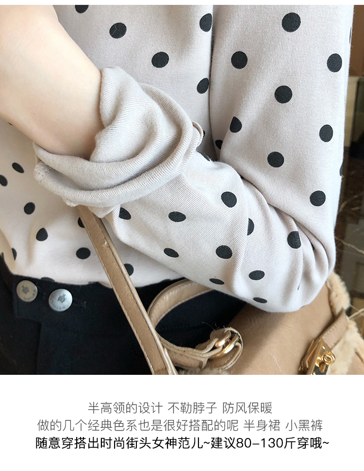 2019秋冬新款韓版半高領加絨波點打底衫洋氣內搭磨毛長袖T恤上衣1入