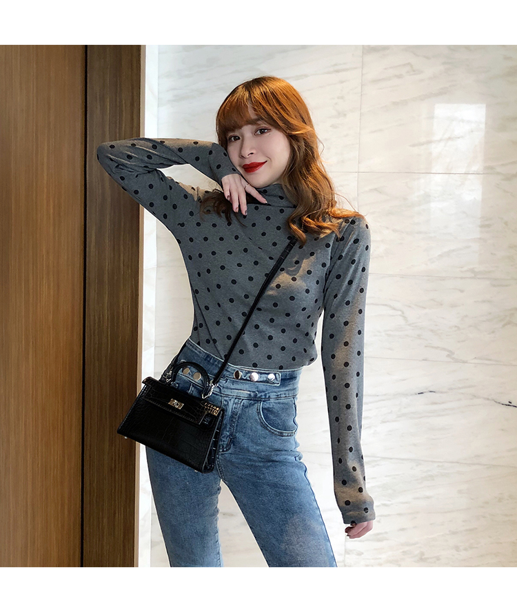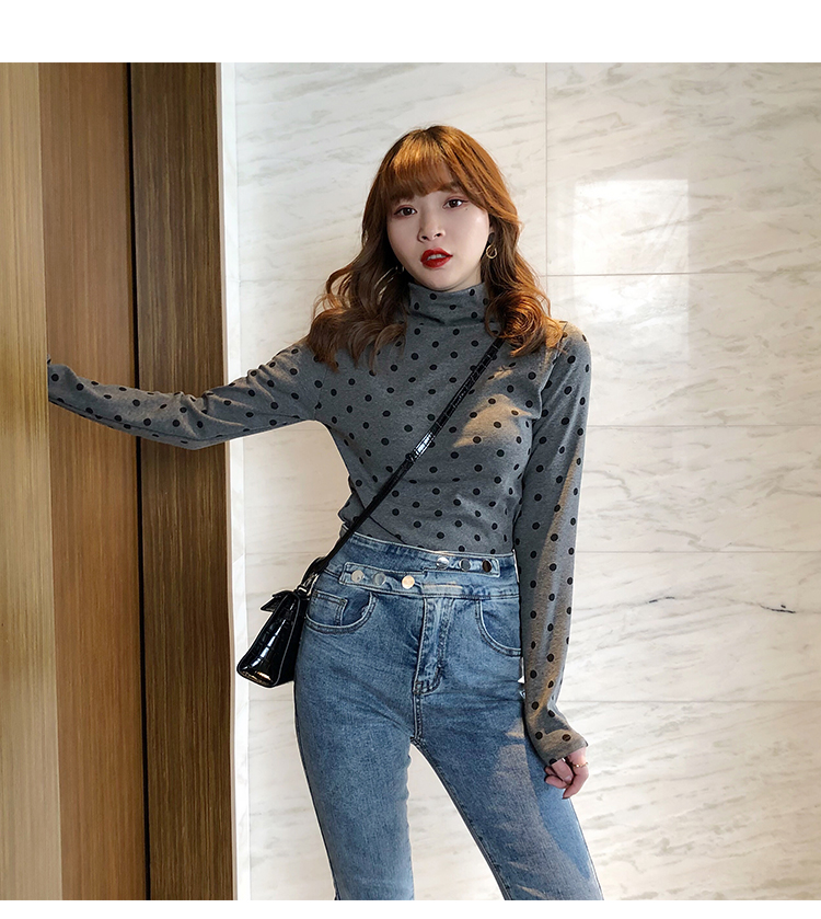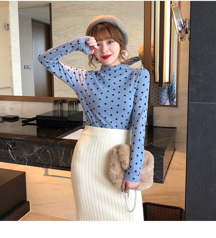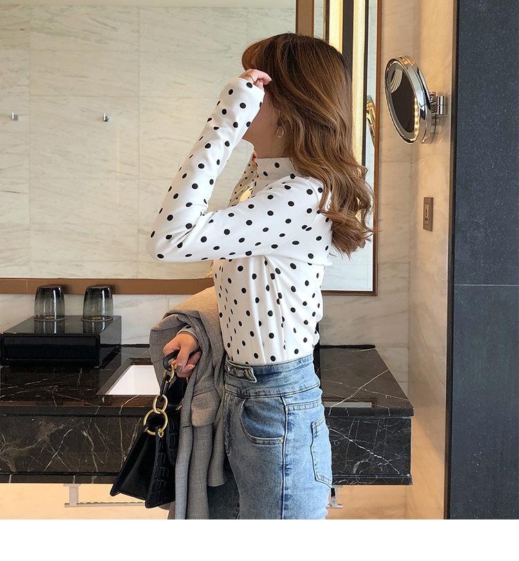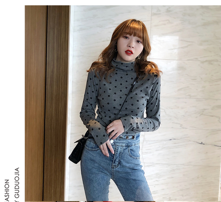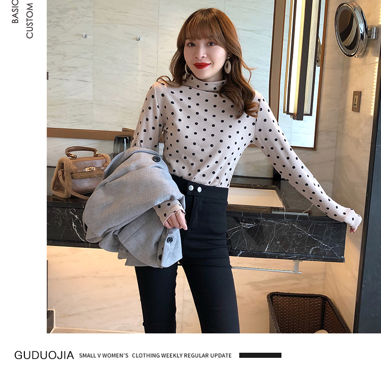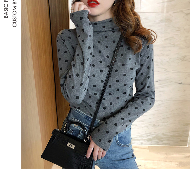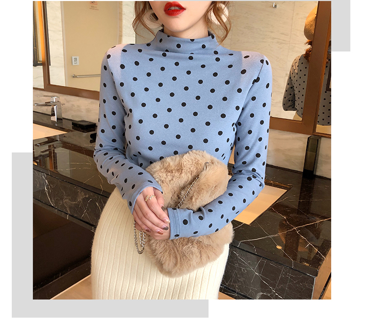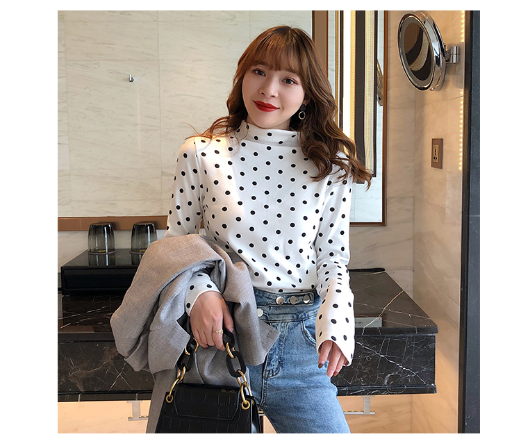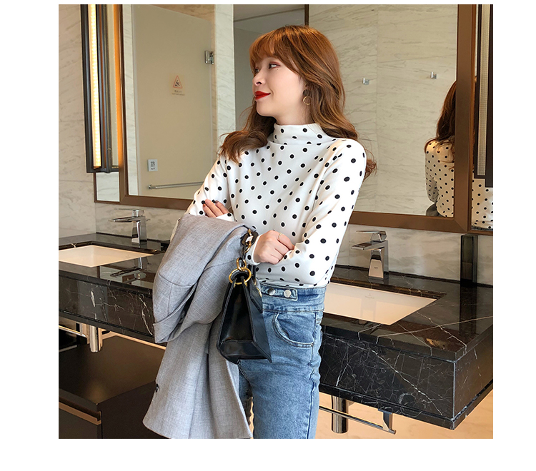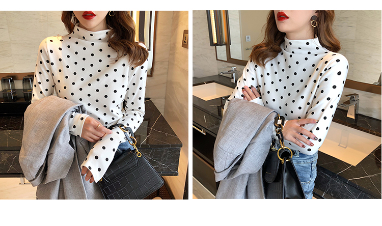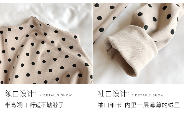2019秋冬新款韓版半高領加絨波點打底衫洋氣內搭磨毛長袖T恤上衣1入