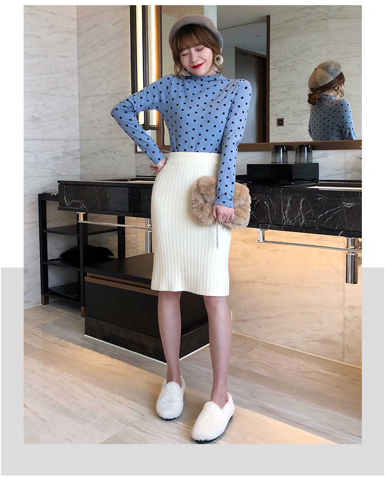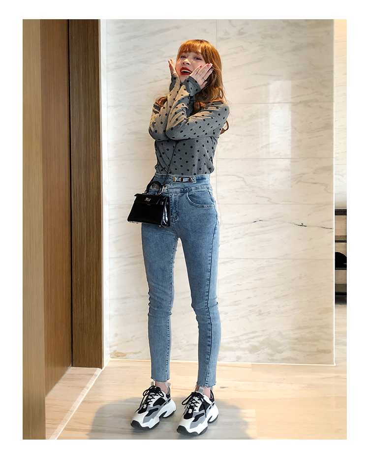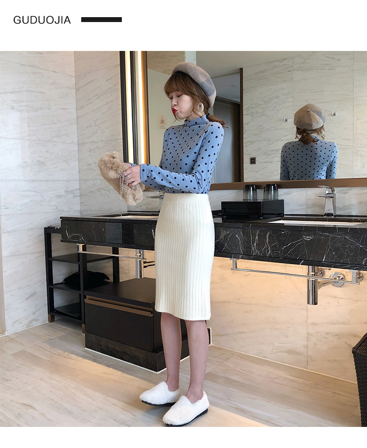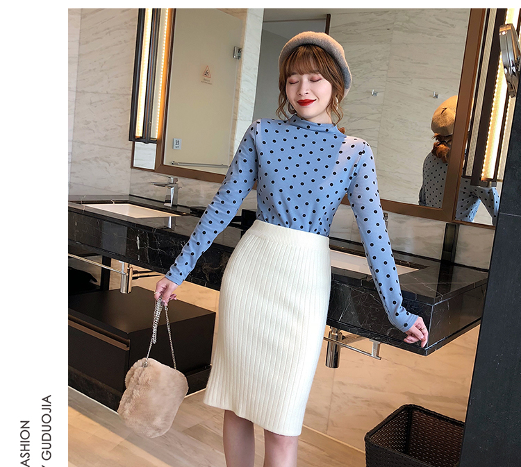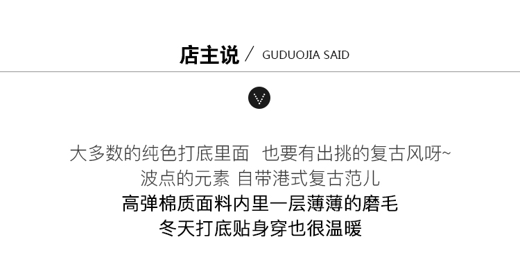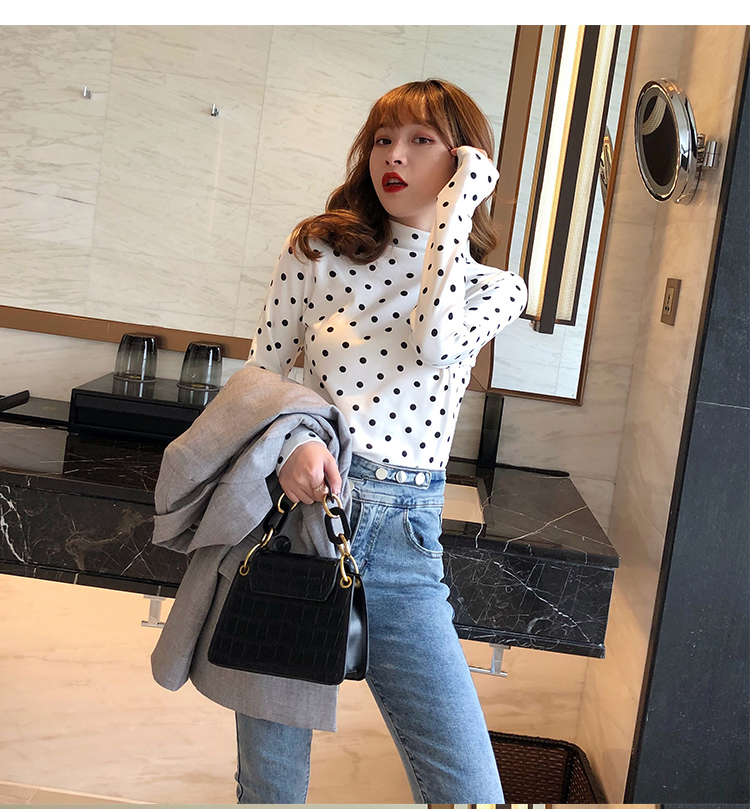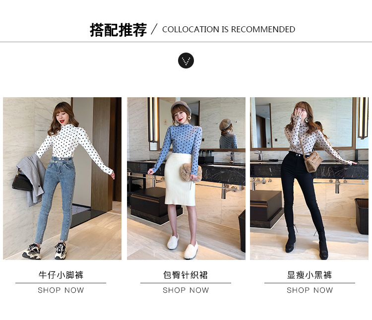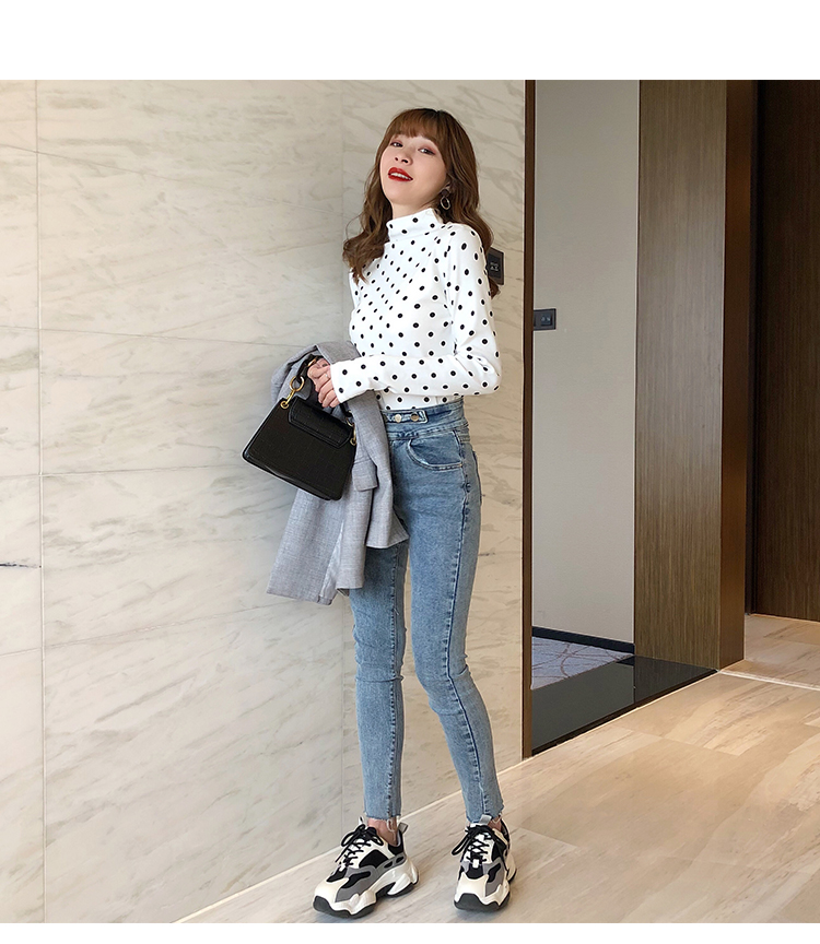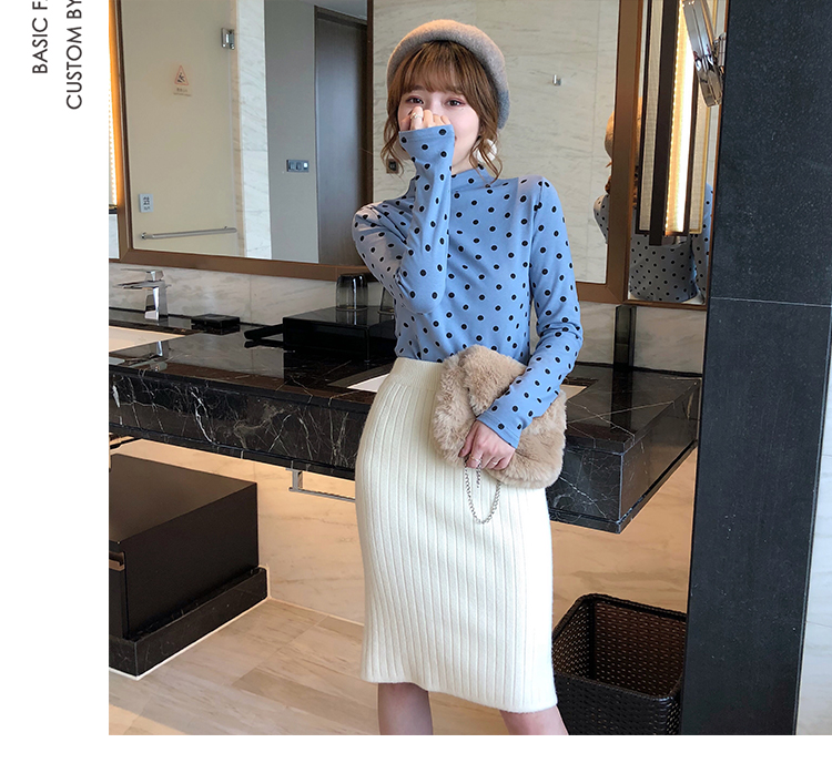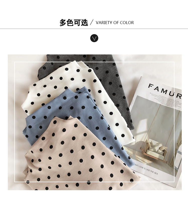 2019秋冬新款韓版半高領加絨波點打底衫洋氣內搭磨毛長袖T恤上衣1入