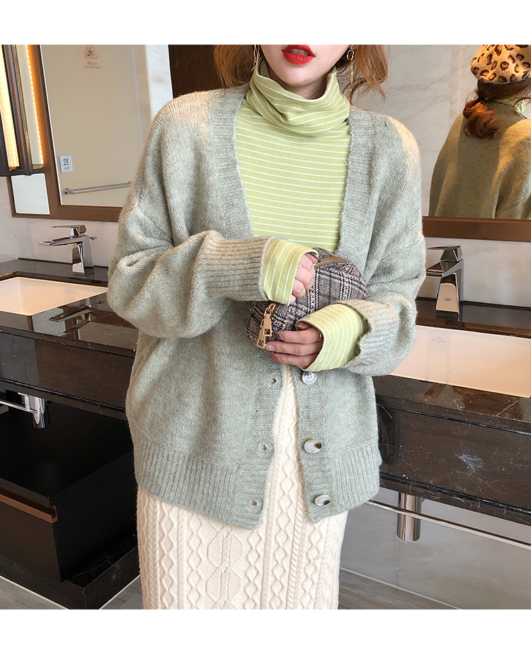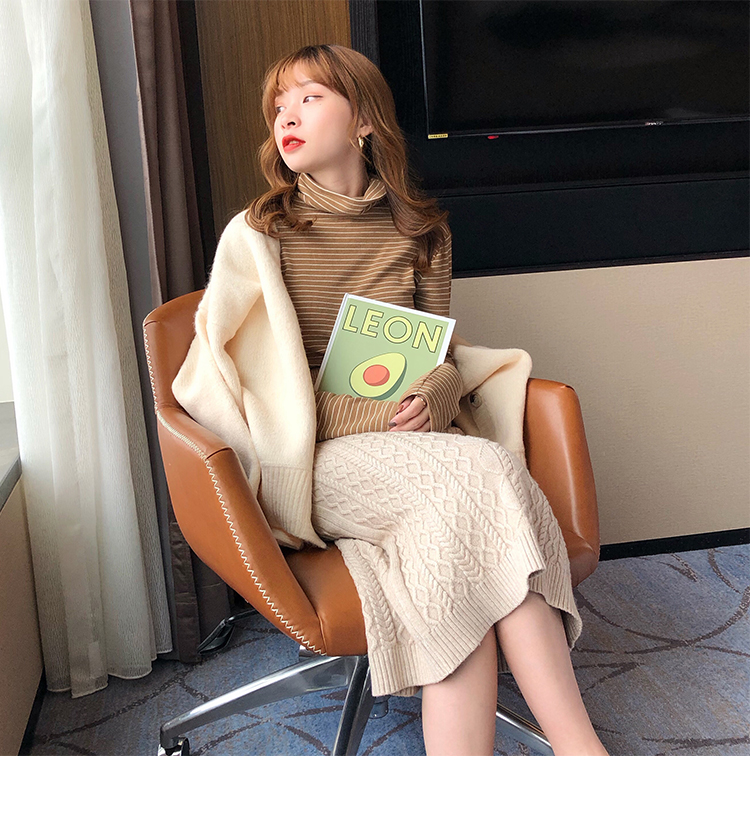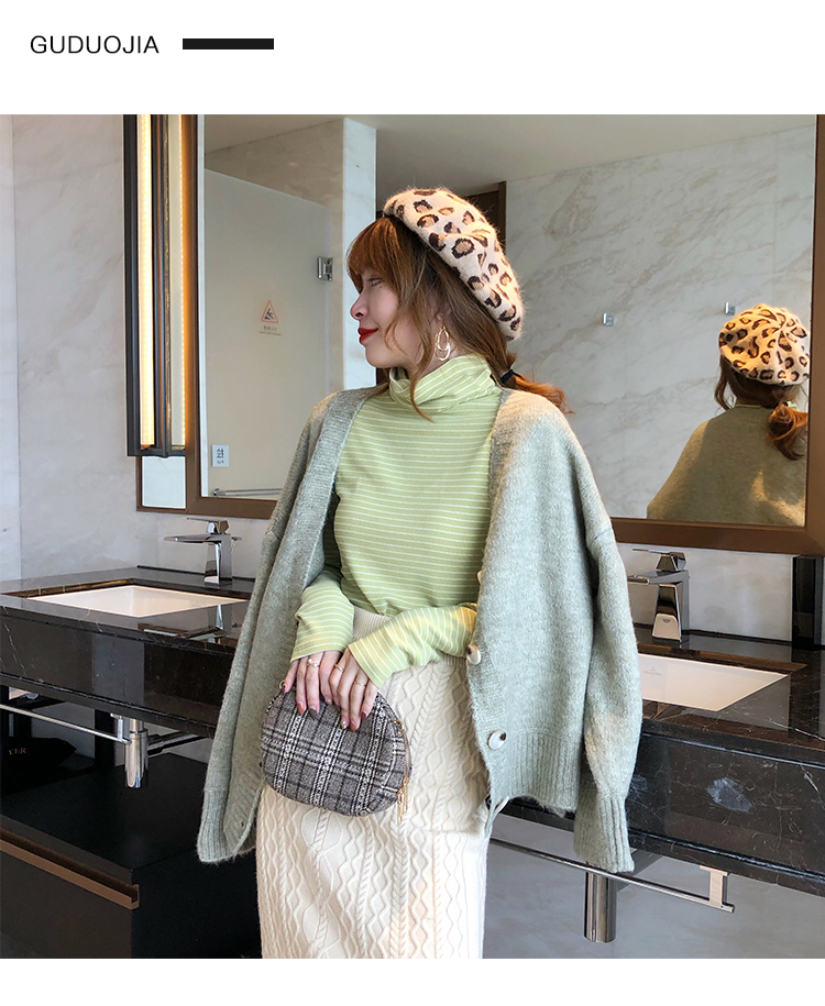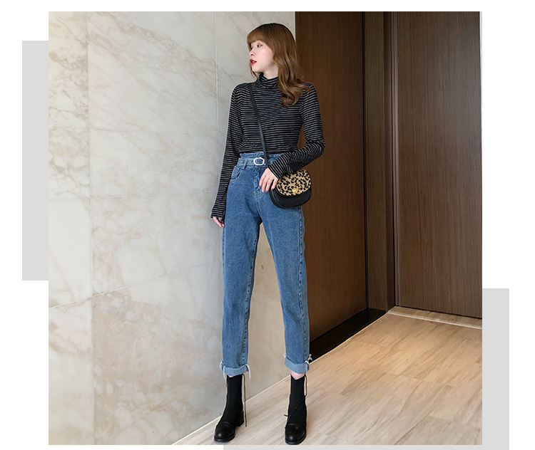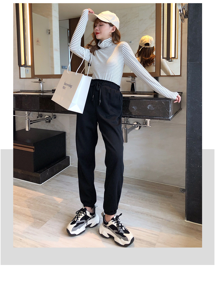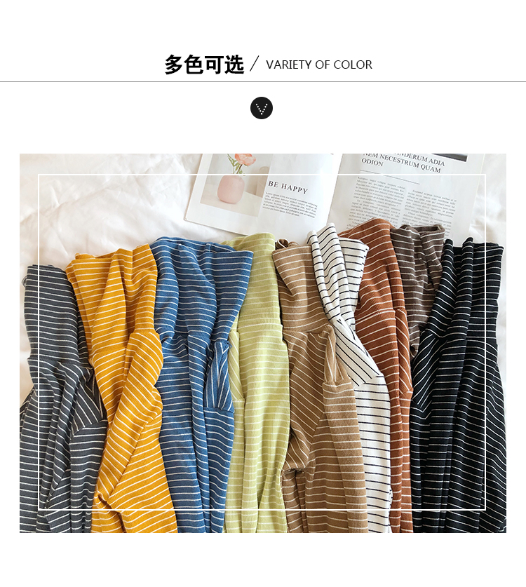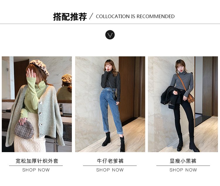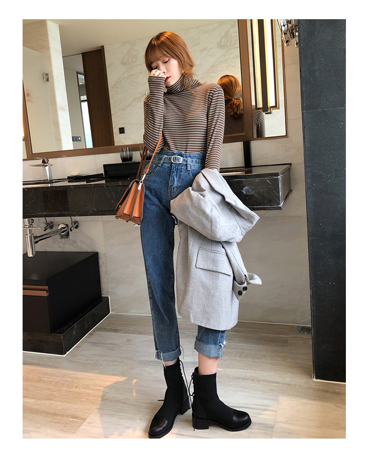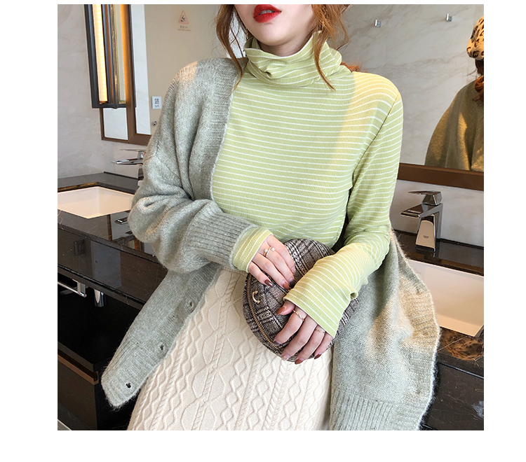 2019秋冬新款韓版條紋長袖T恤女洋氣堆堆領打底衫高領內搭上衣潮1入