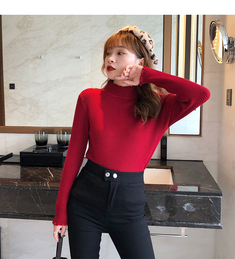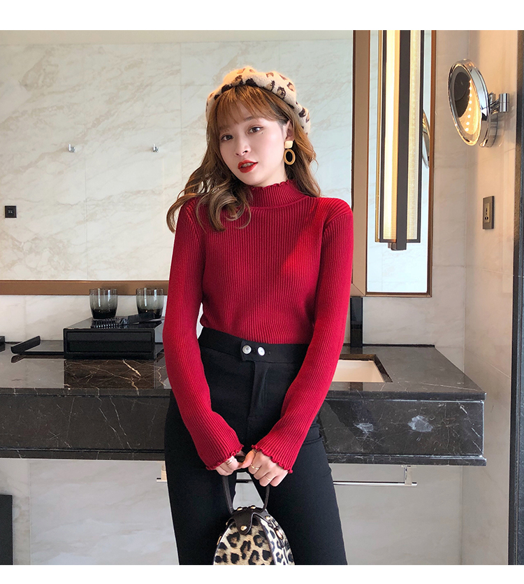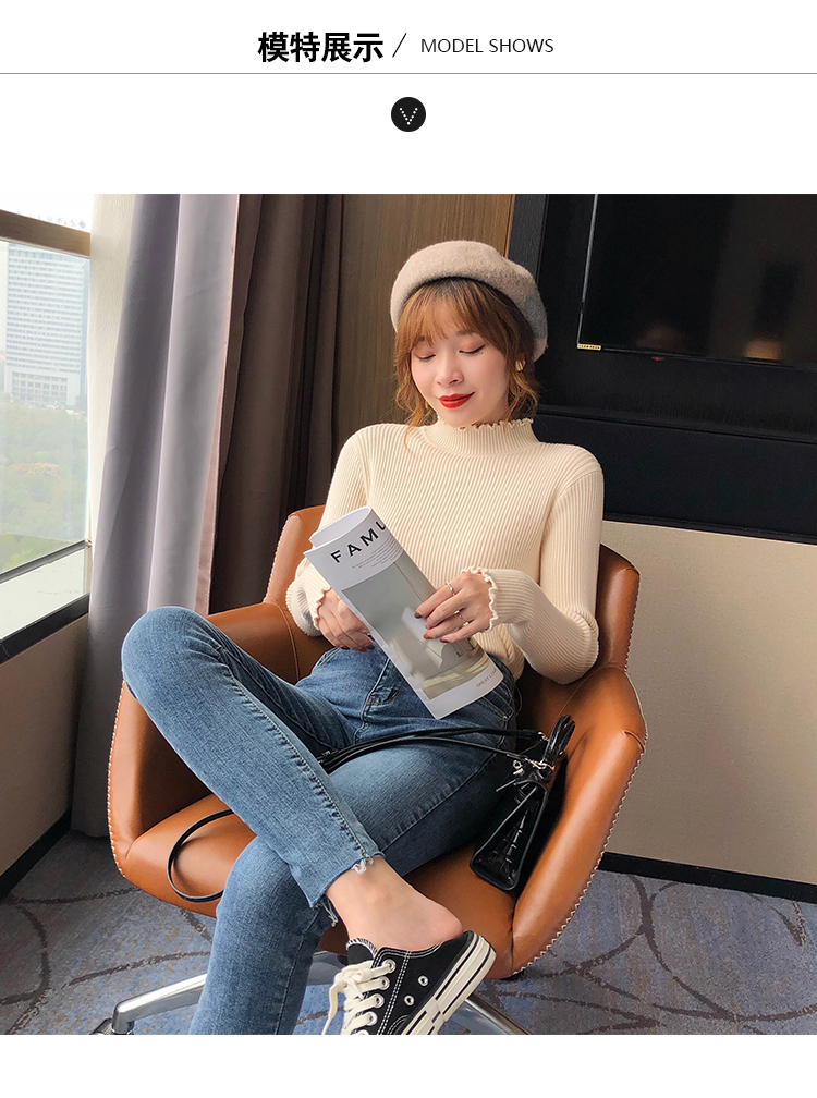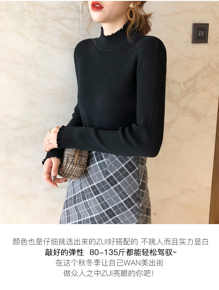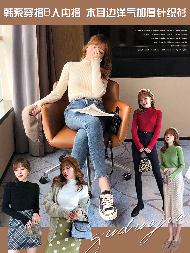 2019秋冬季新款套頭內搭打底針織衫女加厚寬松外穿毛衣洋氣打底衫1入