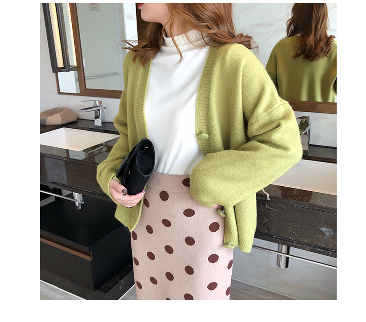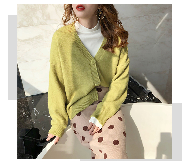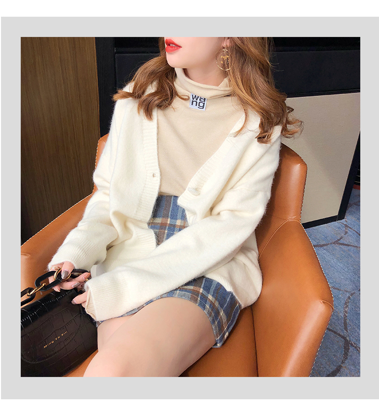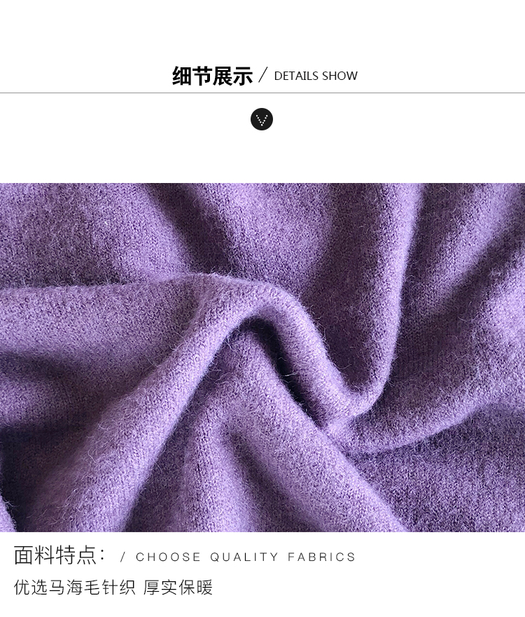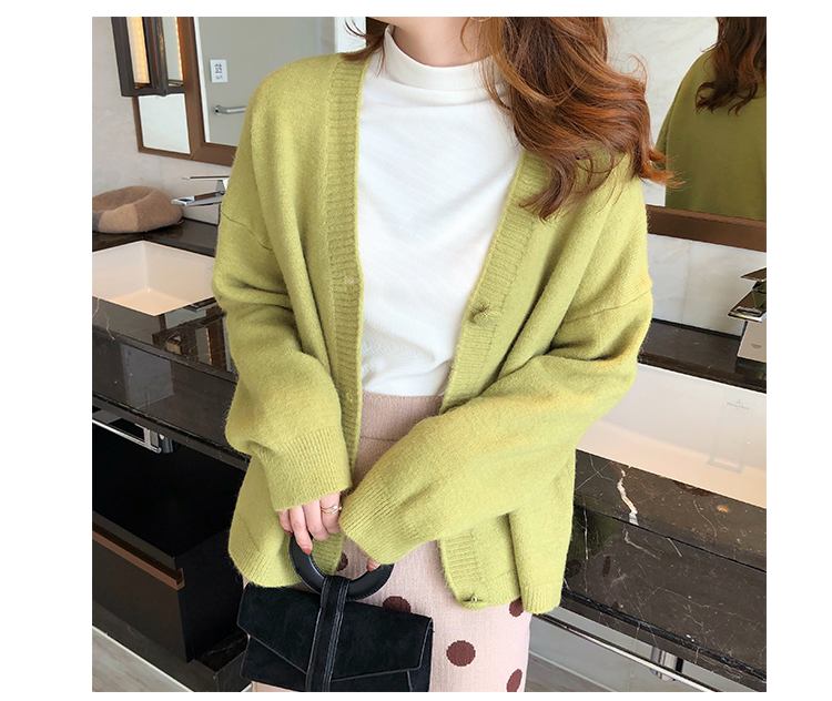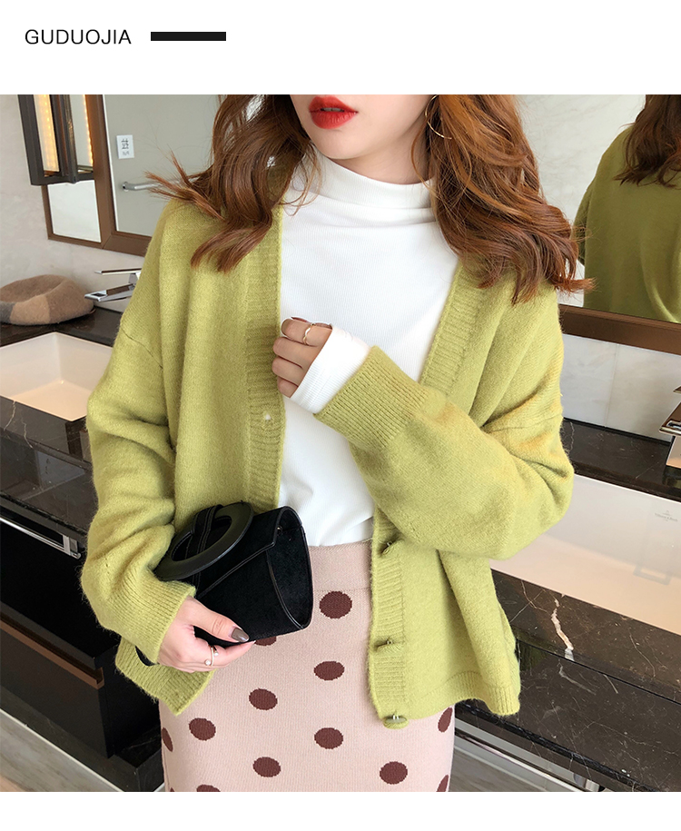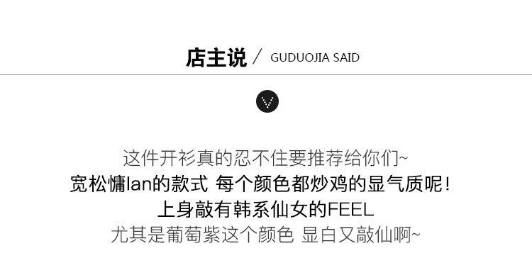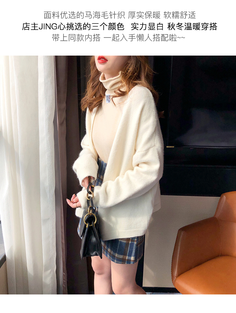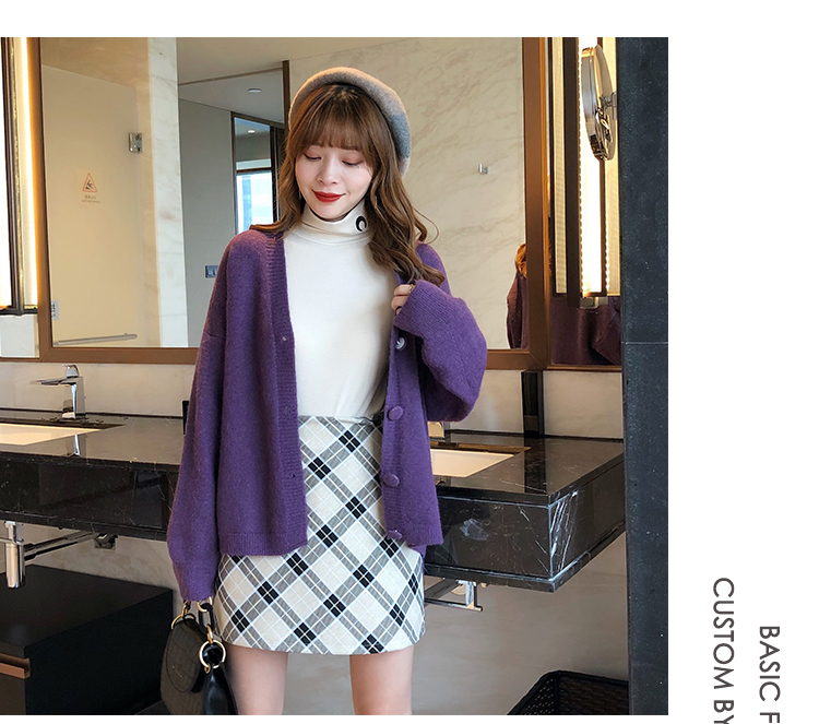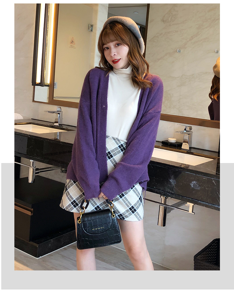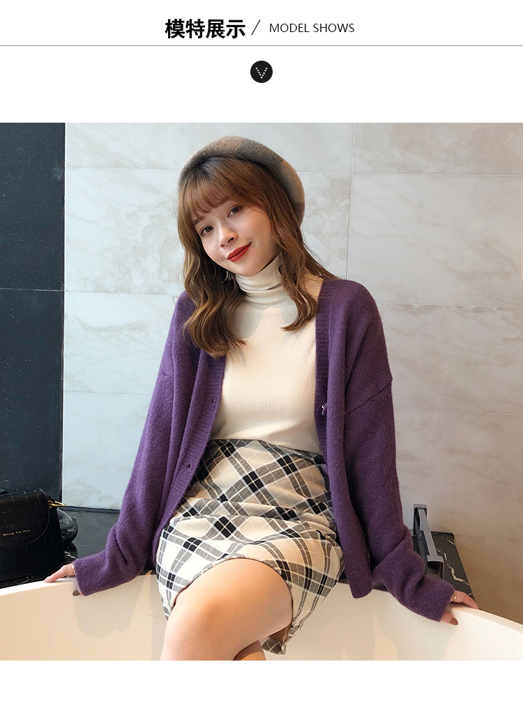 2019秋冬新款寬松外穿針織開衫外套女網紅紫色毛衣V領加厚針織衫1入