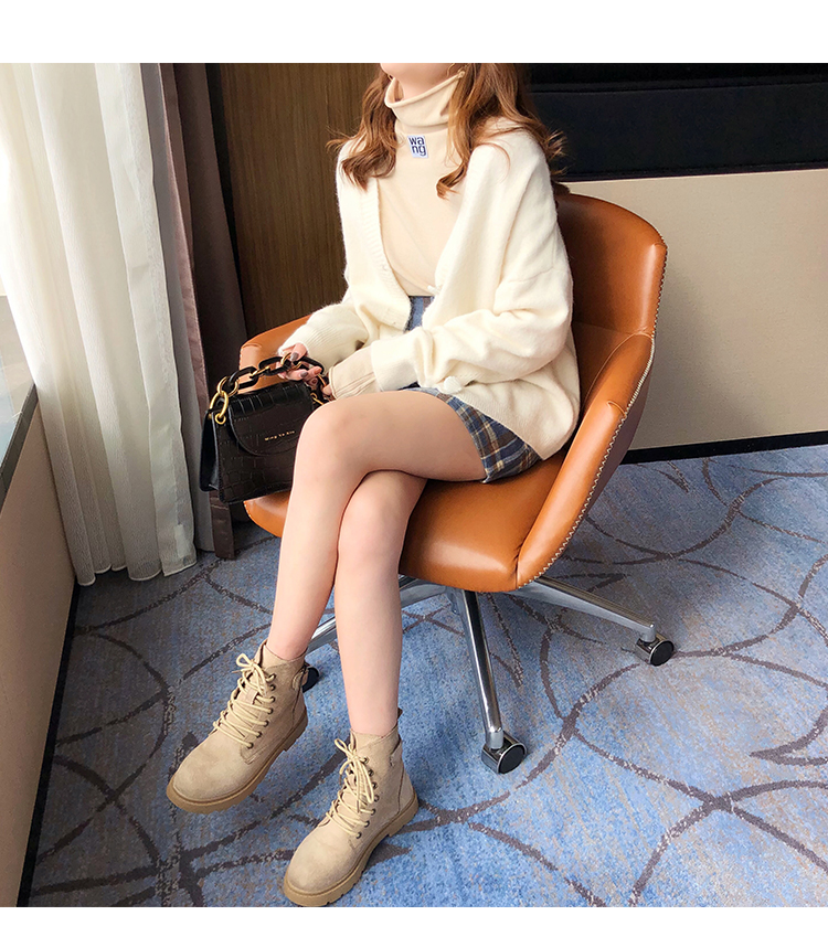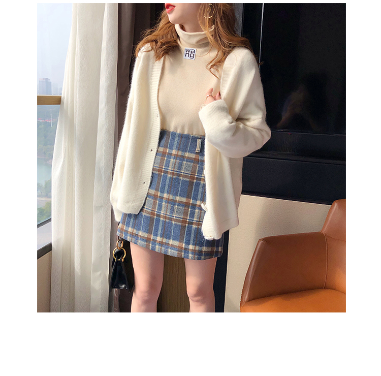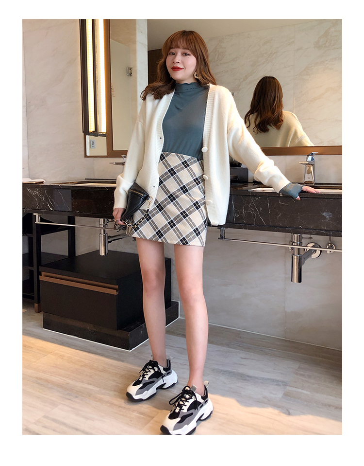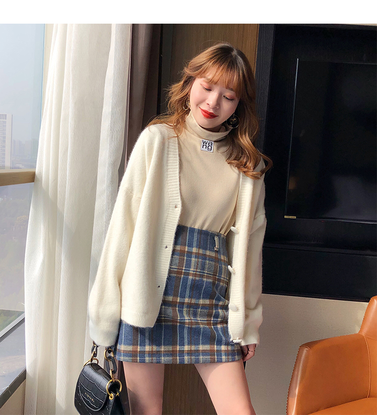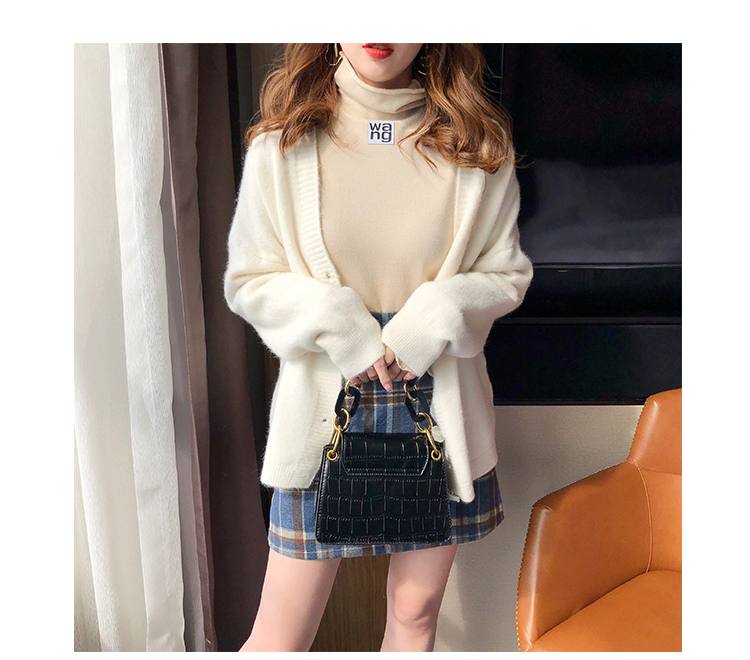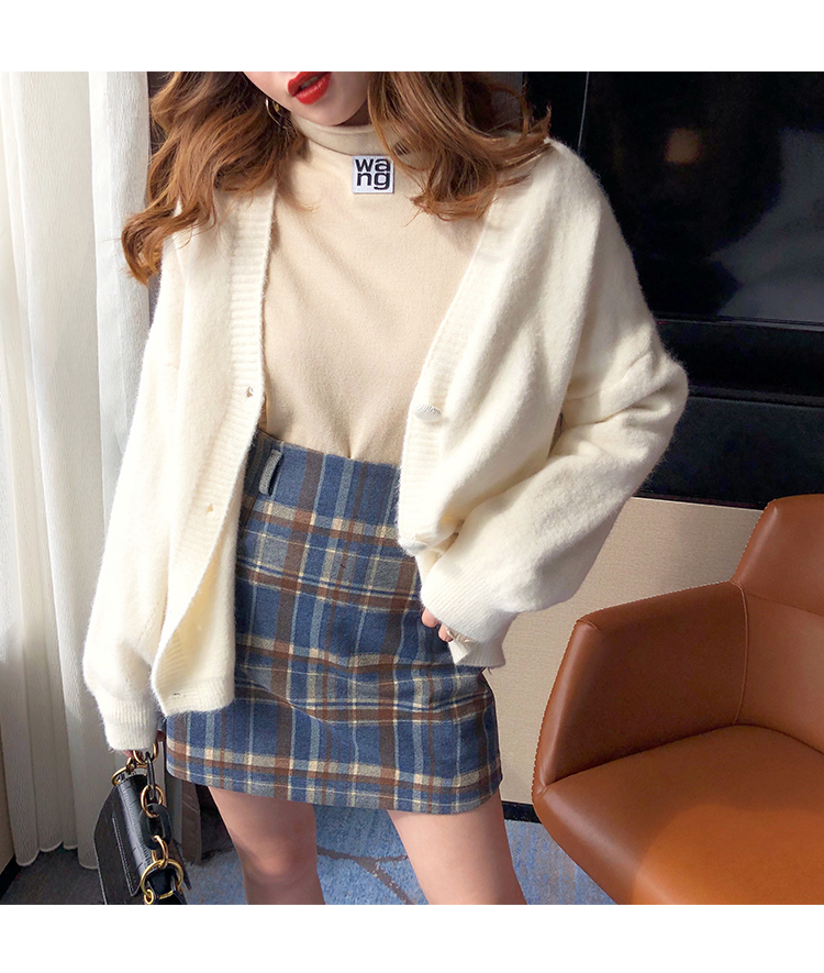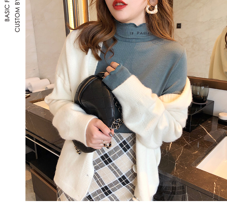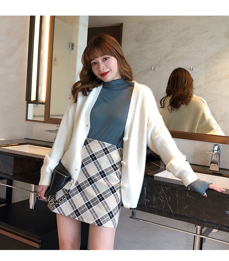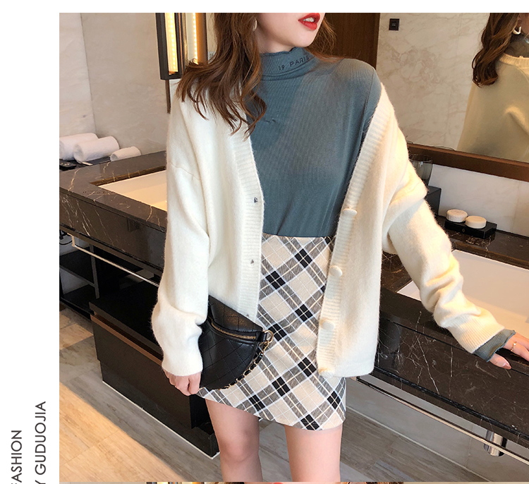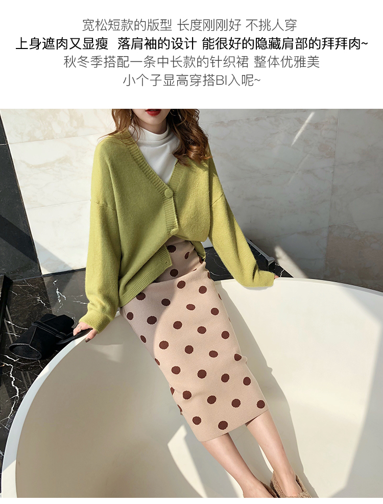 2019秋冬新款寬松外穿針織開衫外套女網紅紫色毛衣V領加厚針織衫1入