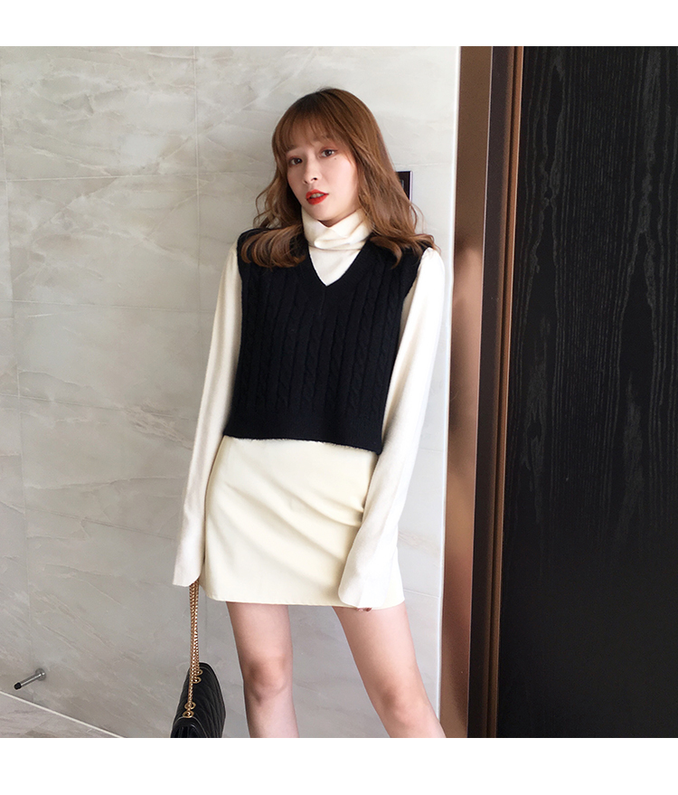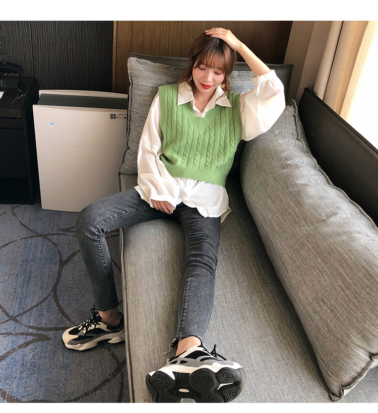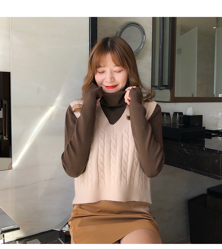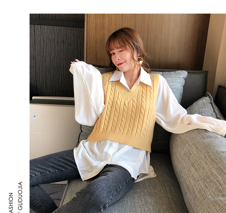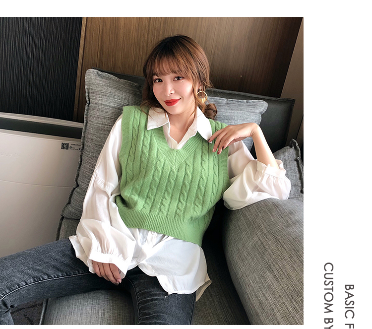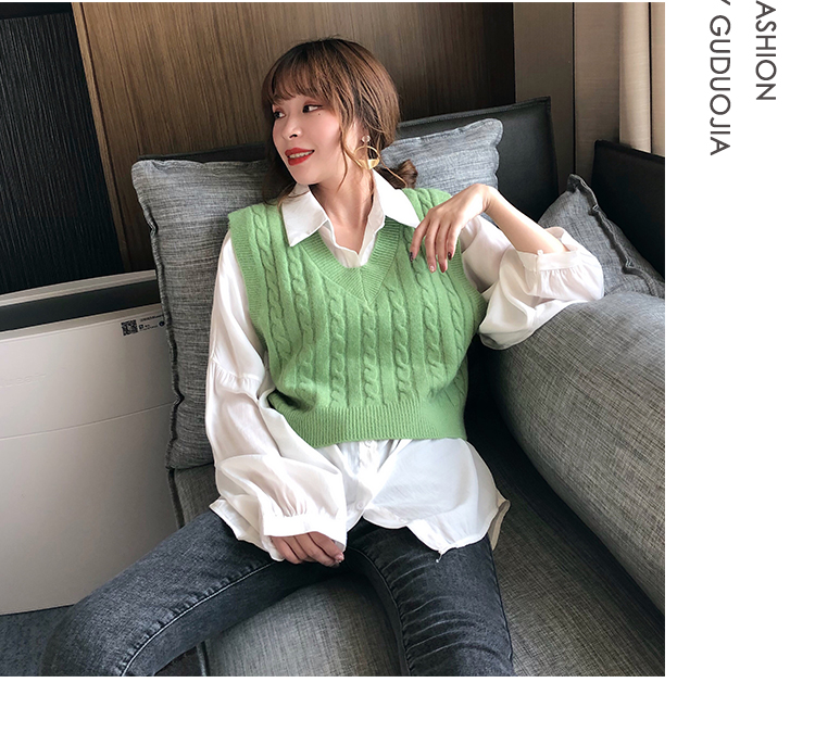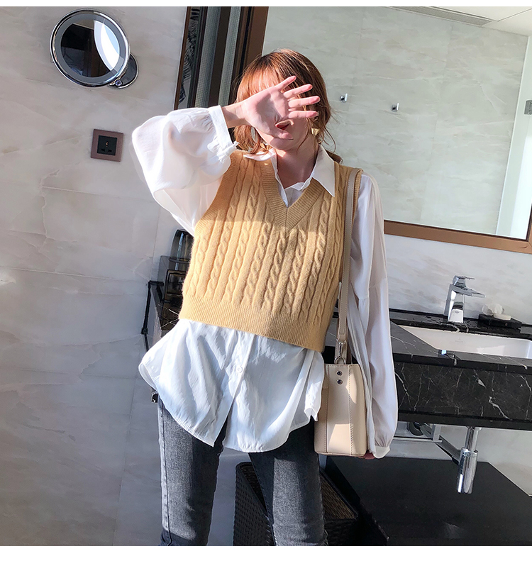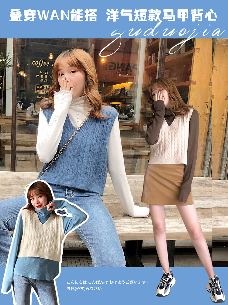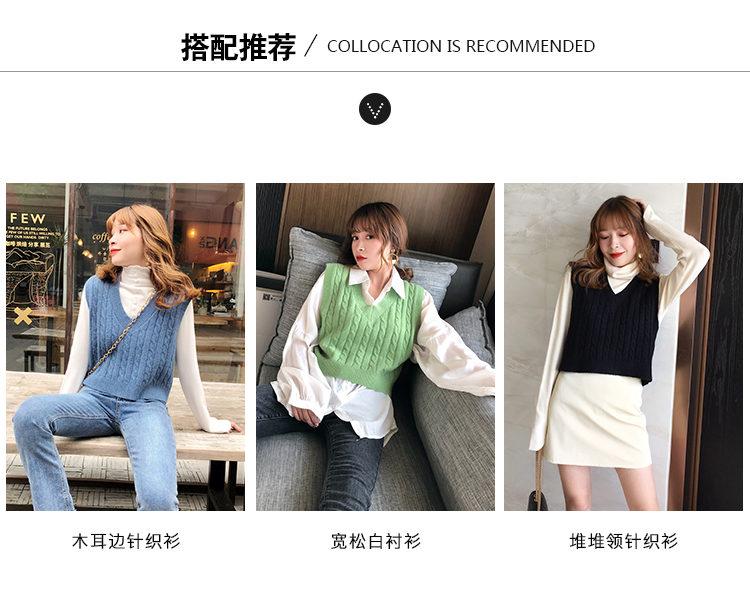 2019秋冬新款洋氣寬松短款針織馬甲背心女外穿百搭毛衣馬夾外套潮1入