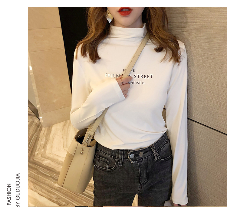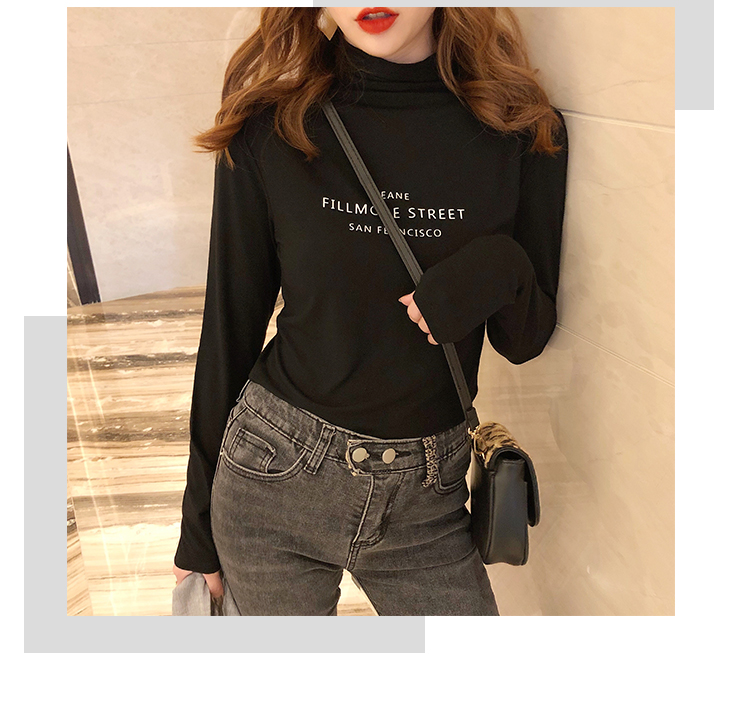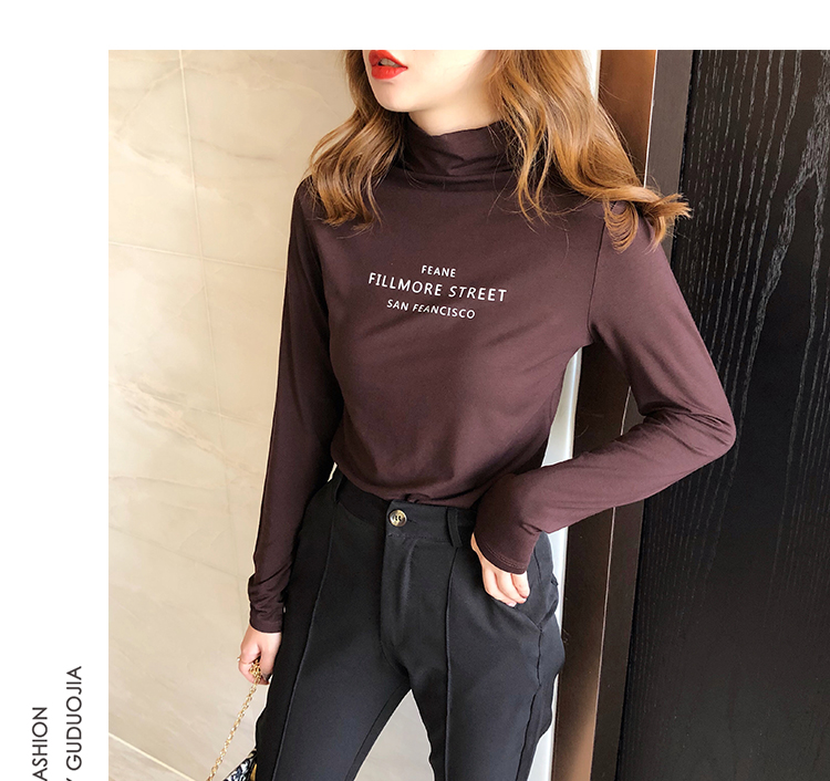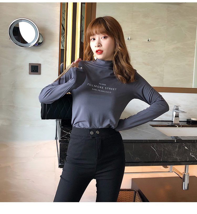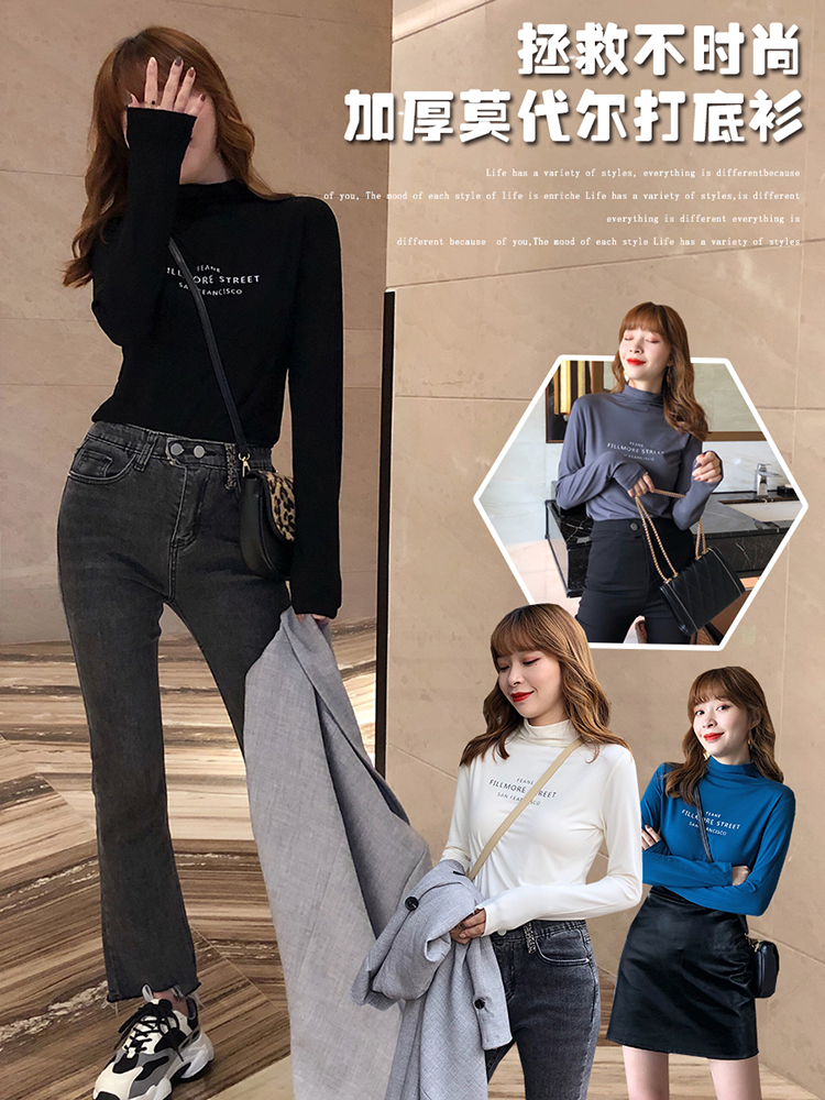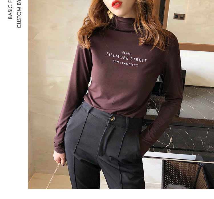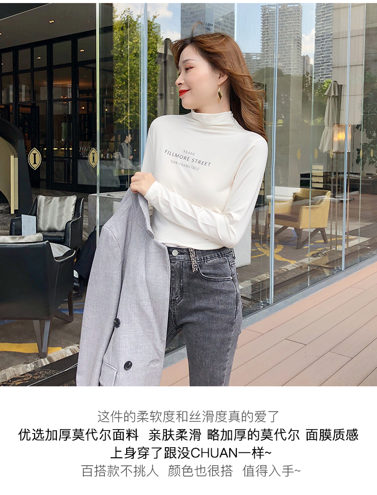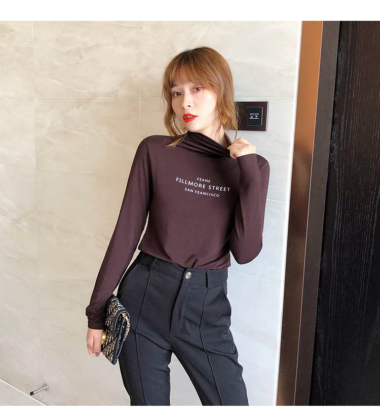 2019秋冬新款半高領打底衫女洋氣內搭長袖T恤莫代爾堆堆領上衣潮1入