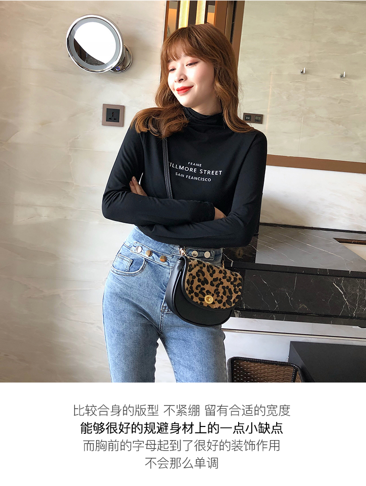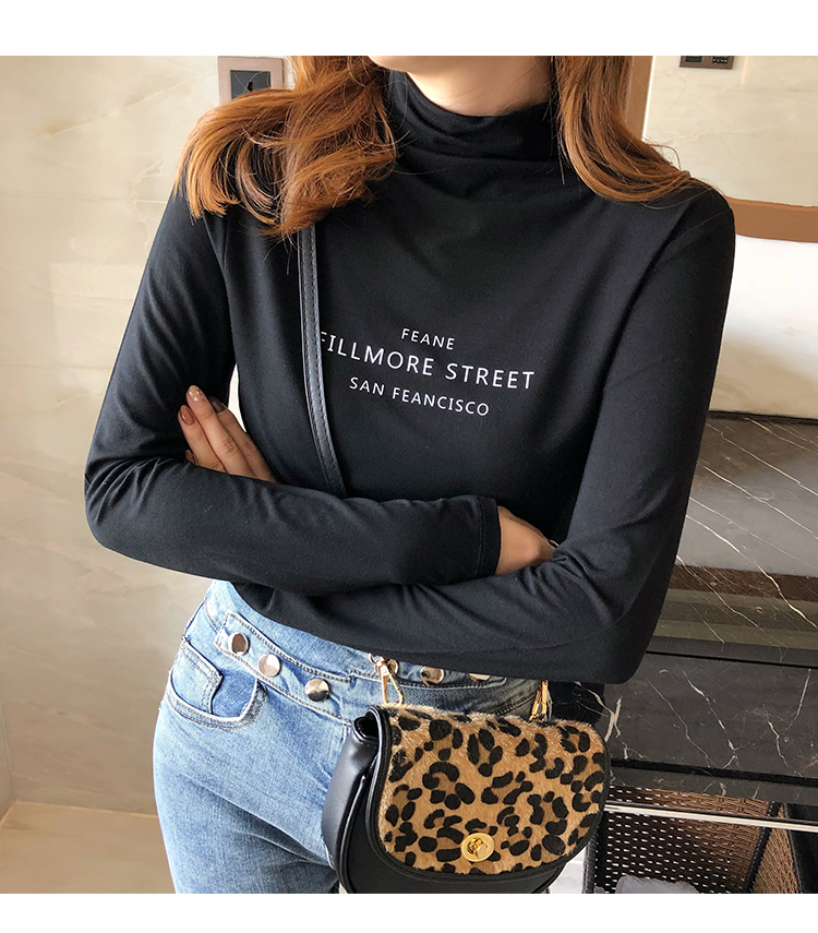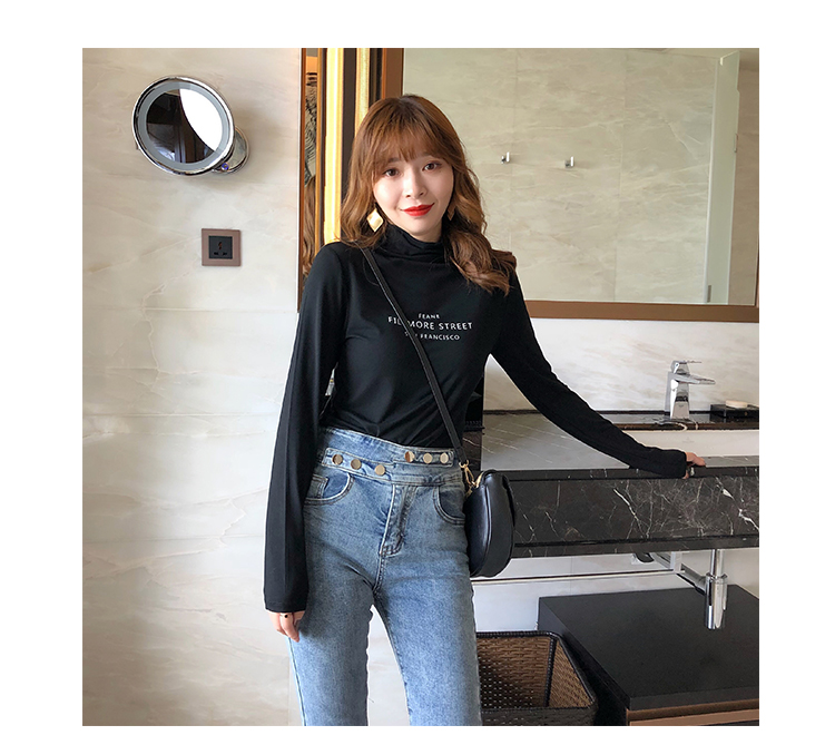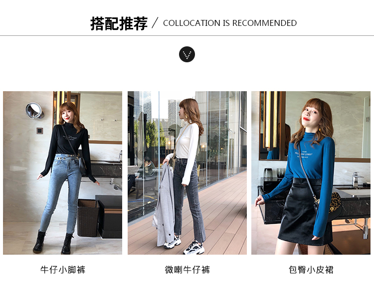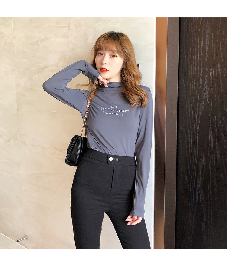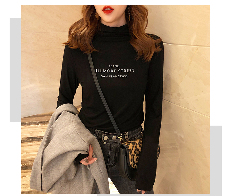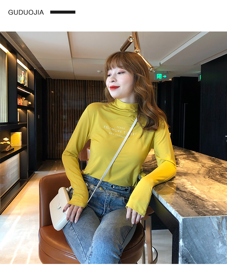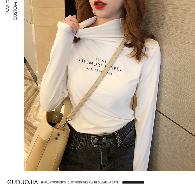2019秋冬新款半高領打底衫女洋氣內搭長袖T恤莫代爾堆堆領上衣潮1入