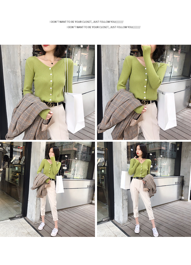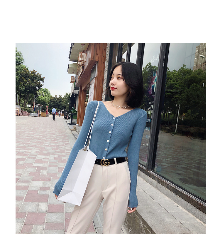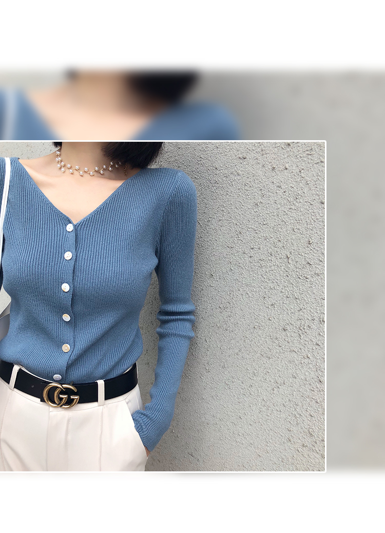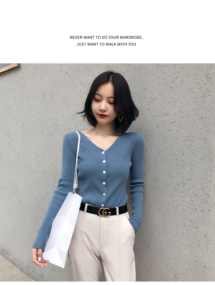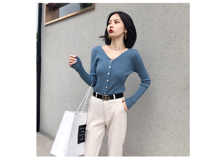 2019春秋新款軟奶藍毛衣女寬松長袖上衣秋冬打底衫外穿針織開衫潮1入