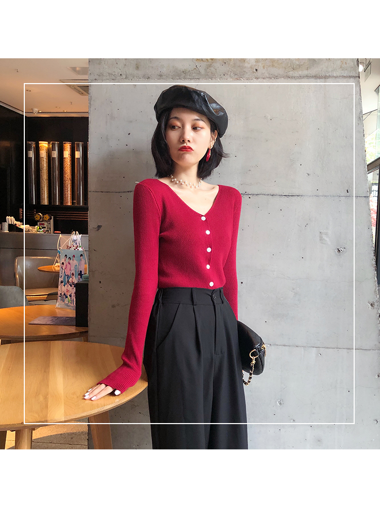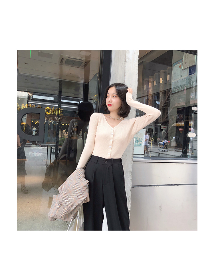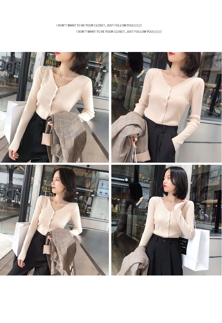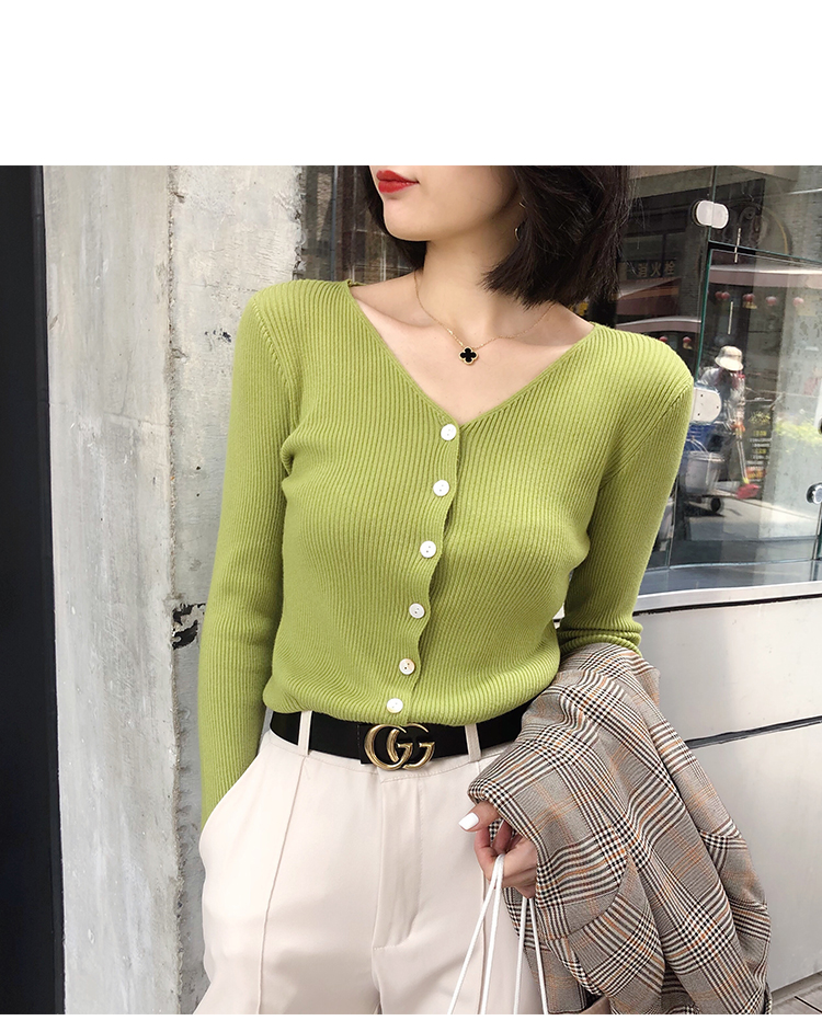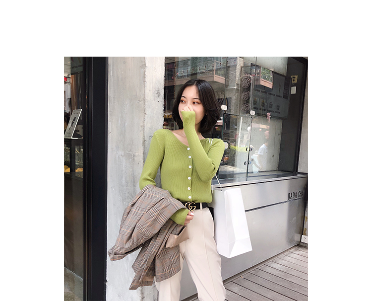 2019春秋新款軟奶藍毛衣女寬松長袖上衣秋冬打底衫外穿針織開衫潮1入