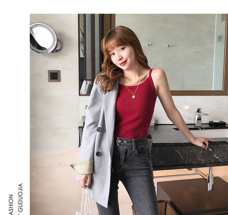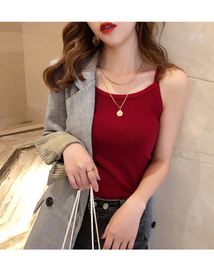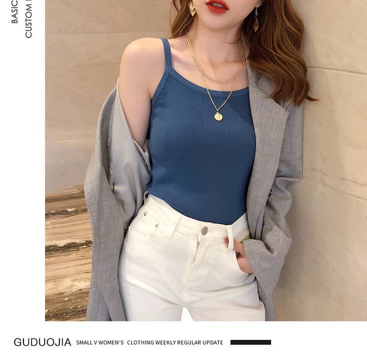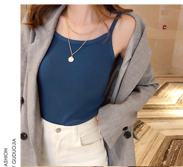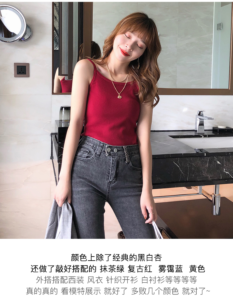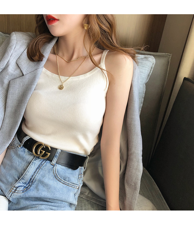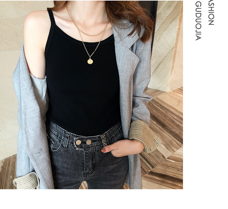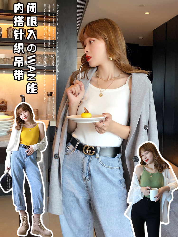 2019秋季新款外穿加厚針織吊帶女百搭韓版西裝內搭無袖打底小背心1入
