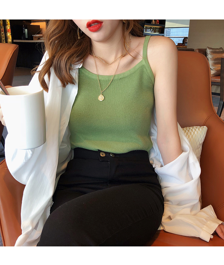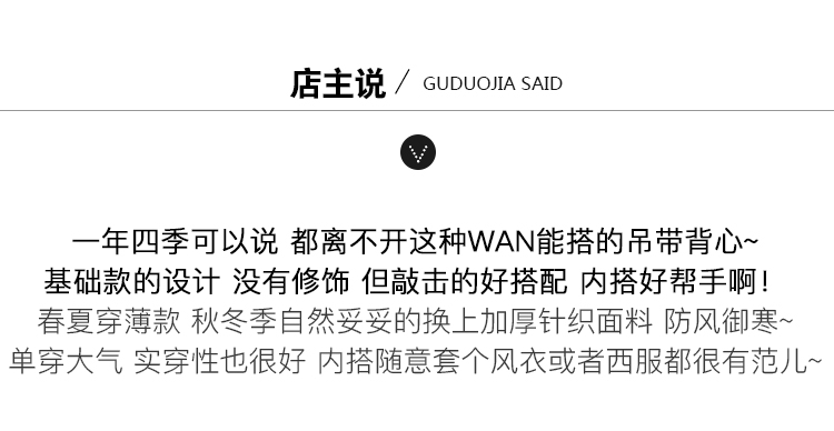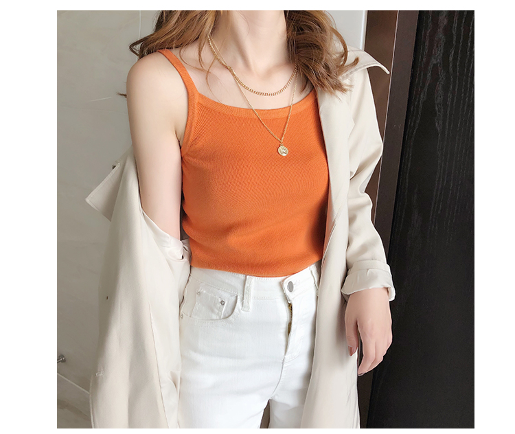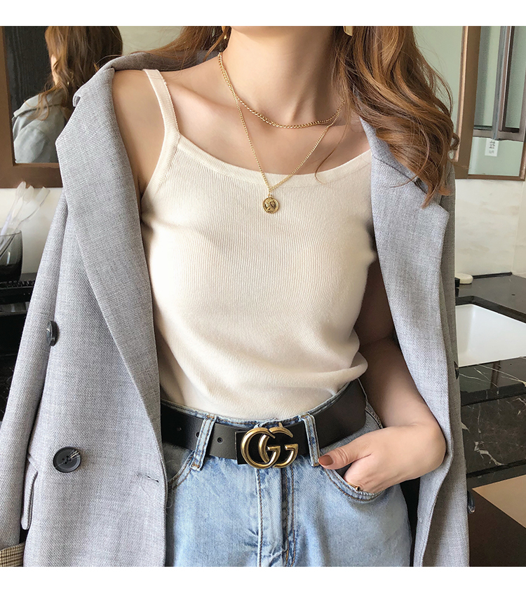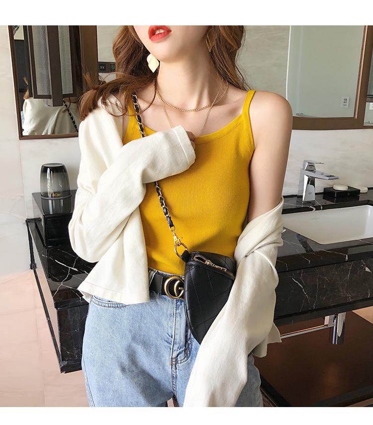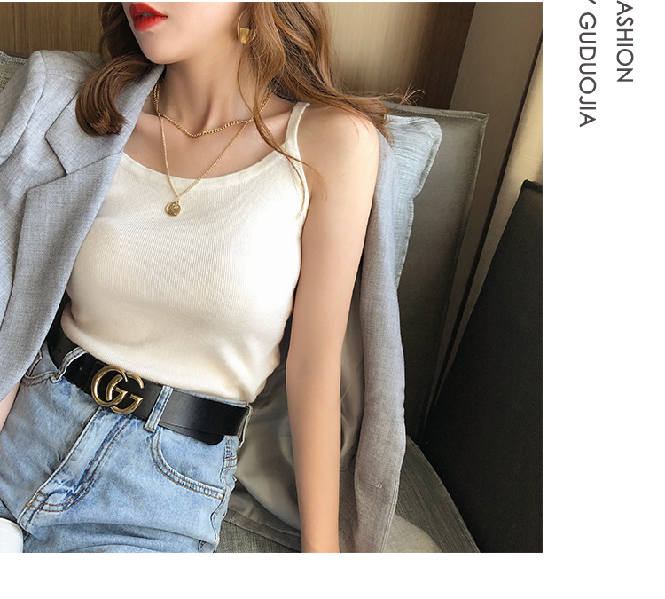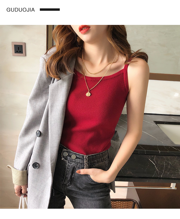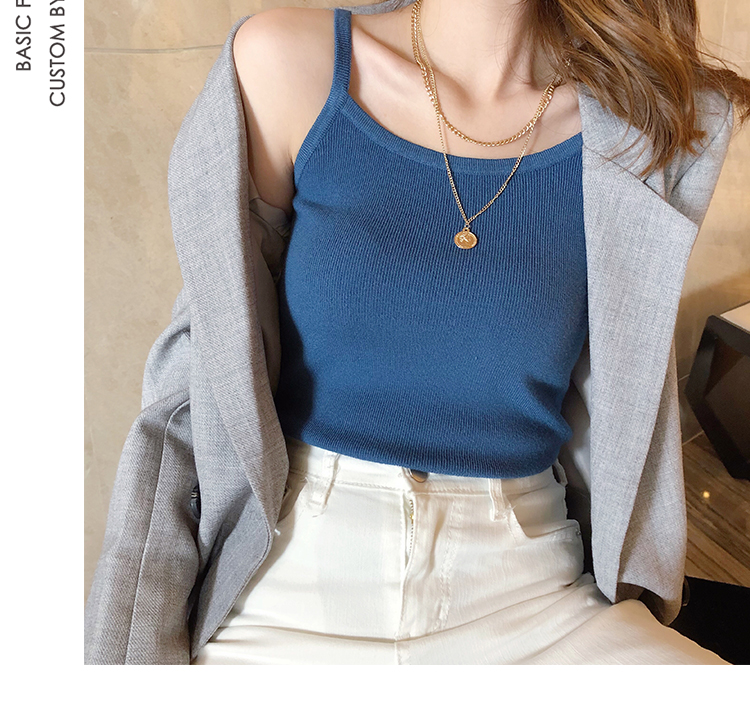 2019秋季新款外穿加厚針織吊帶女百搭韓版西裝內搭無袖打底小背心1入