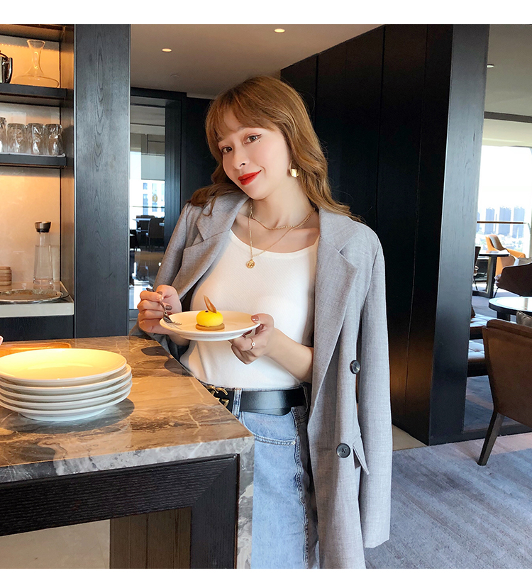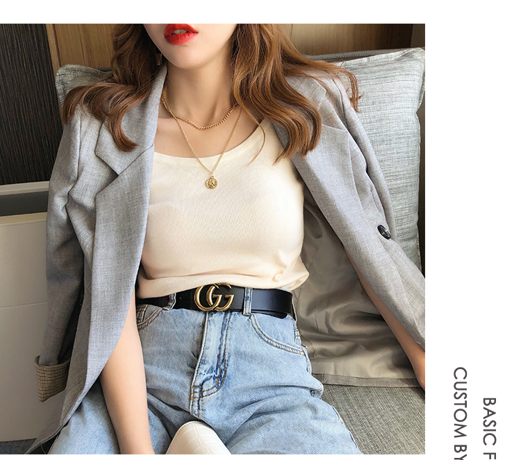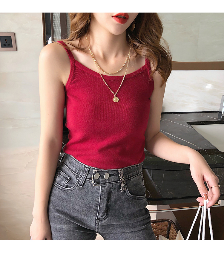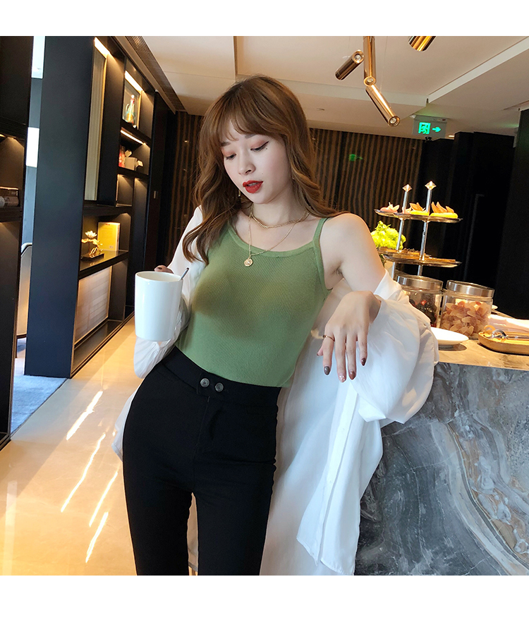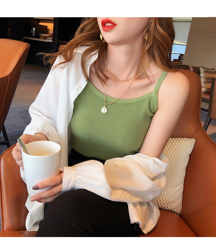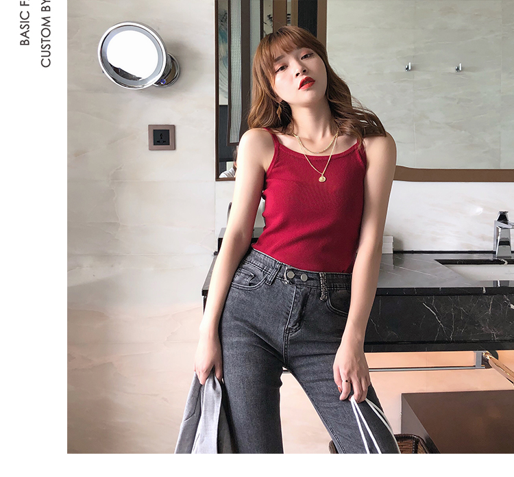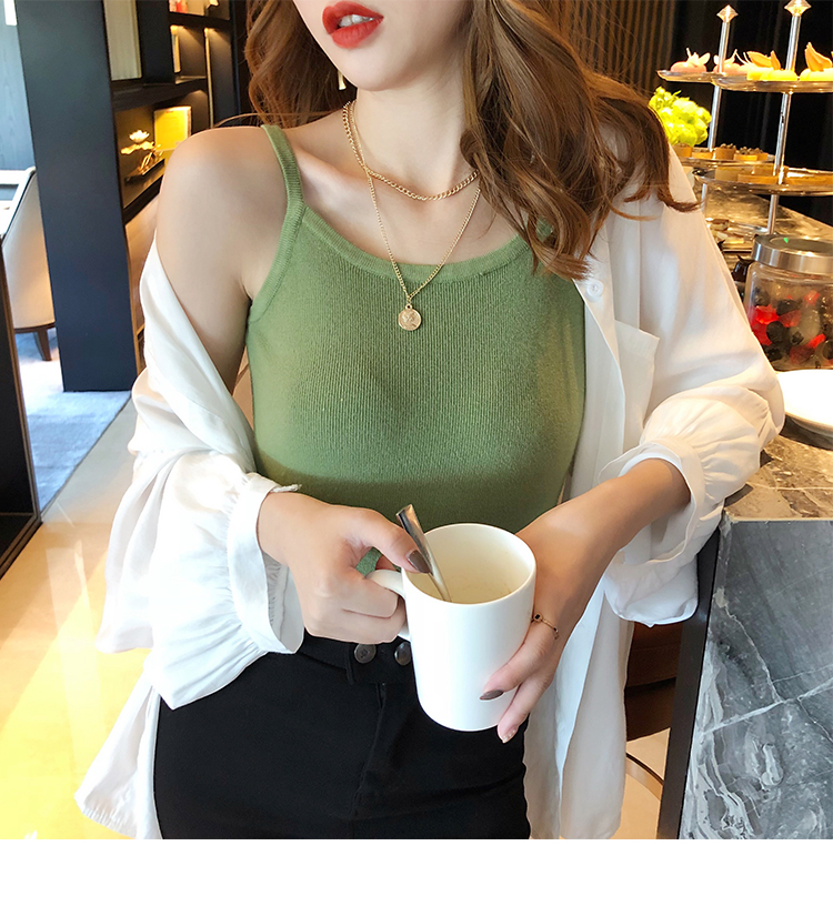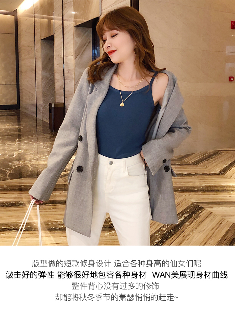 2019秋季新款外穿加厚針織吊帶女百搭韓版西裝內搭無袖打底小背心1入