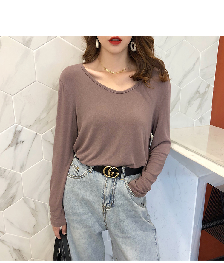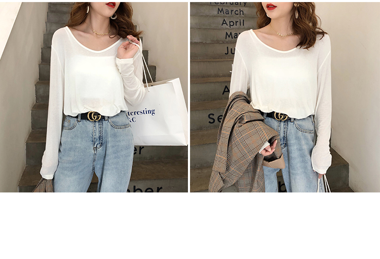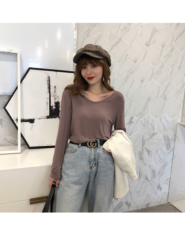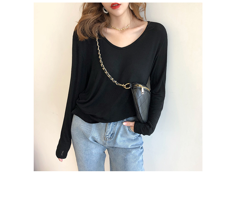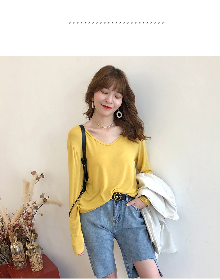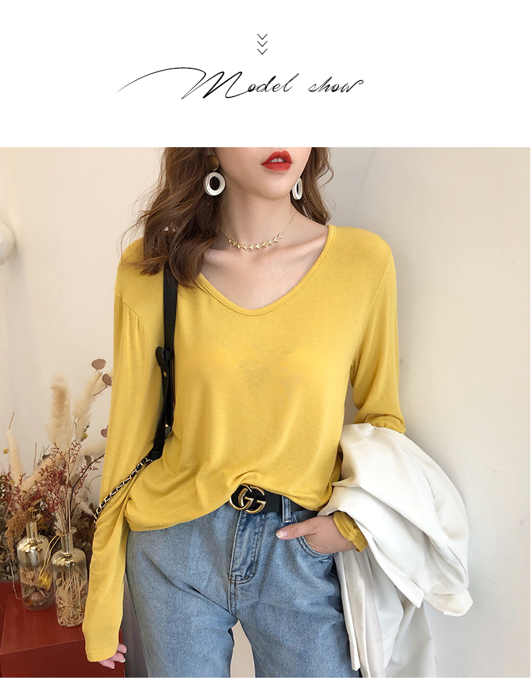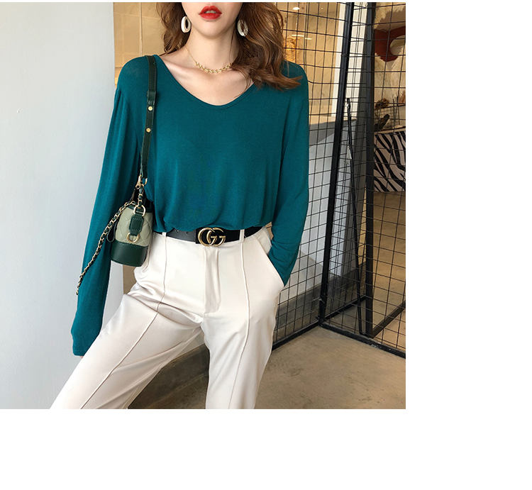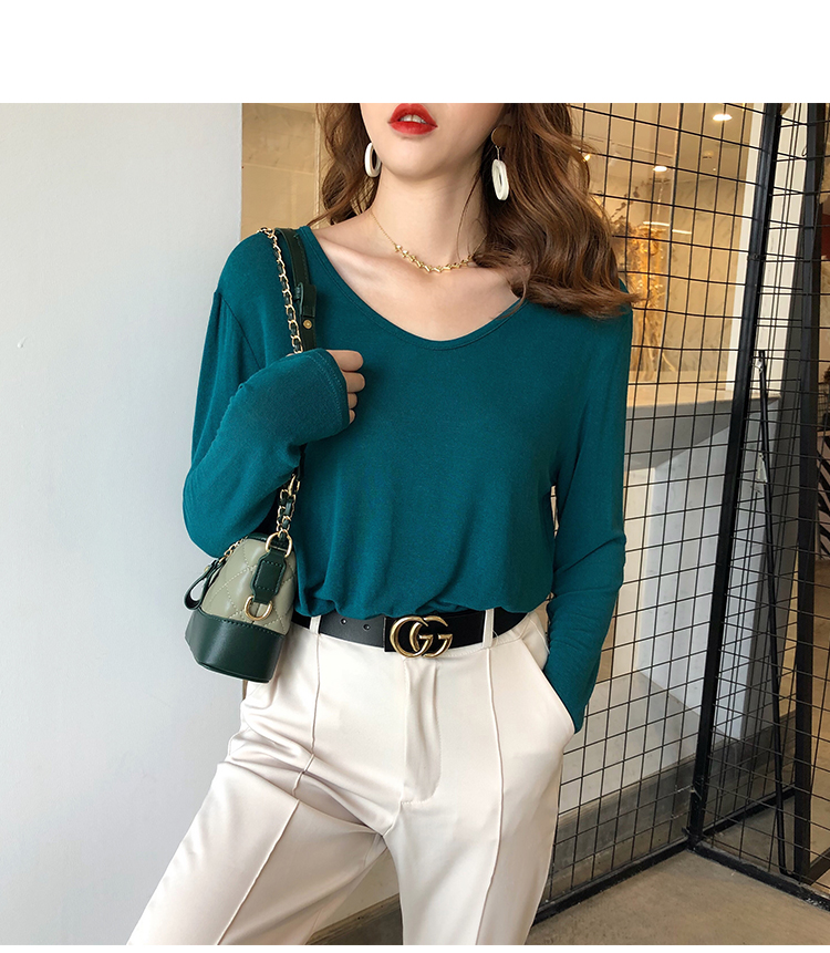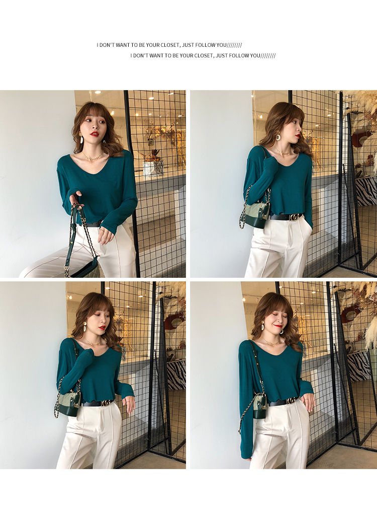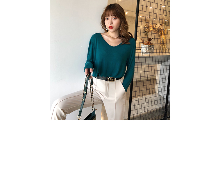 2019秋季新款V領長袖T恤女上衣ins超火寬松韓版薄款打底衫體恤潮1入