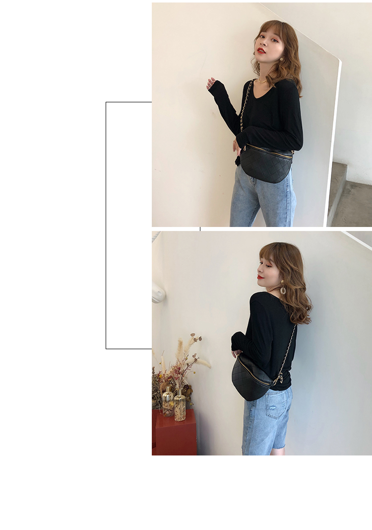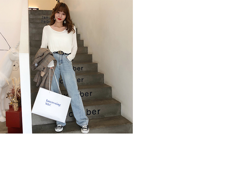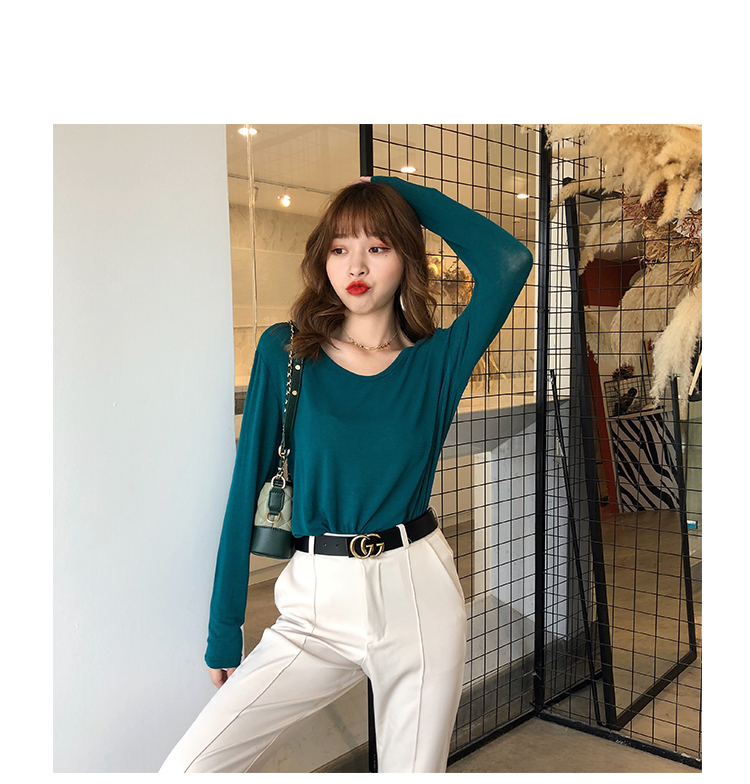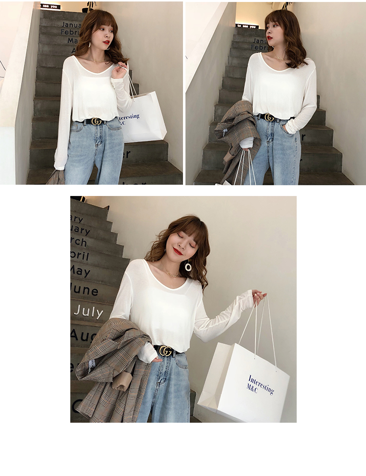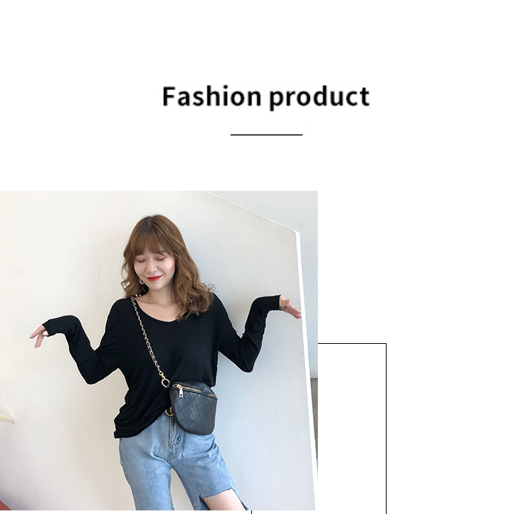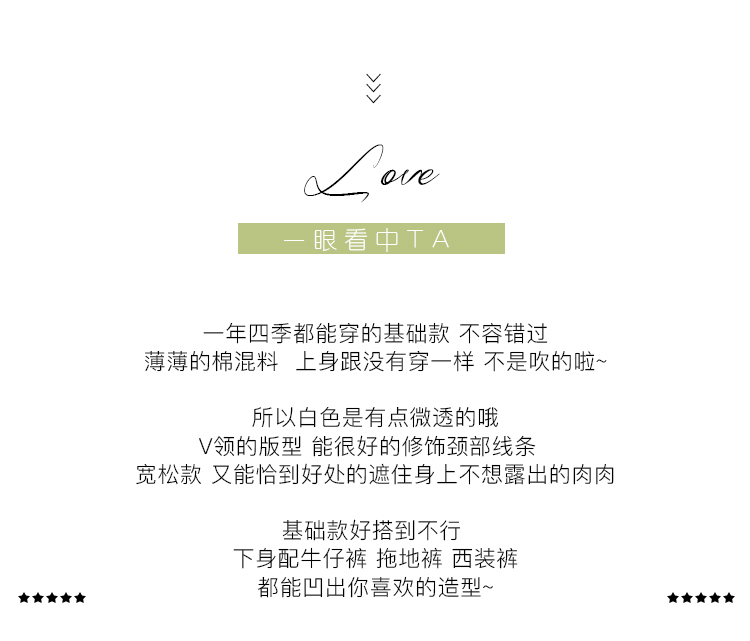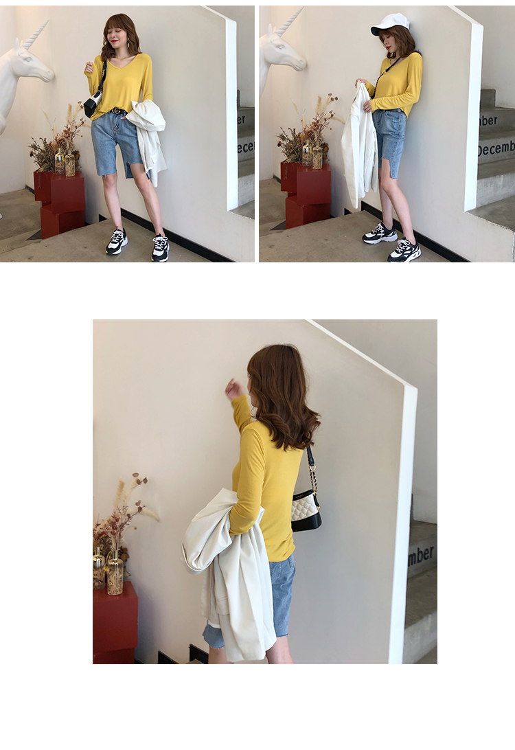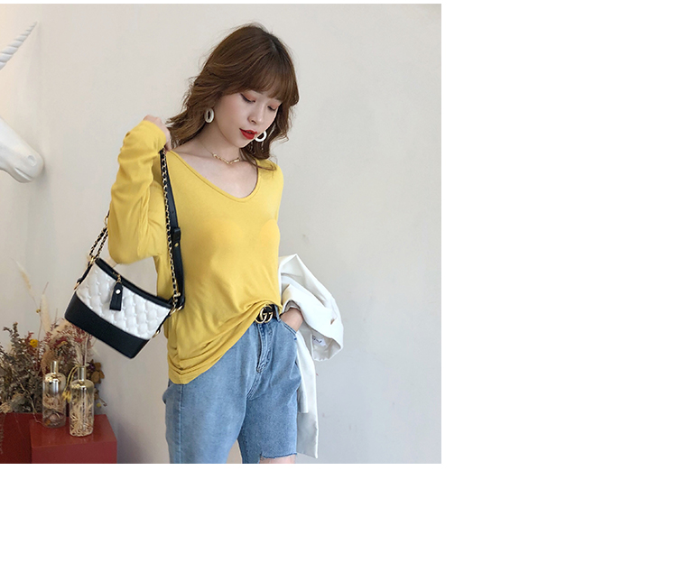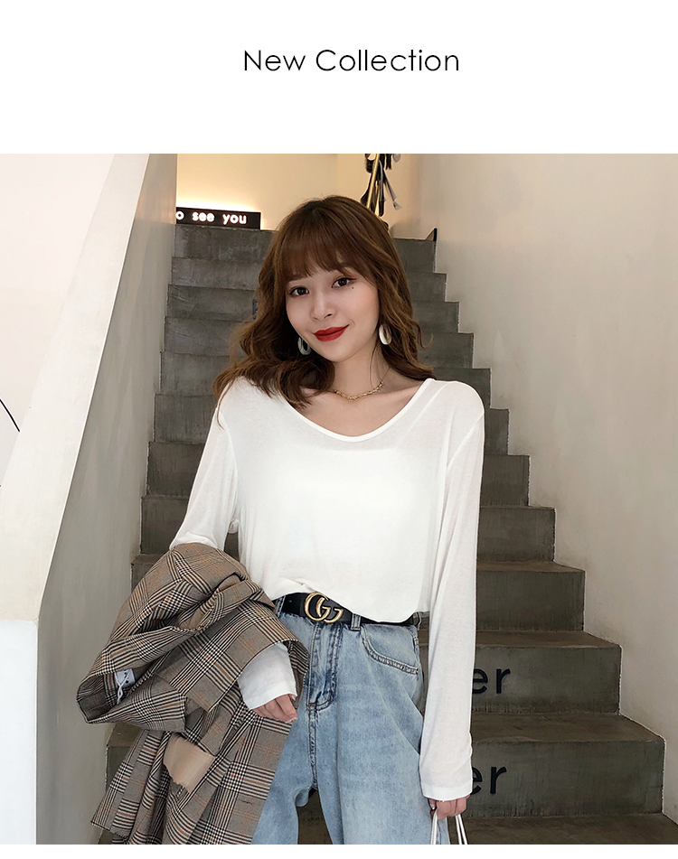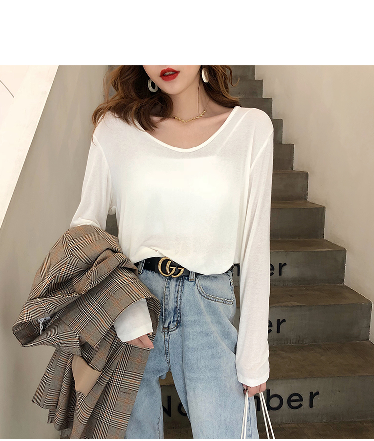 2019秋季新款V領長袖T恤女上衣ins超火寬松韓版薄款打底衫體恤潮1入
