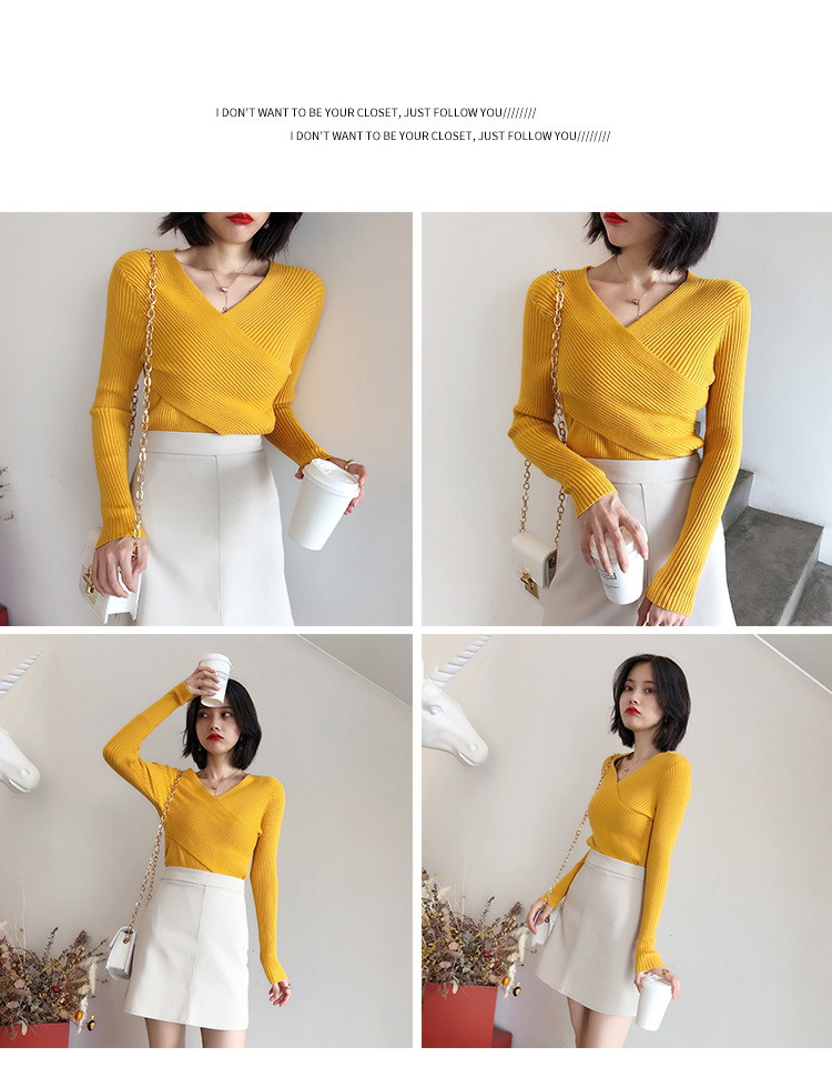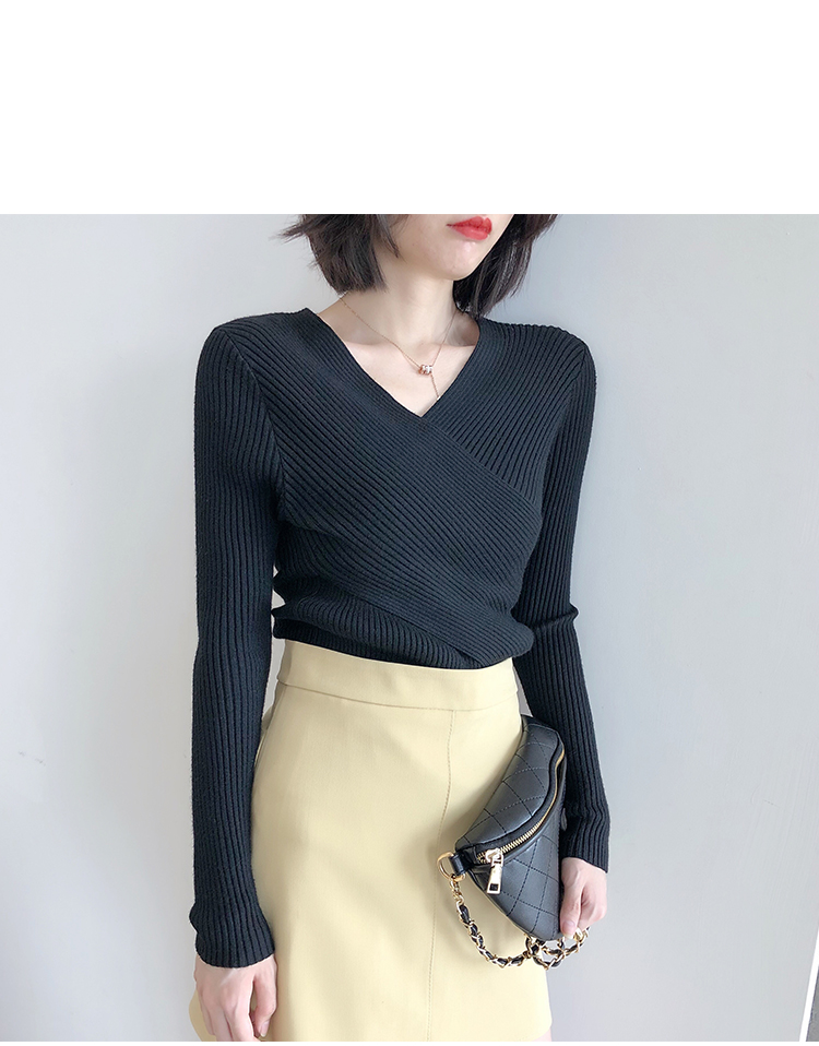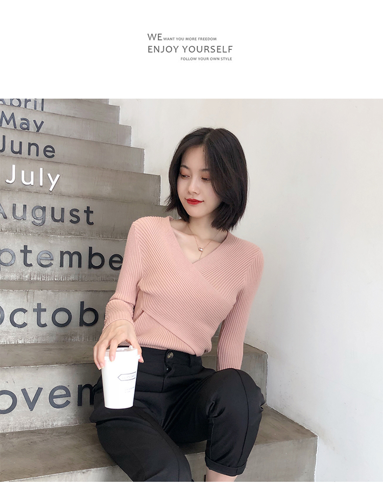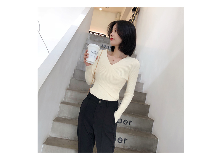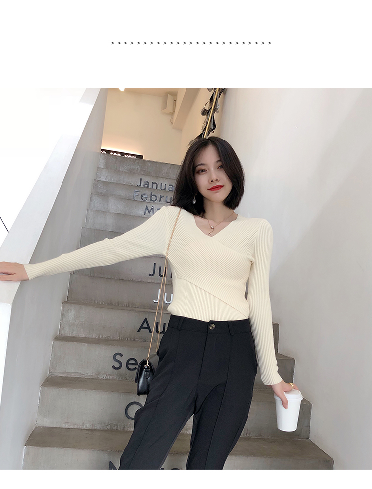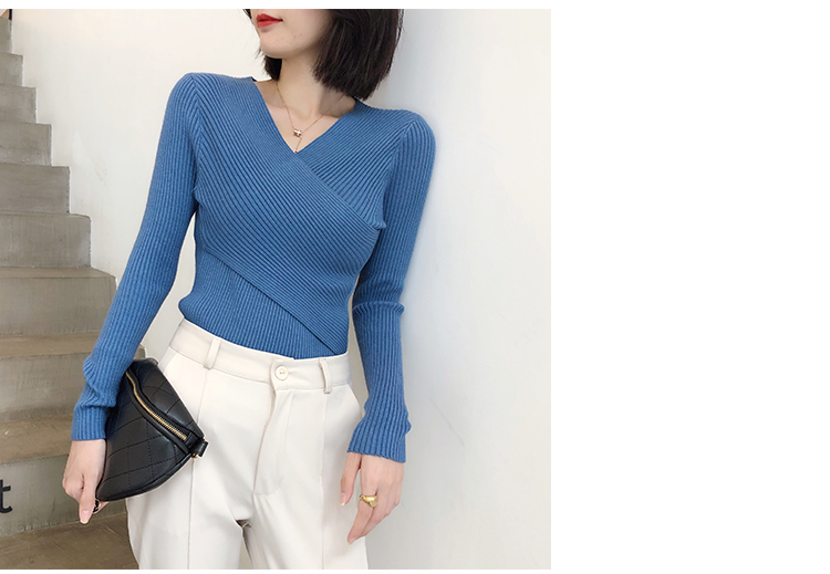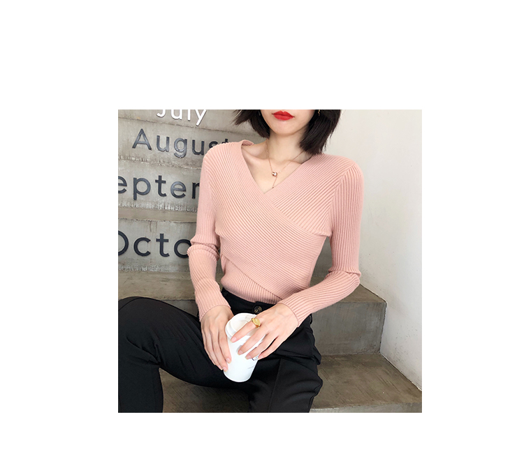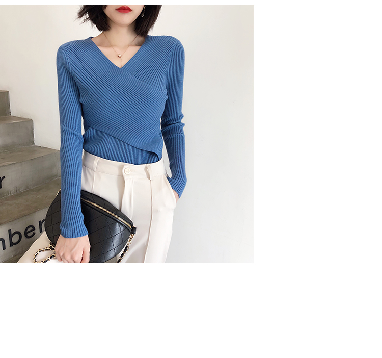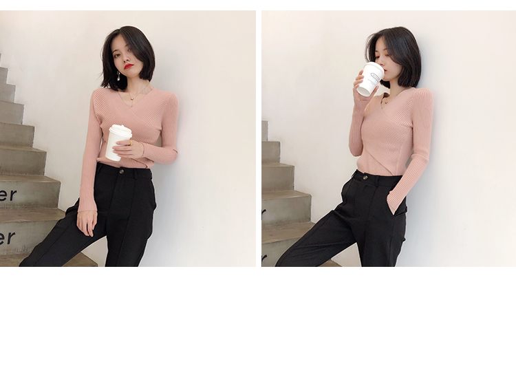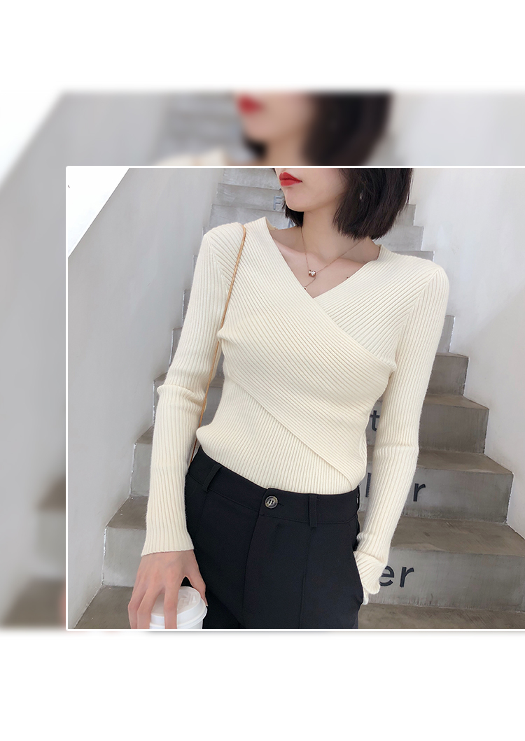 2019秋冬新款V領毛衣女小心機設計感上衣牛油果抹茶綠針織打底衫1入