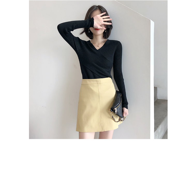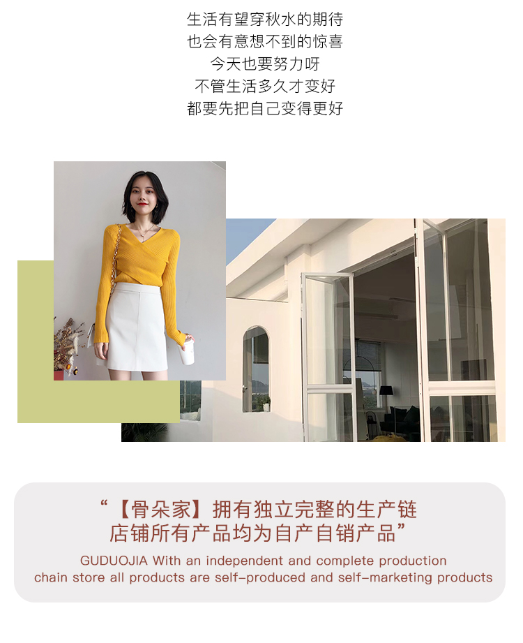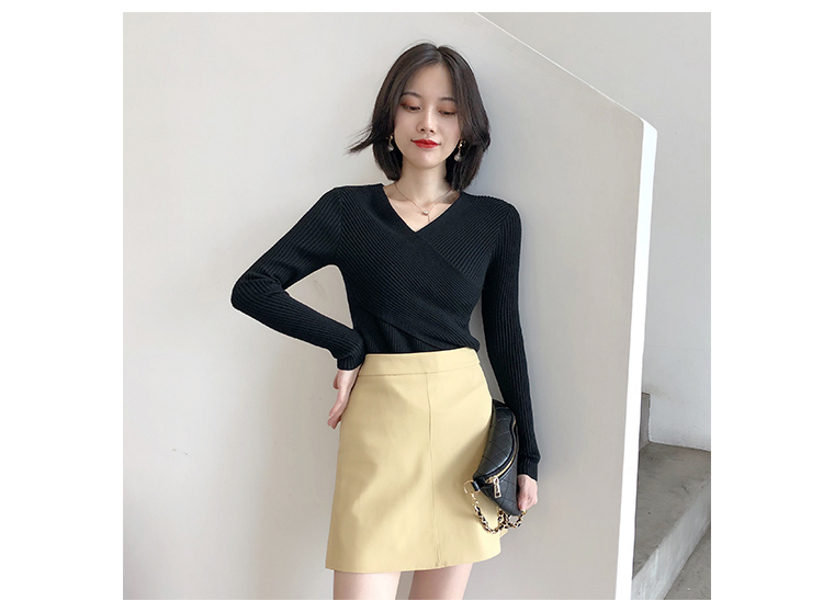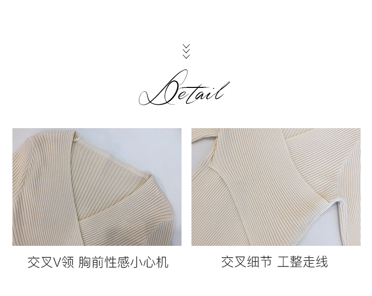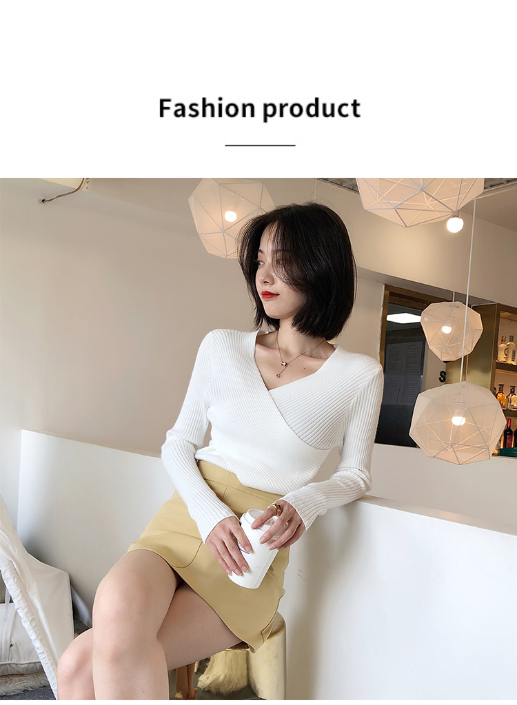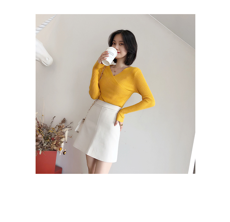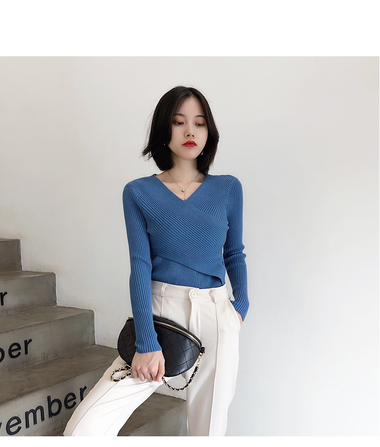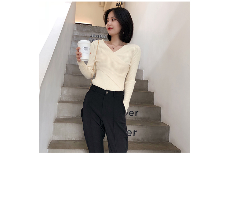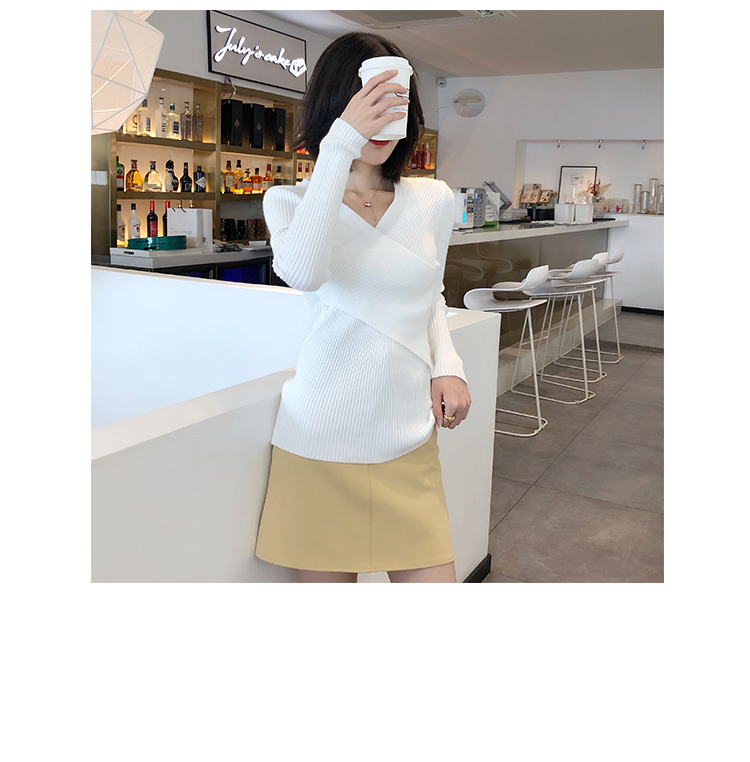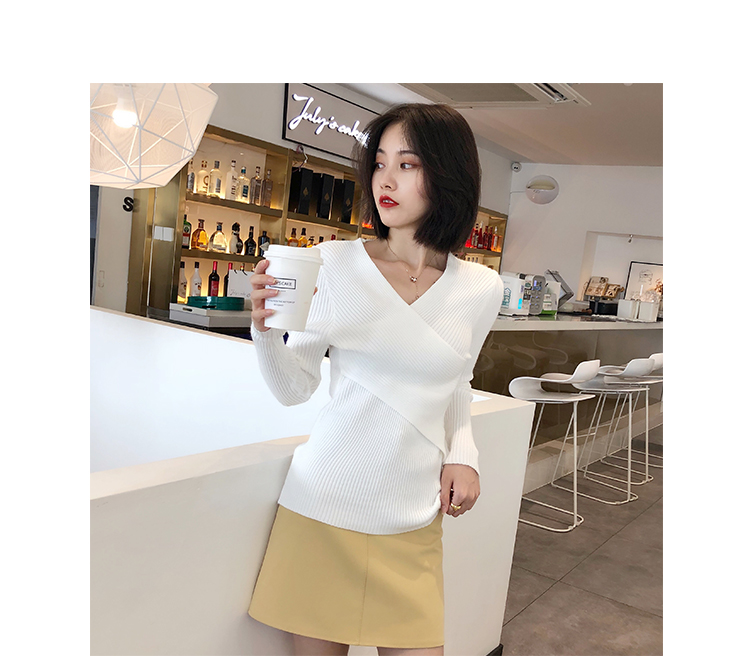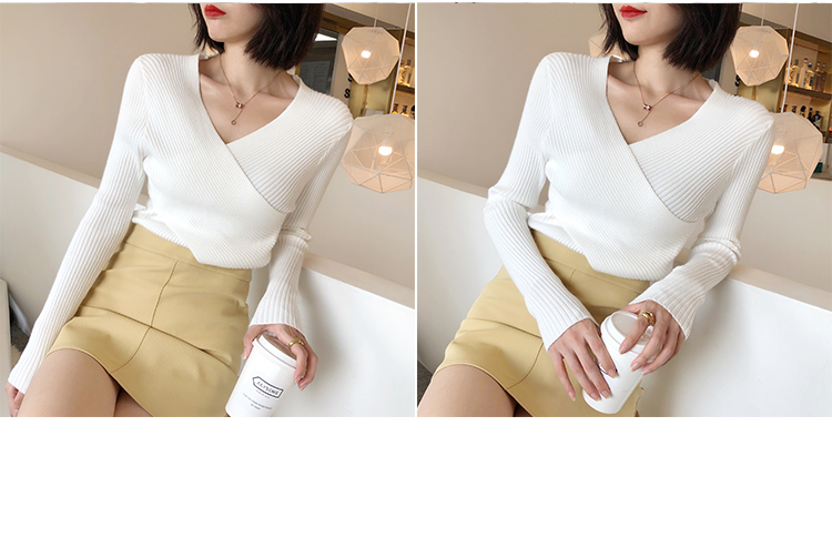 2019秋冬新款V領毛衣女小心機設計感上衣牛油果抹茶綠針織打底衫1入