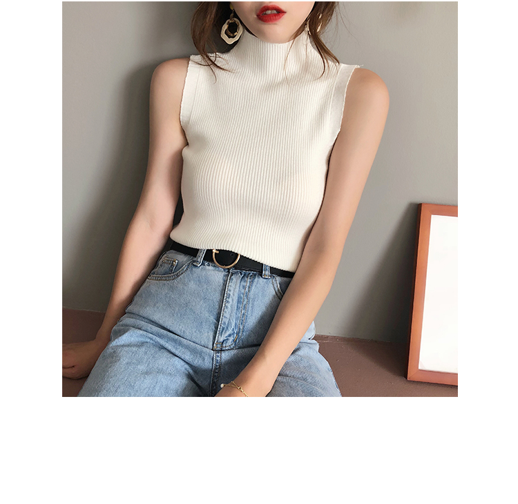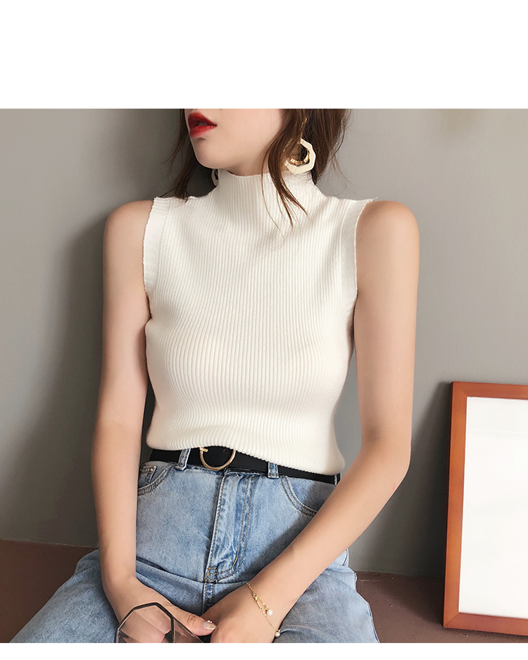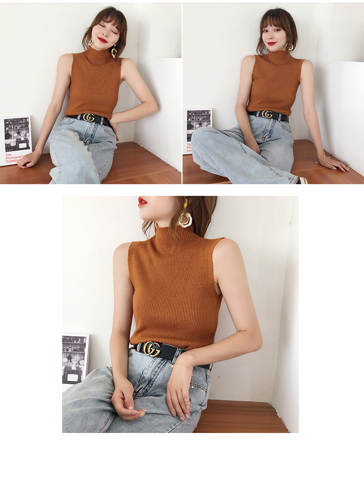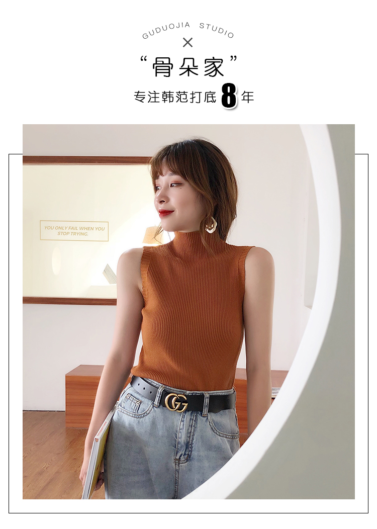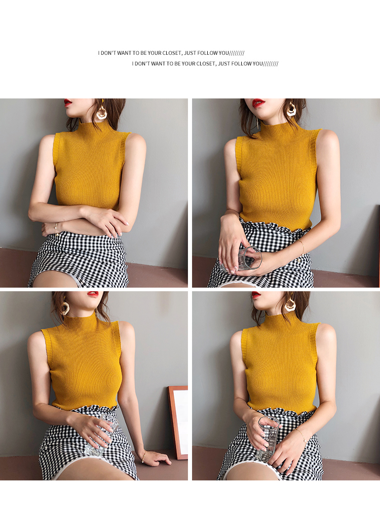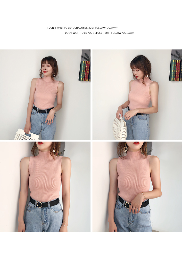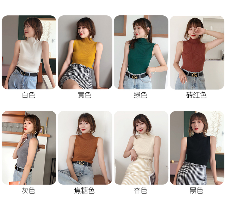 2019早秋新款半高領內搭針織背心打底衫女ins潮外穿無袖T恤上衣夏1入