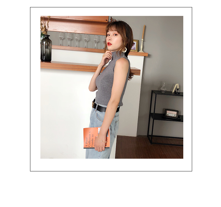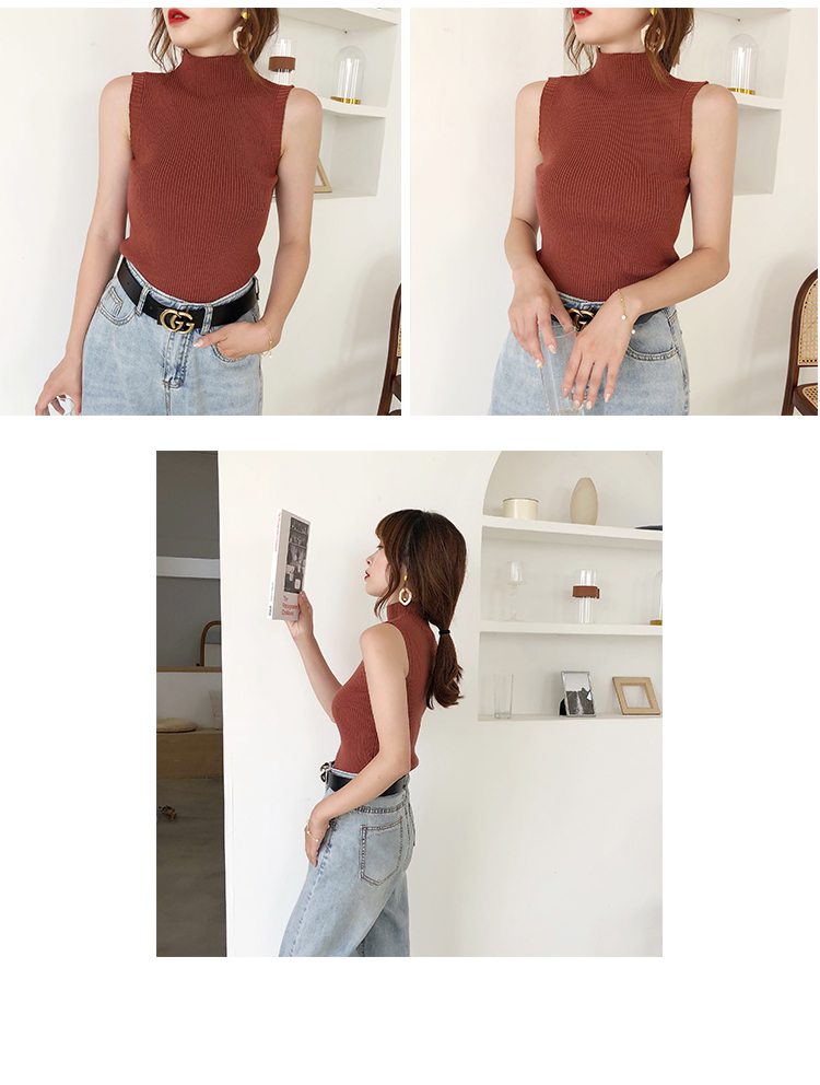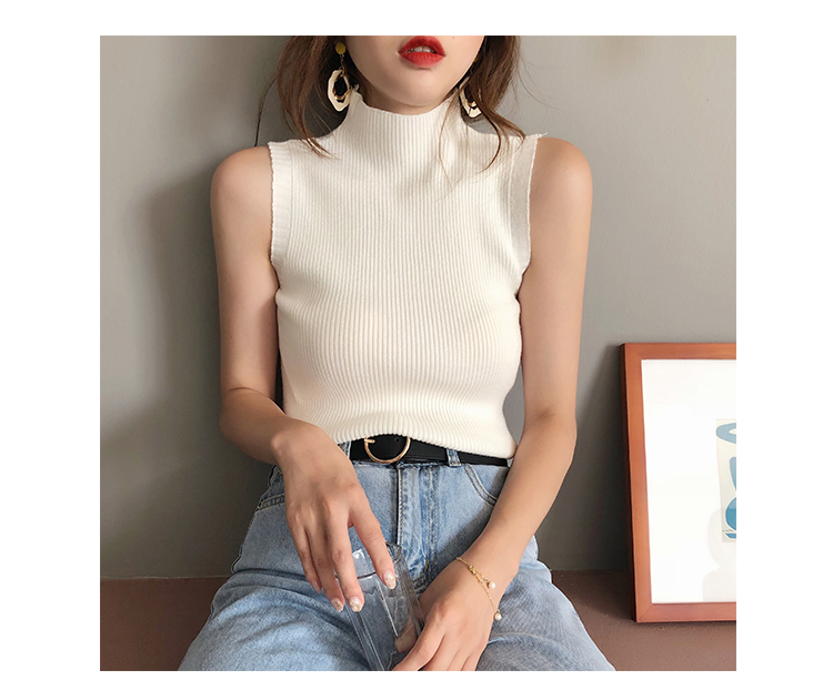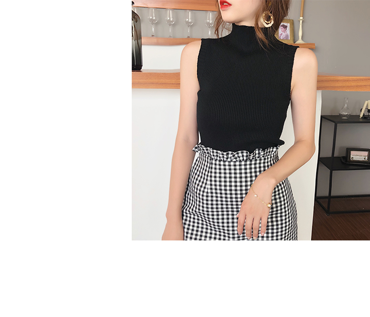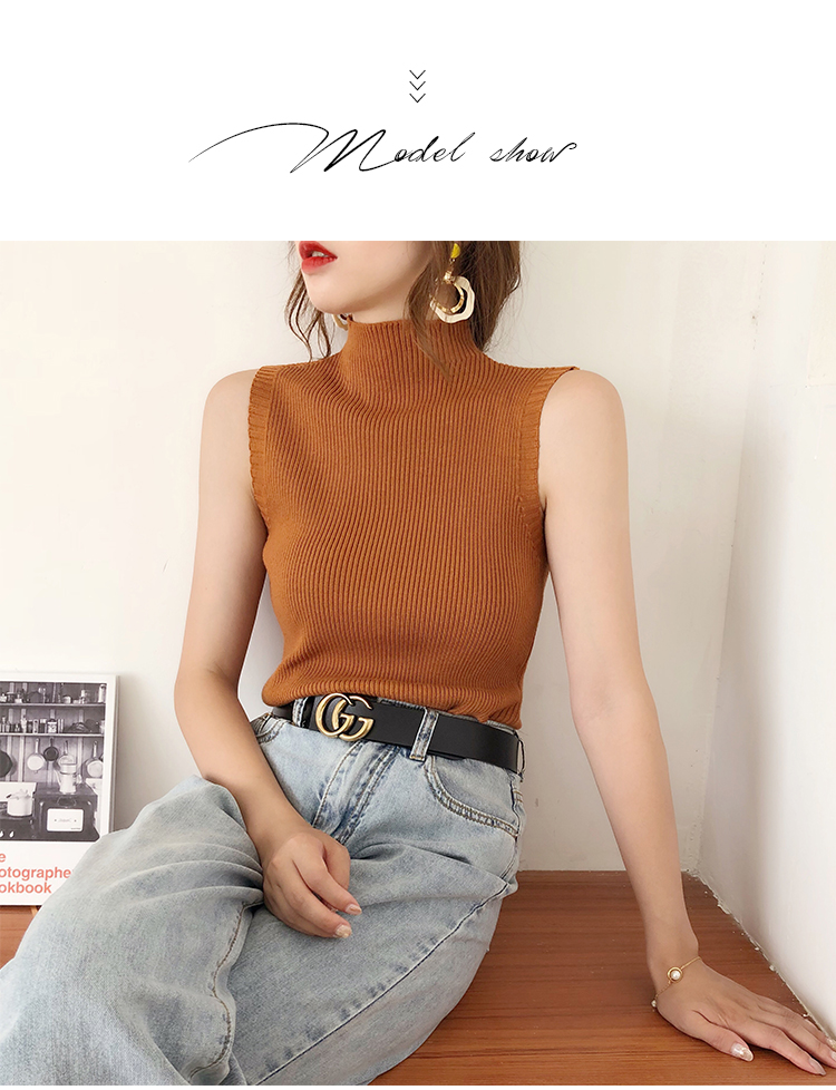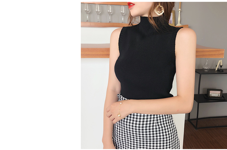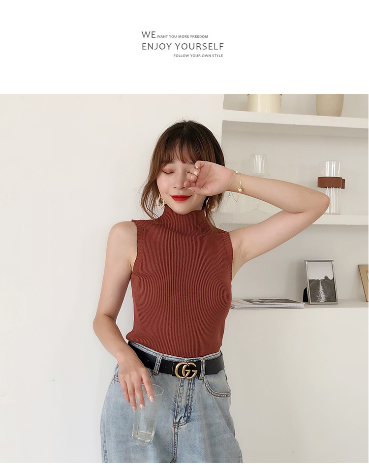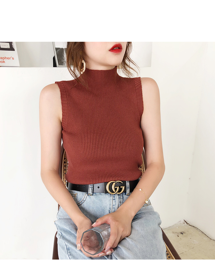 2019早秋新款半高領內搭針織背心打底衫女ins潮外穿無袖T恤上衣夏1入