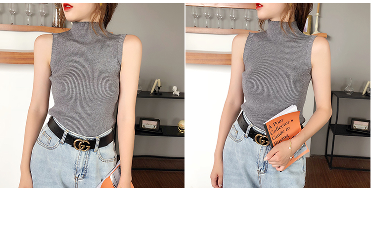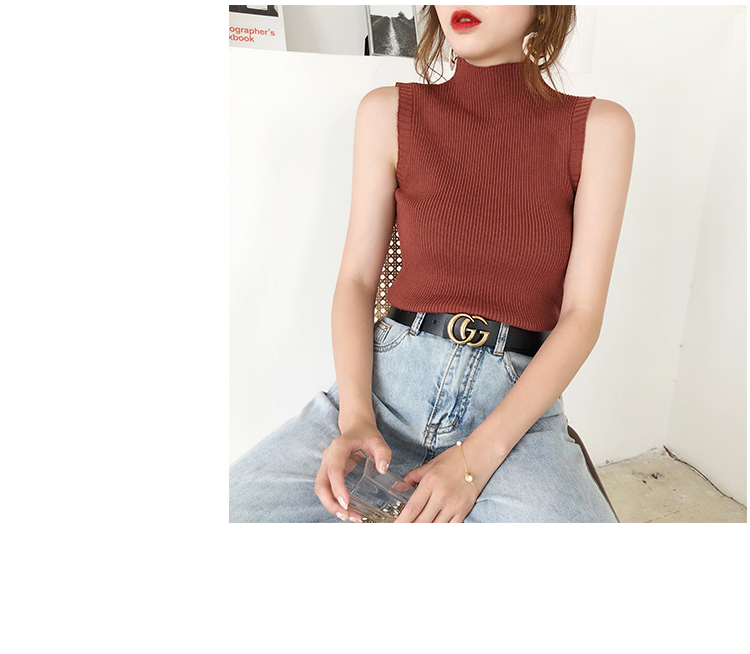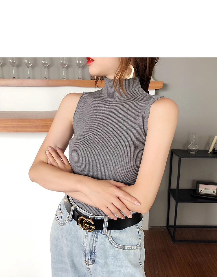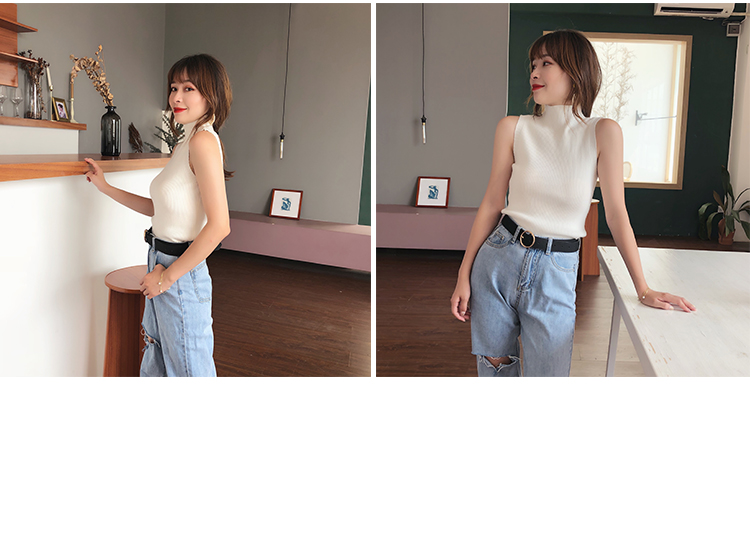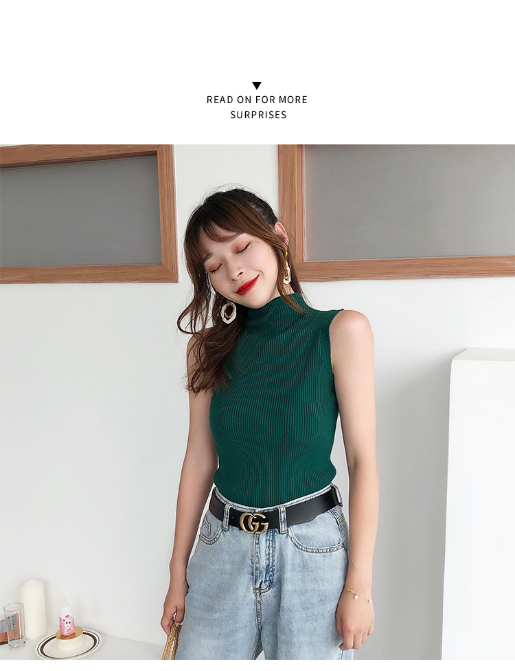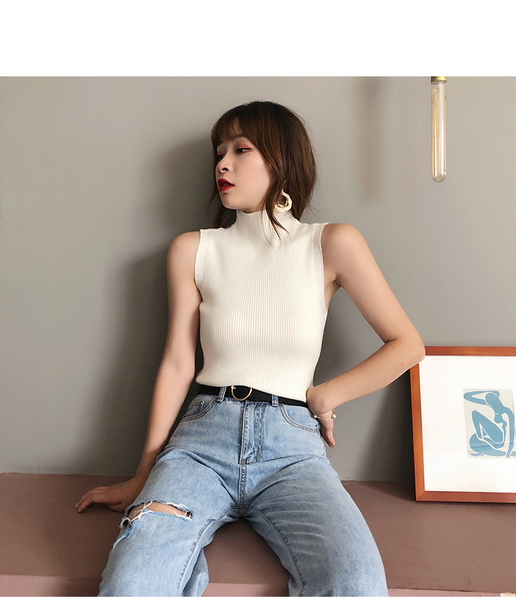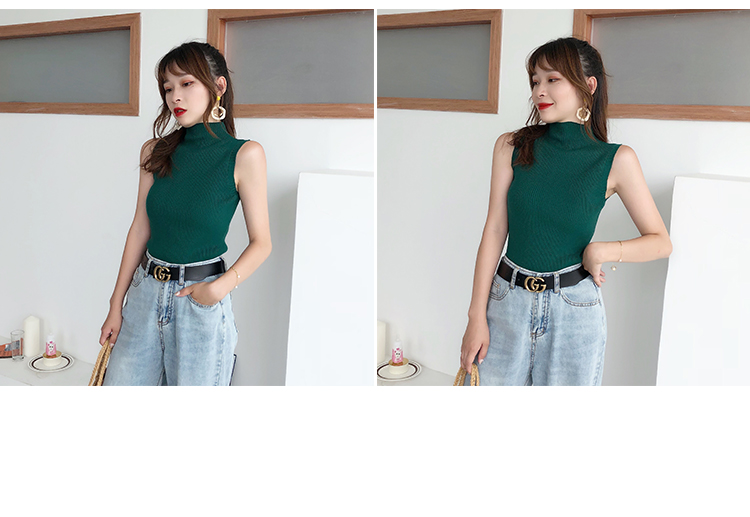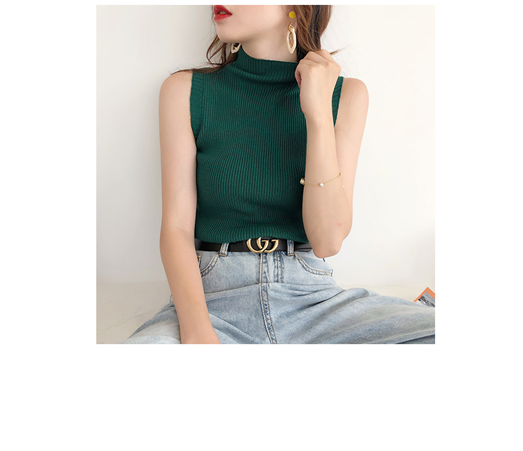 2019早秋新款半高領內搭針織背心打底衫女ins潮外穿無袖T恤上衣夏1入