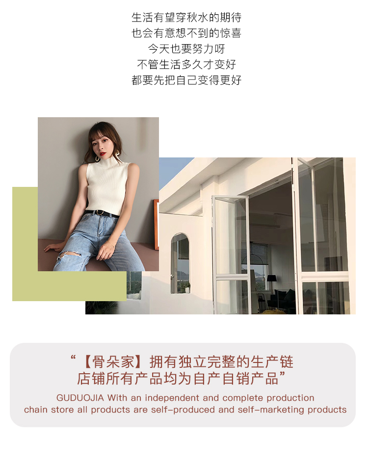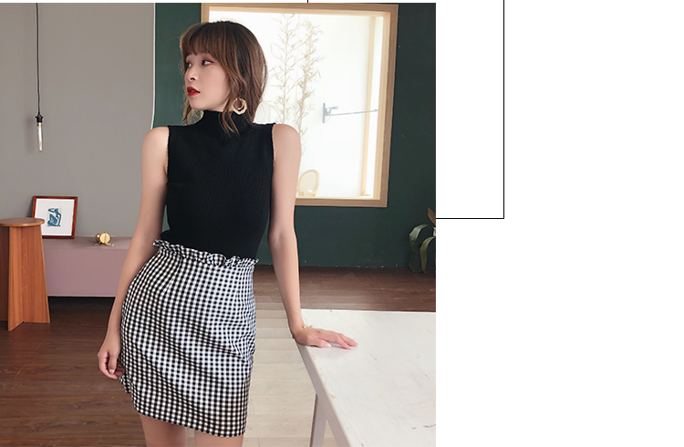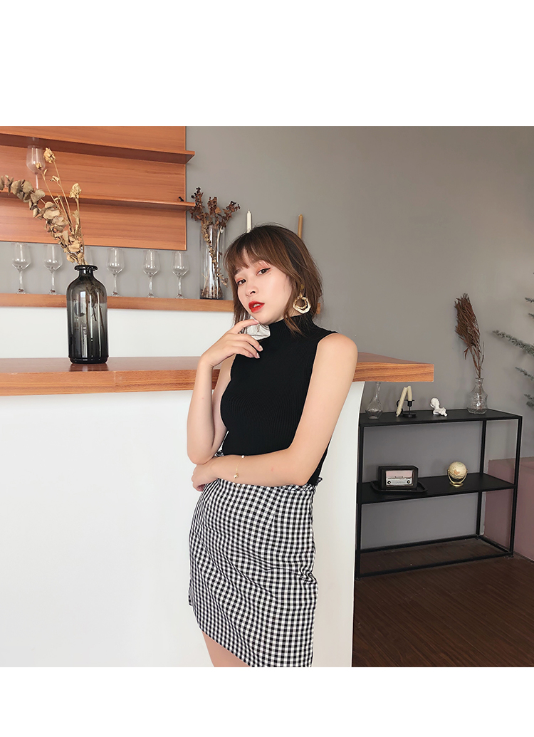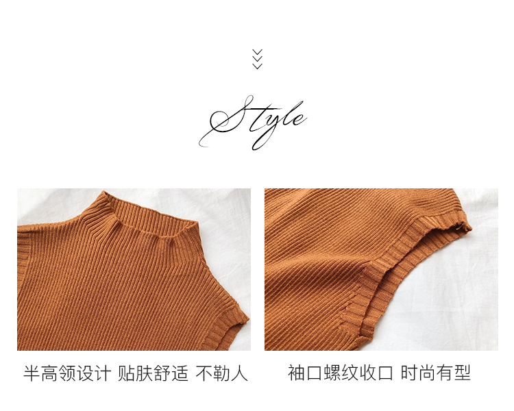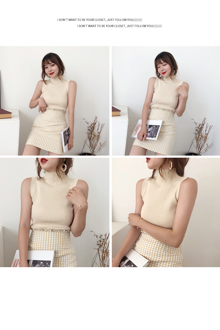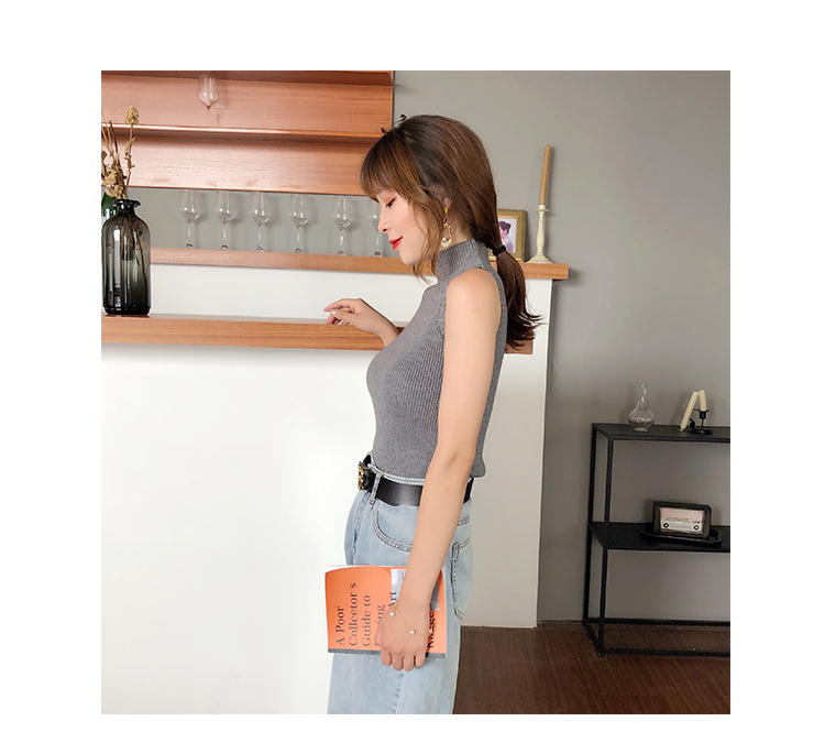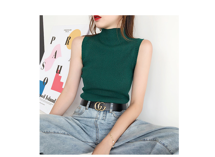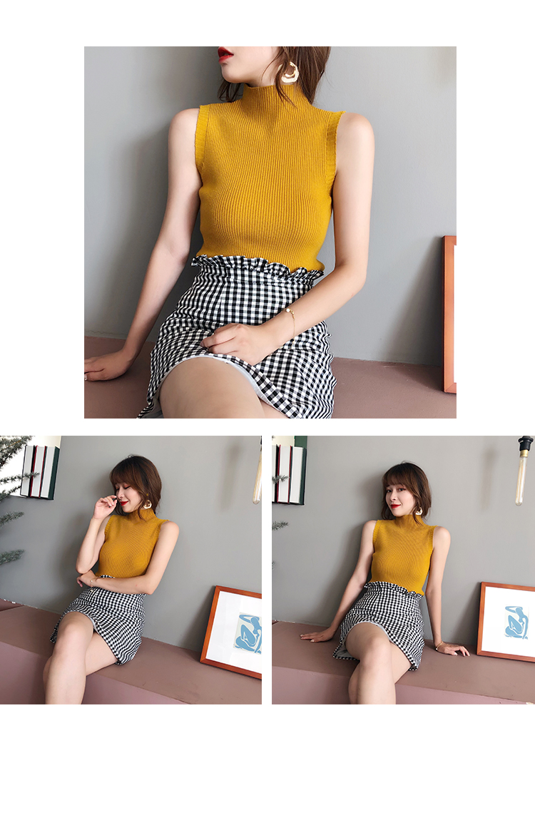 2019早秋新款半高領內搭針織背心打底衫女ins潮外穿無袖T恤上衣夏1入
