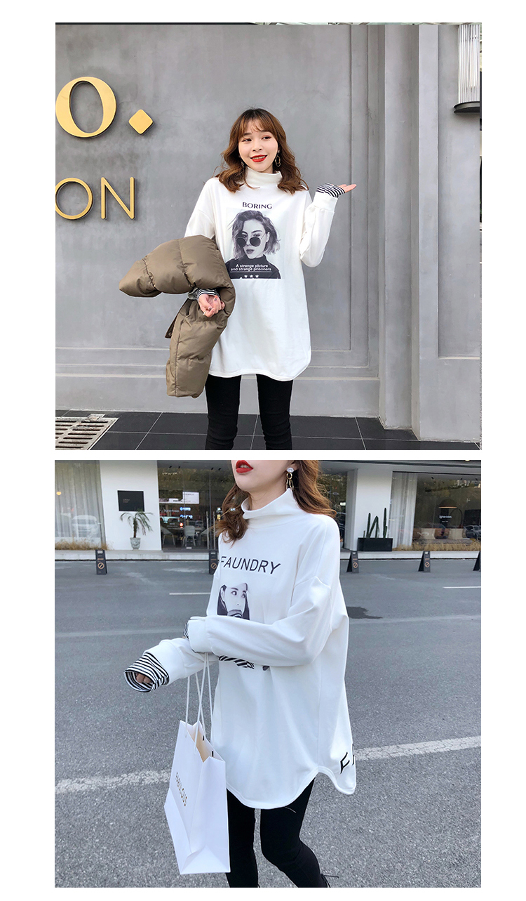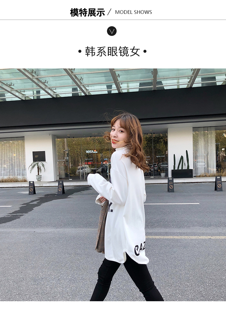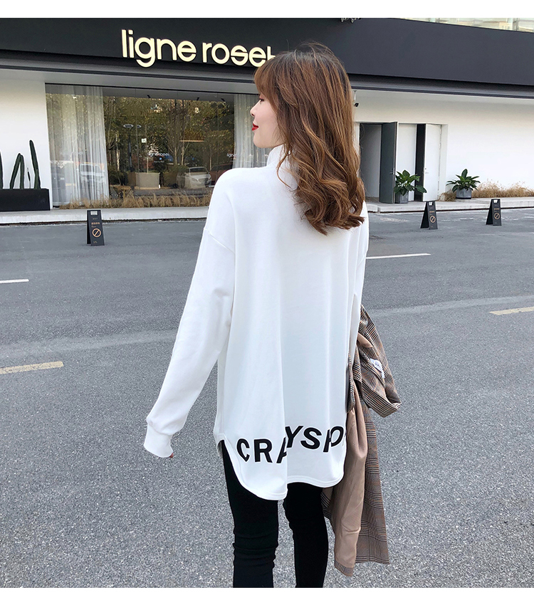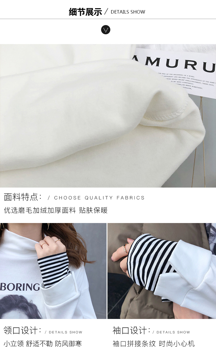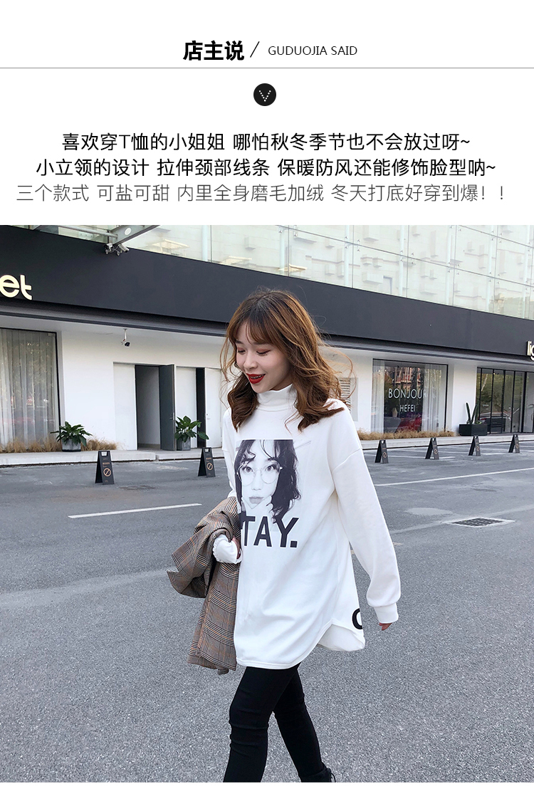 2019秋冬新款白色加絨內搭女打底衫加厚寬松外穿t恤中長款上衣女1入