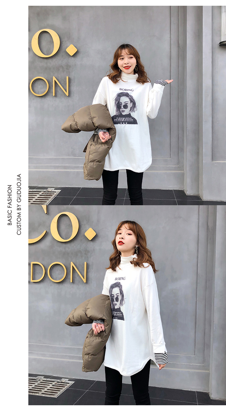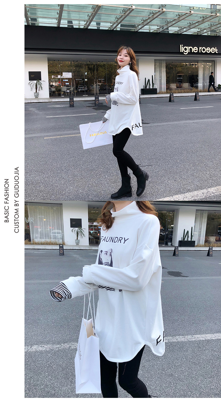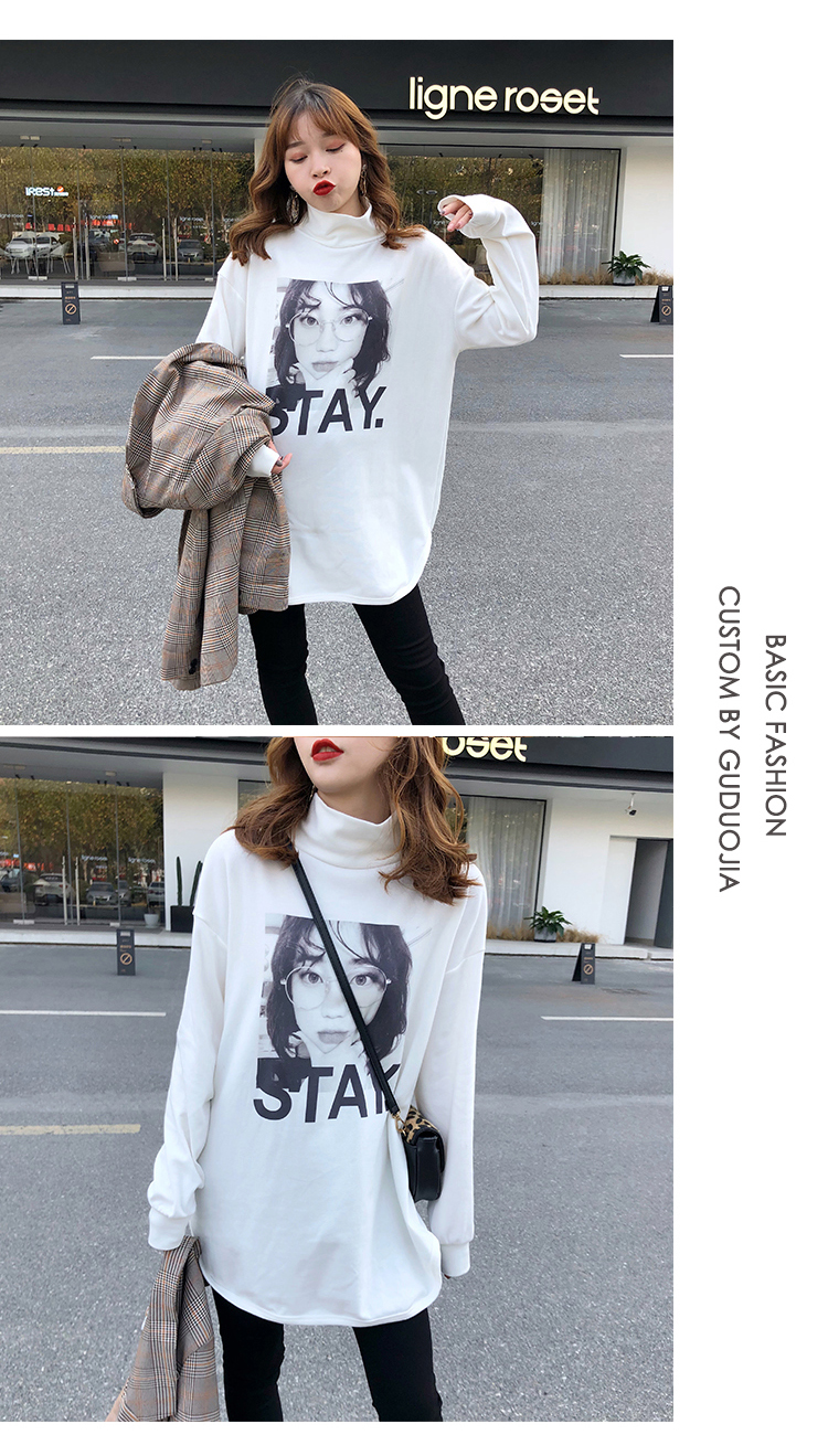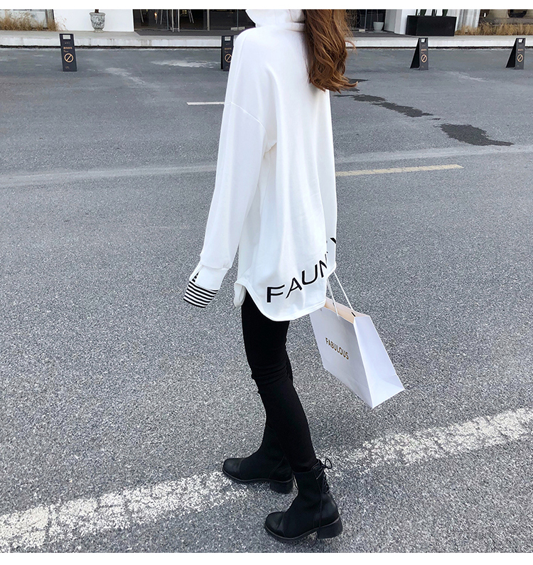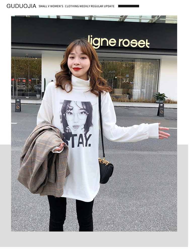 2019秋冬新款白色加絨內搭女打底衫加厚寬松外穿t恤中長款上衣女1入