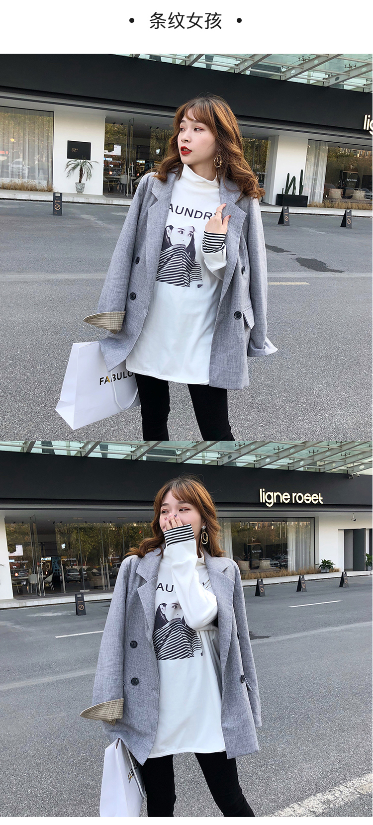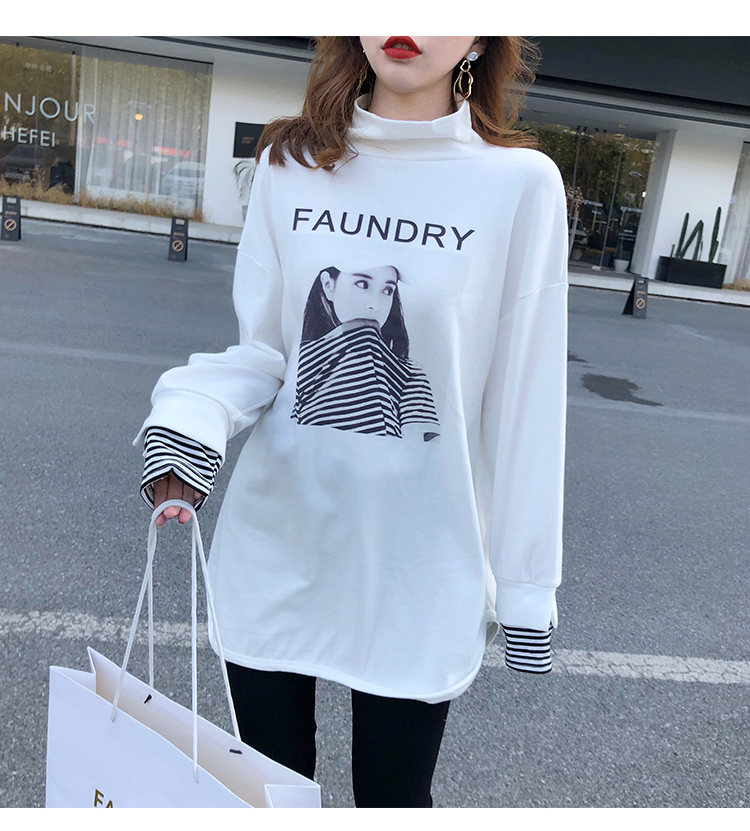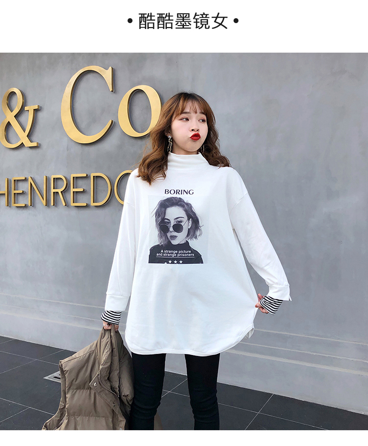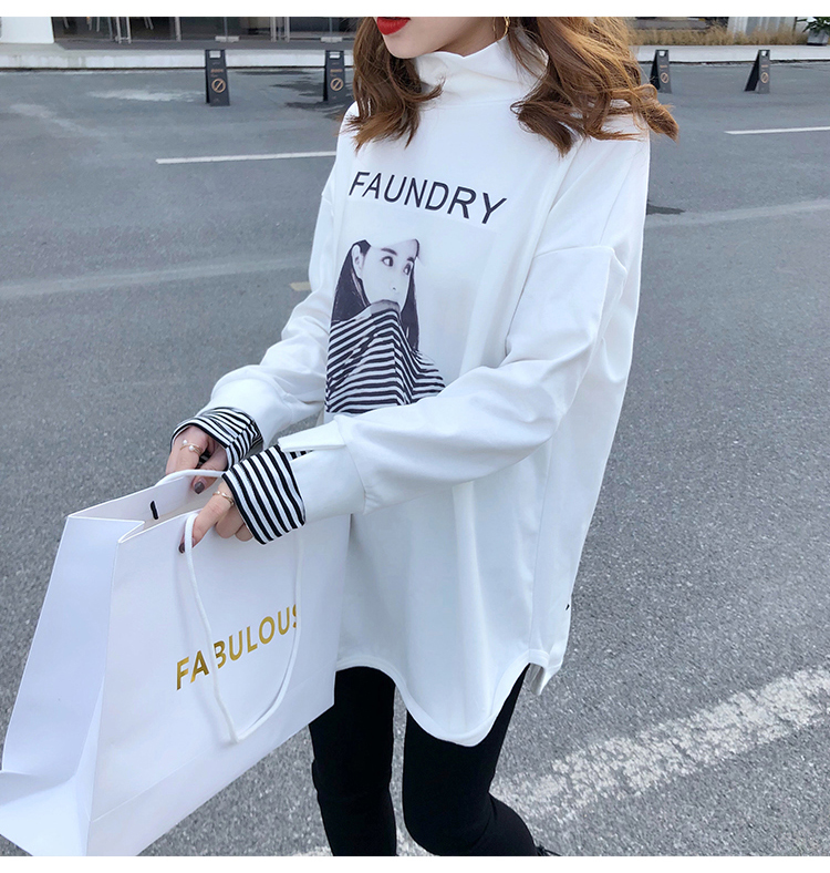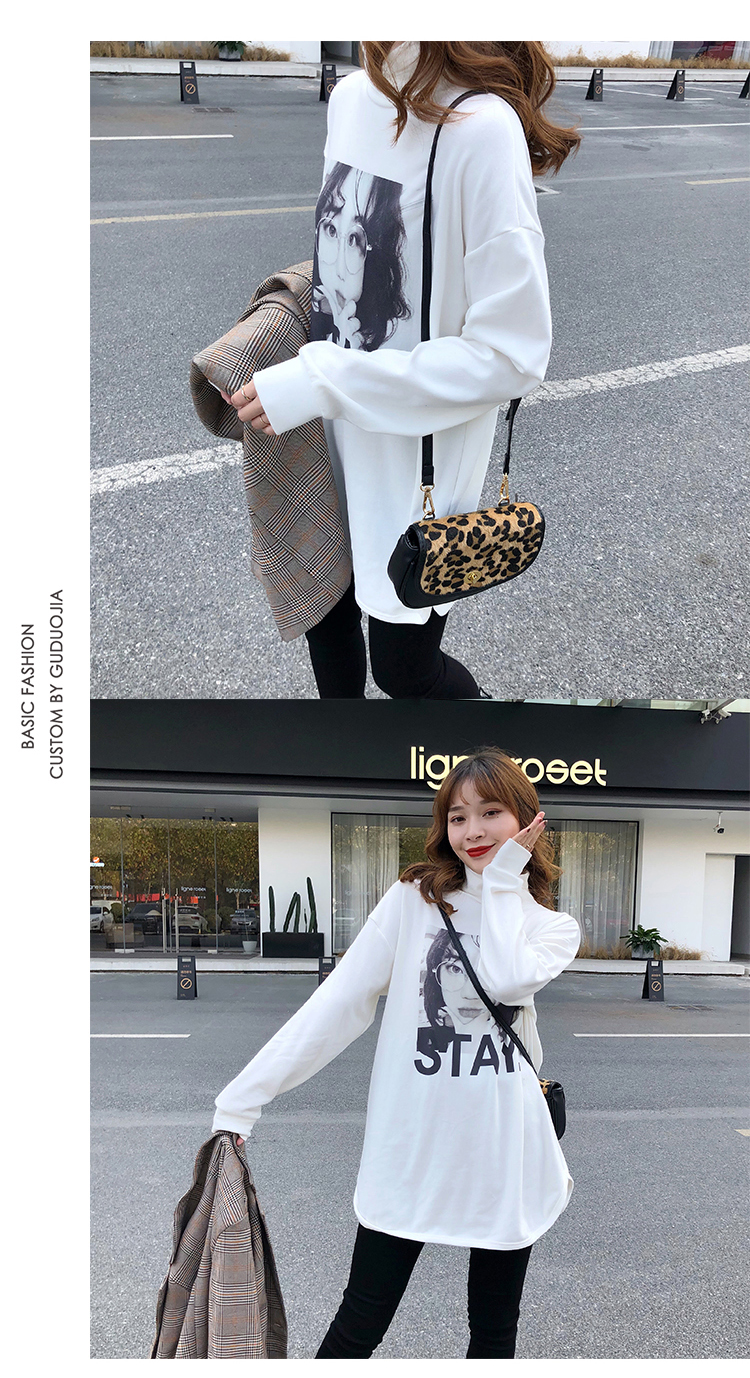 2019秋冬新款白色加絨內搭女打底衫加厚寬松外穿t恤中長款上衣女1入