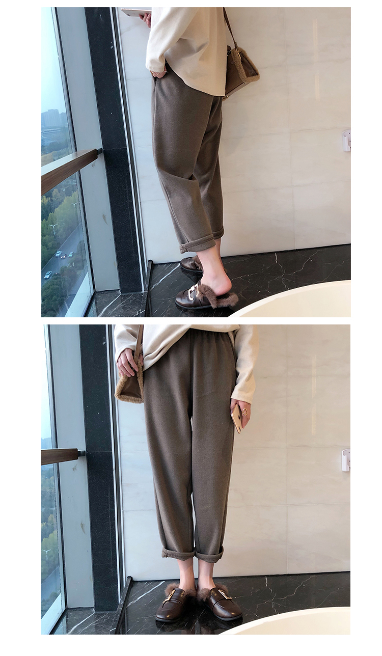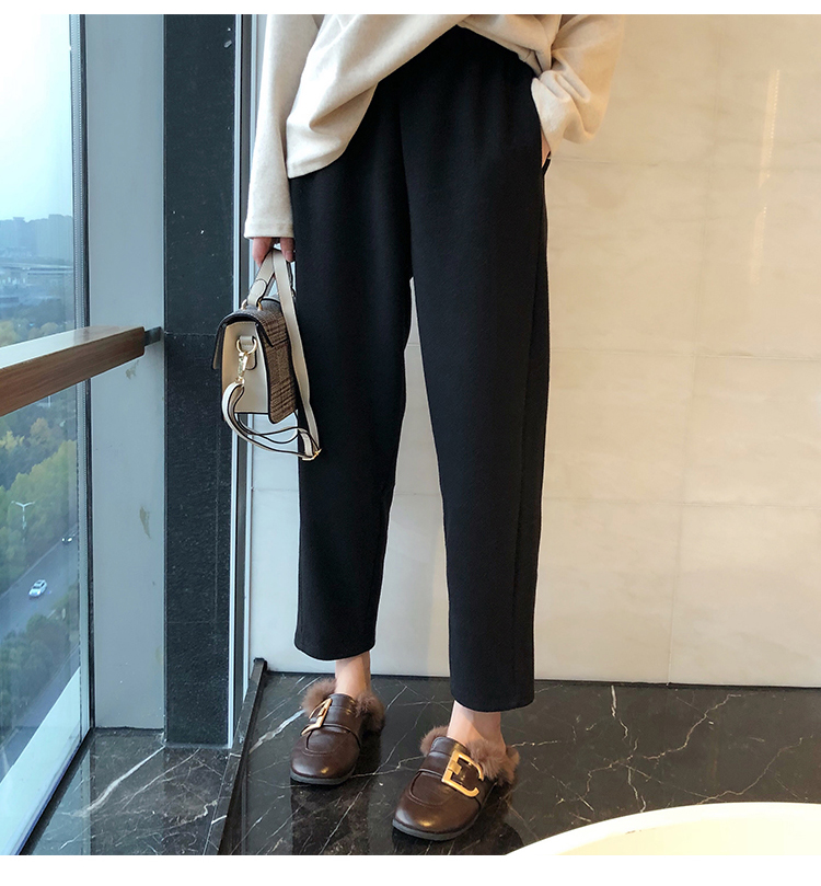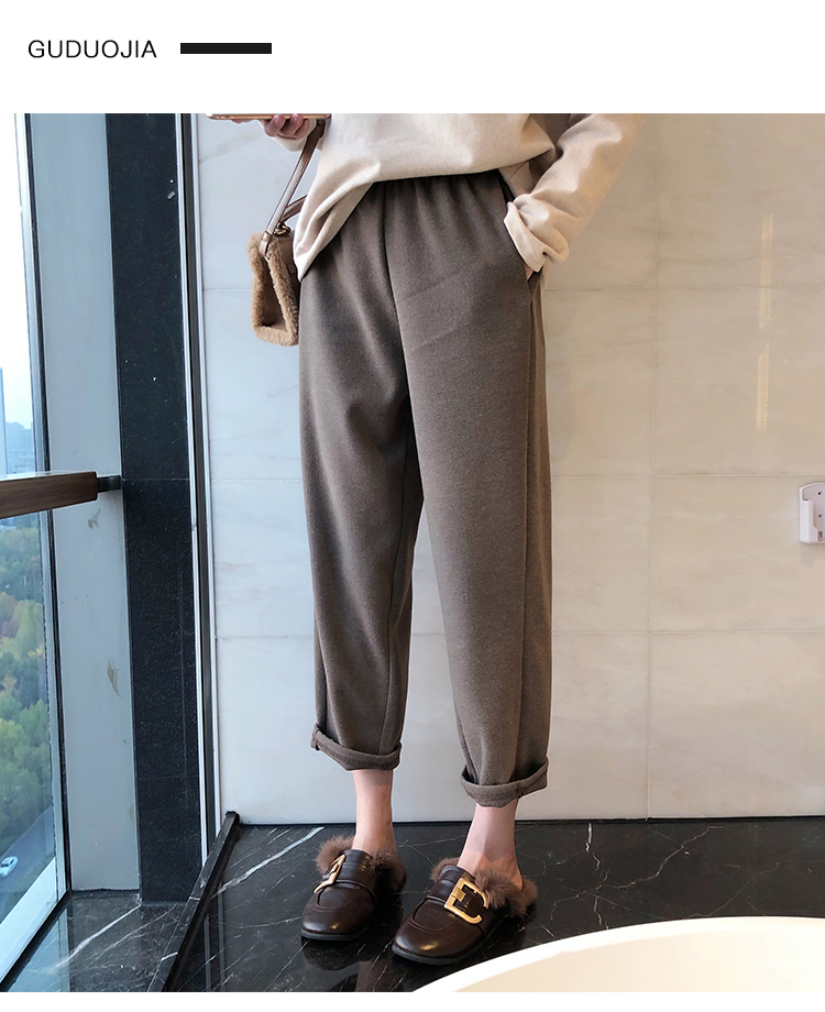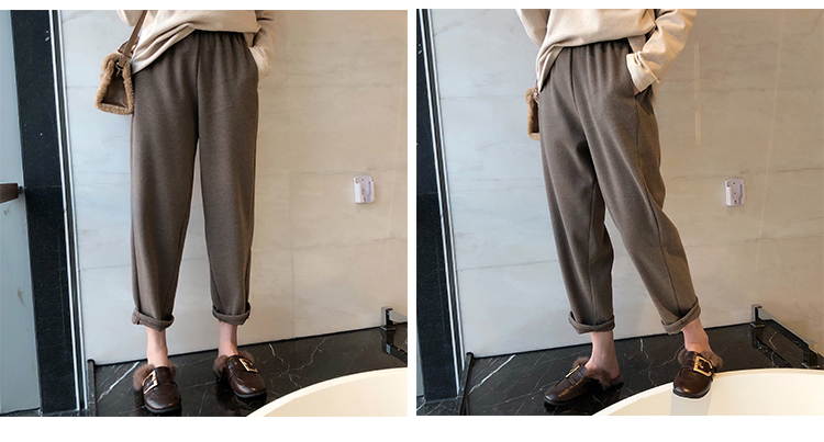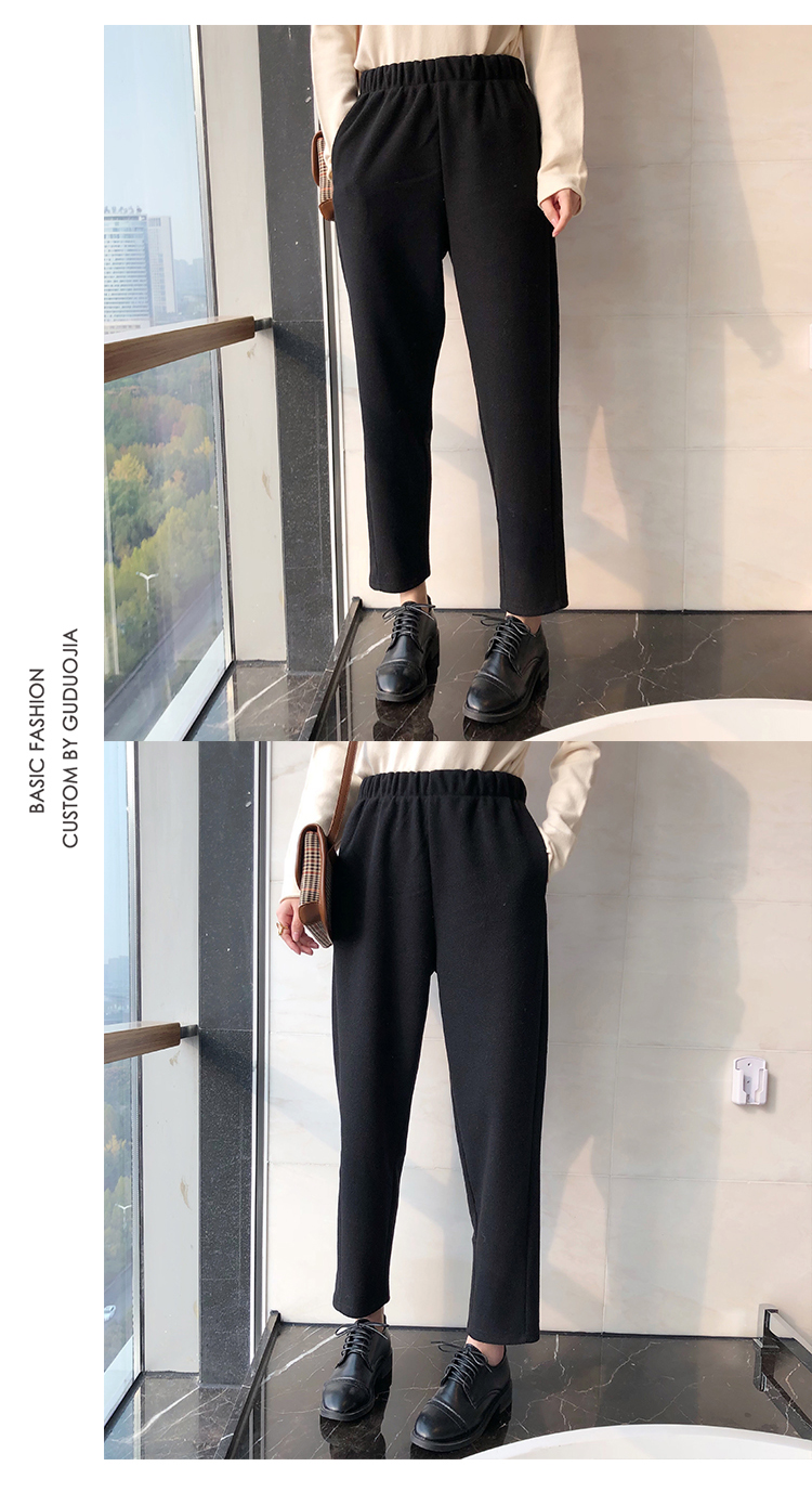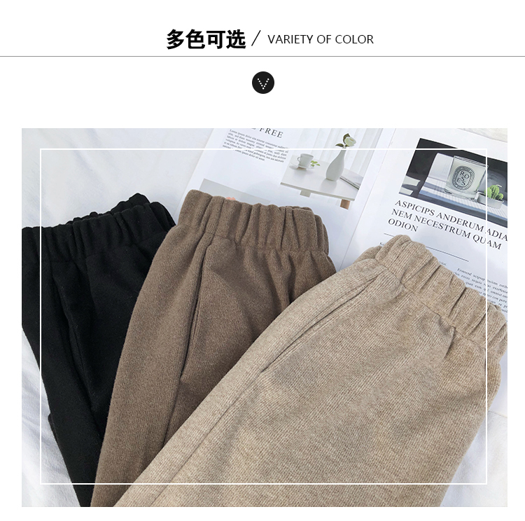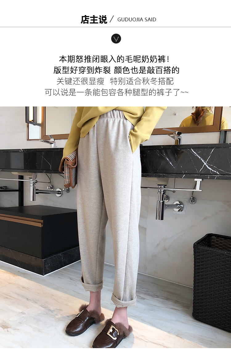 褲子女秋冬2019新款寬松顯瘦加厚毛呢奶奶褲百搭高腰蘿卜哈倫褲1入