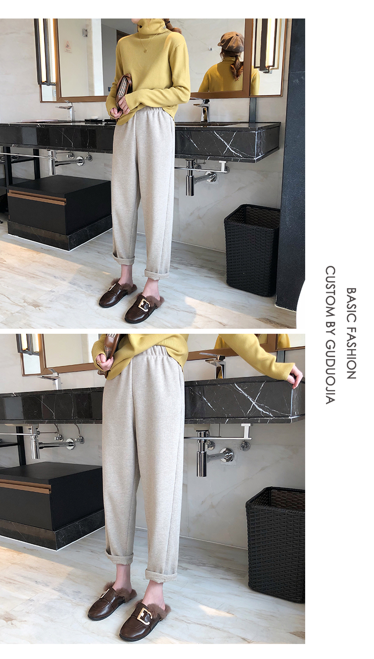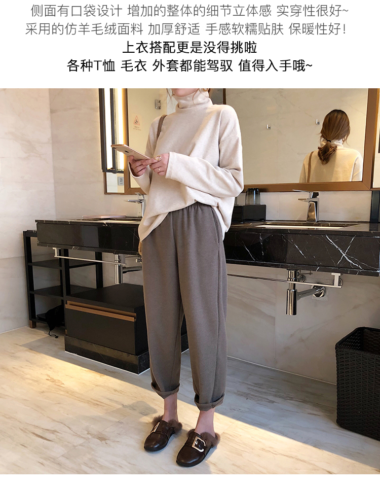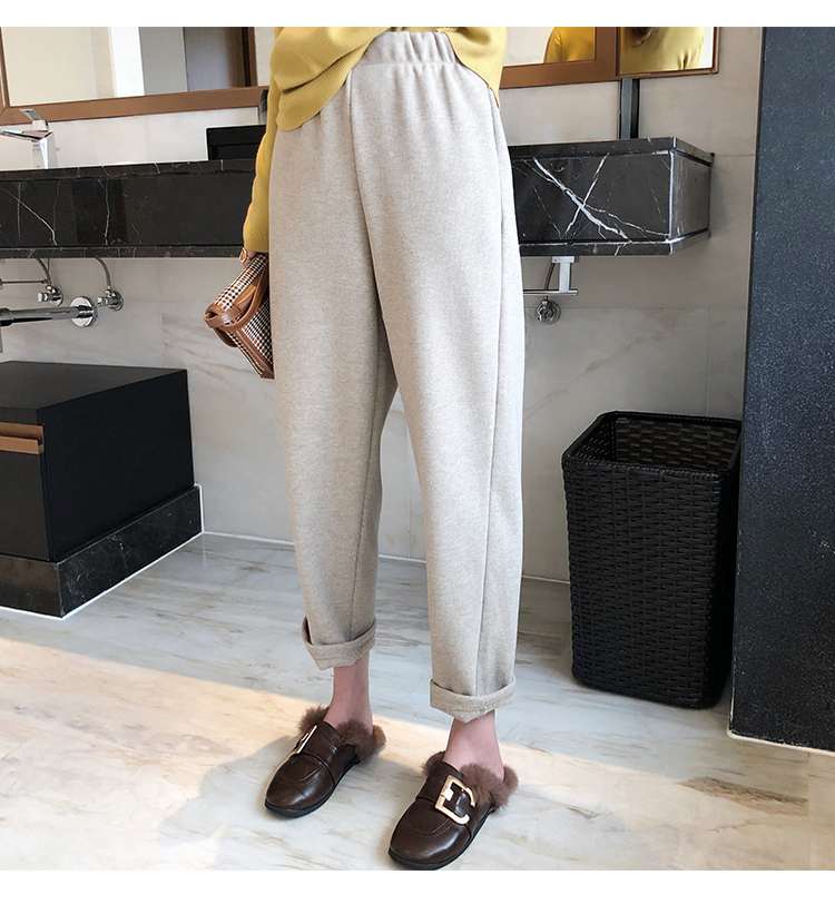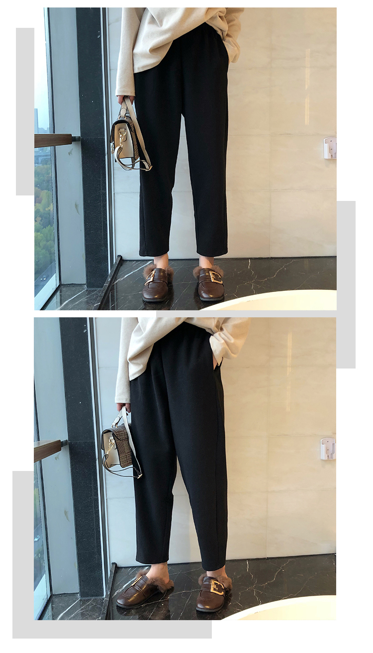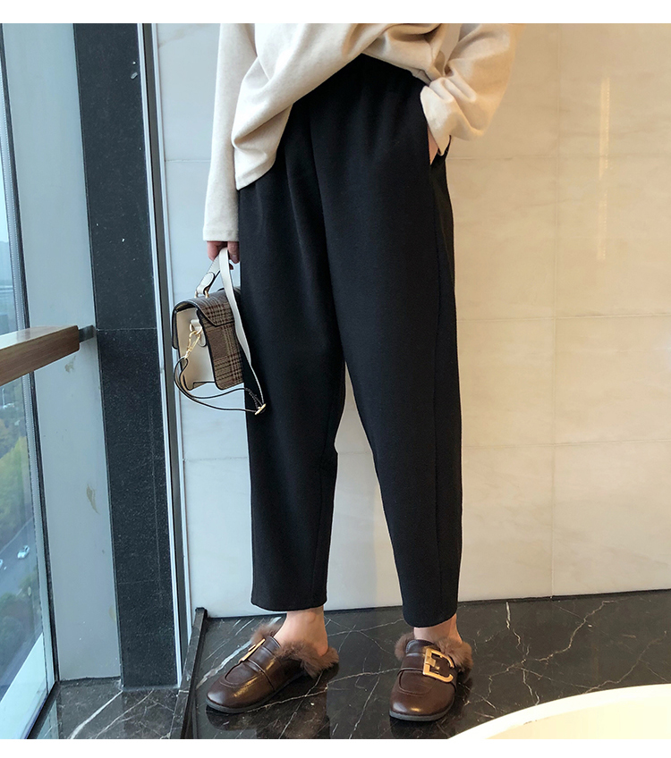褲子女秋冬2019新款寬松顯瘦加厚毛呢奶奶褲百搭高腰蘿卜哈倫褲1入