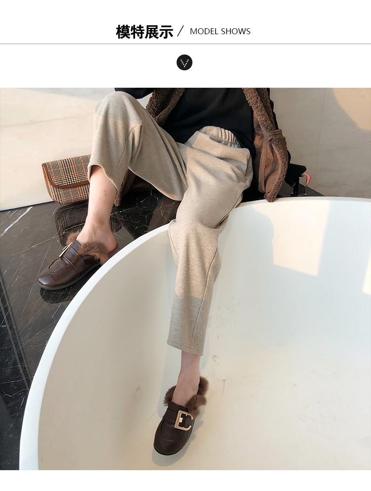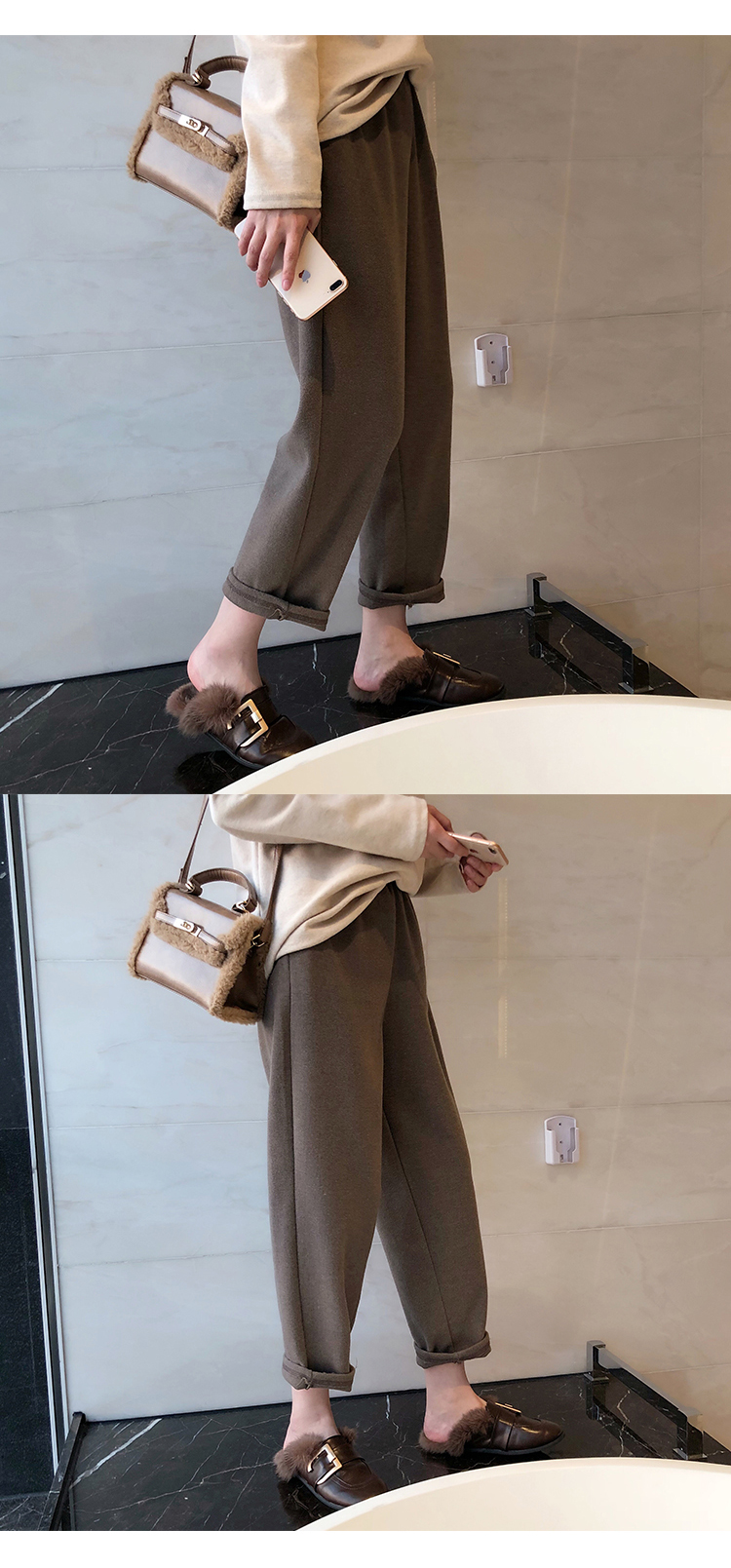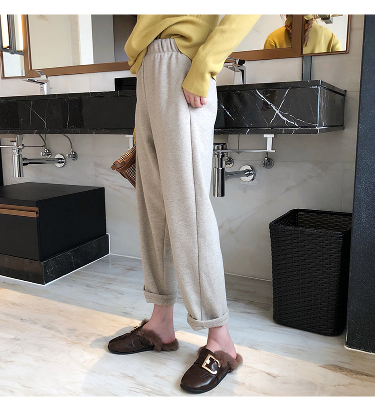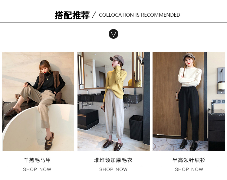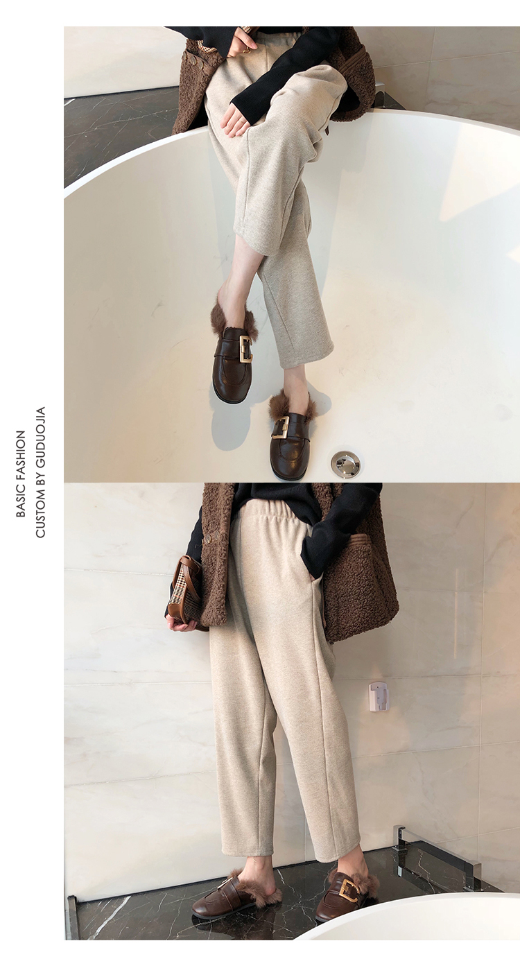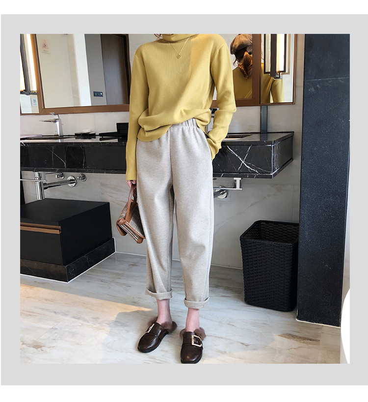 褲子女秋冬2019新款寬松顯瘦加厚毛呢奶奶褲百搭高腰蘿卜哈倫褲1入