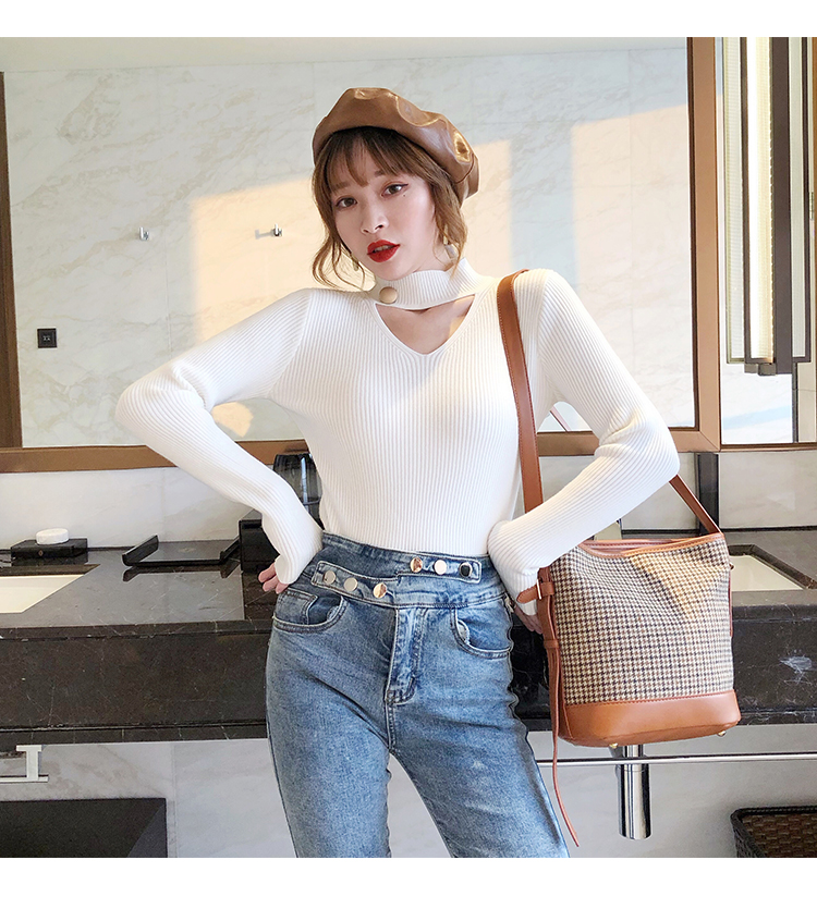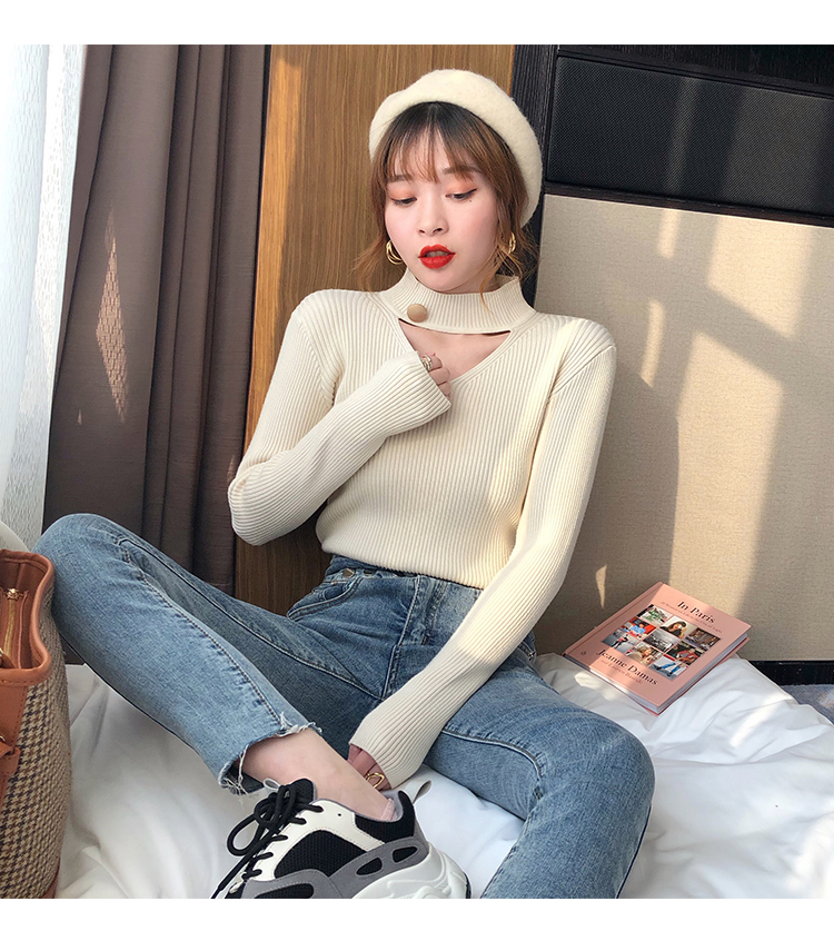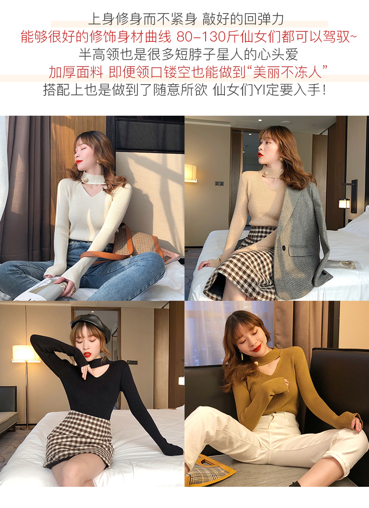 【12.12上新 0點半價開搶】性感鏤空加厚毛衣秋冬針織打底衫女潮1入