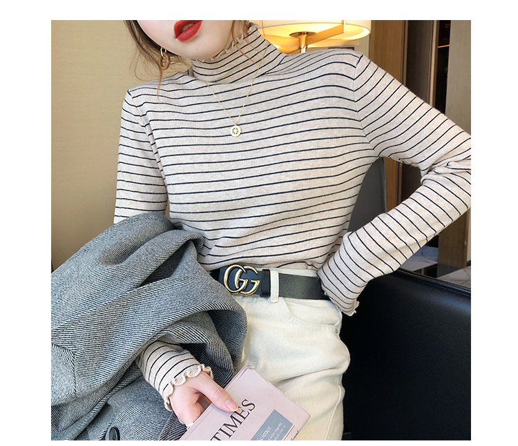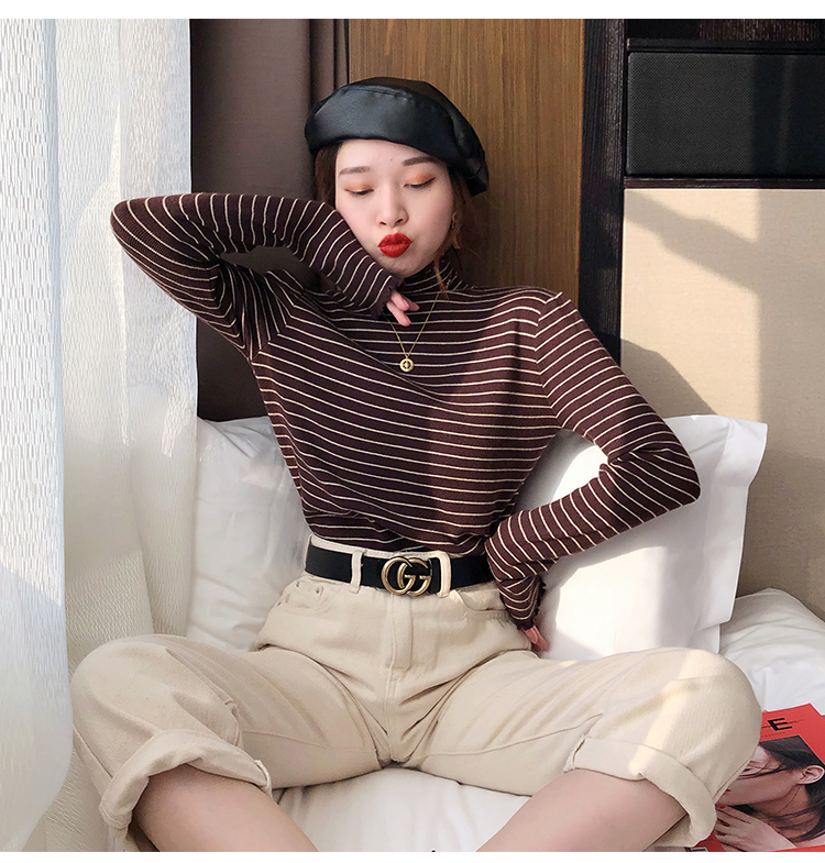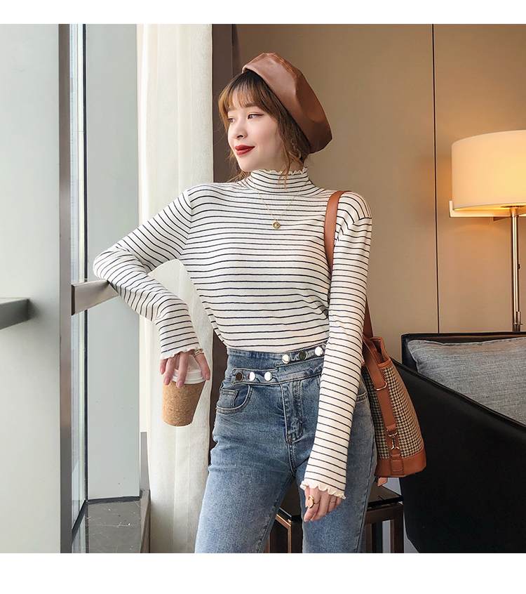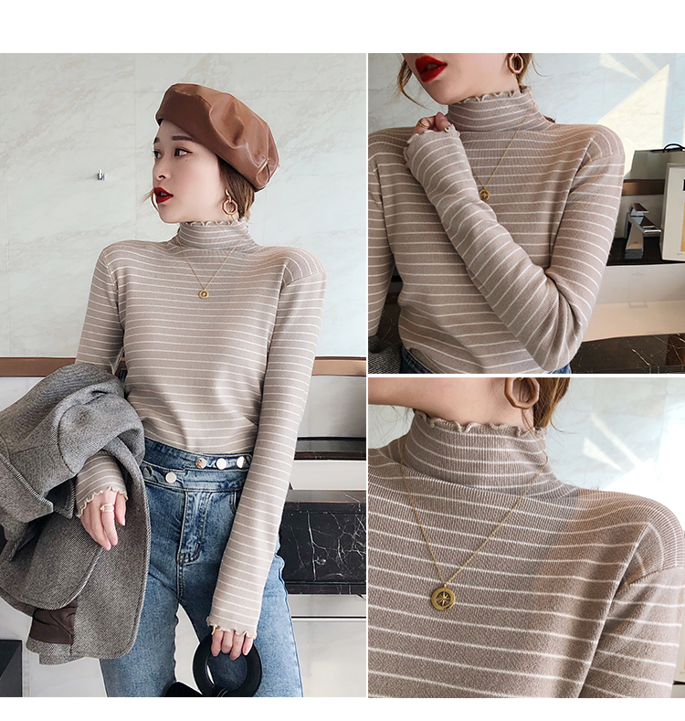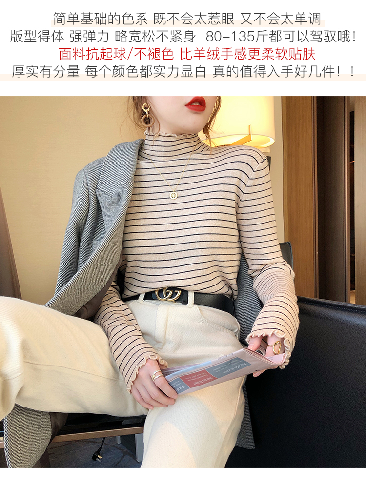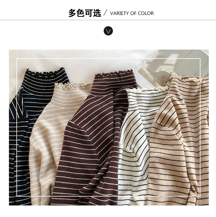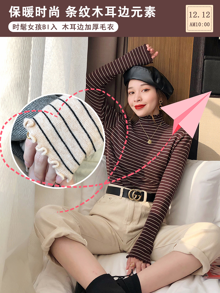 【12.12上新 0點半價開搶】條紋加厚毛衣女木耳邊打底針織衫上衣1入